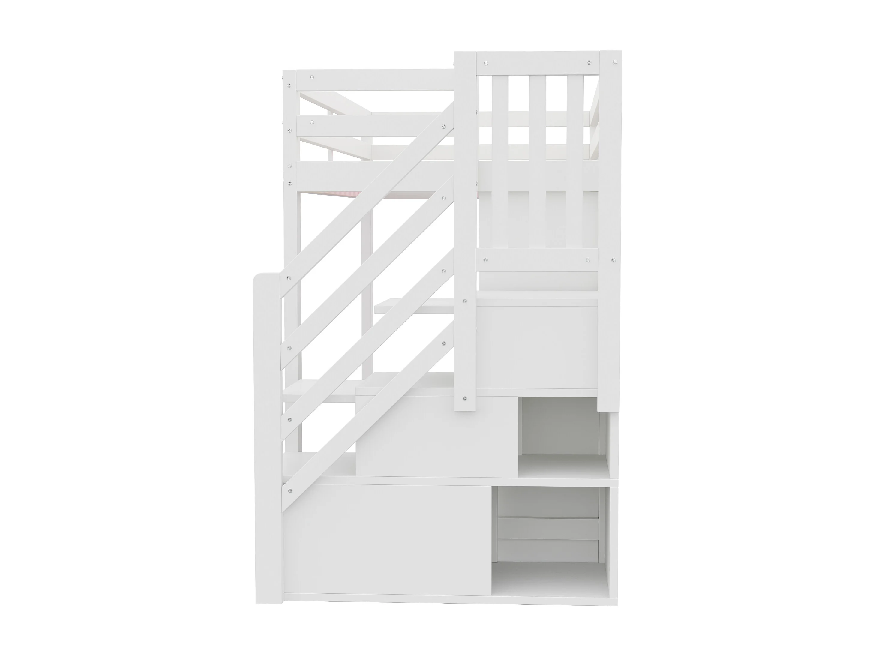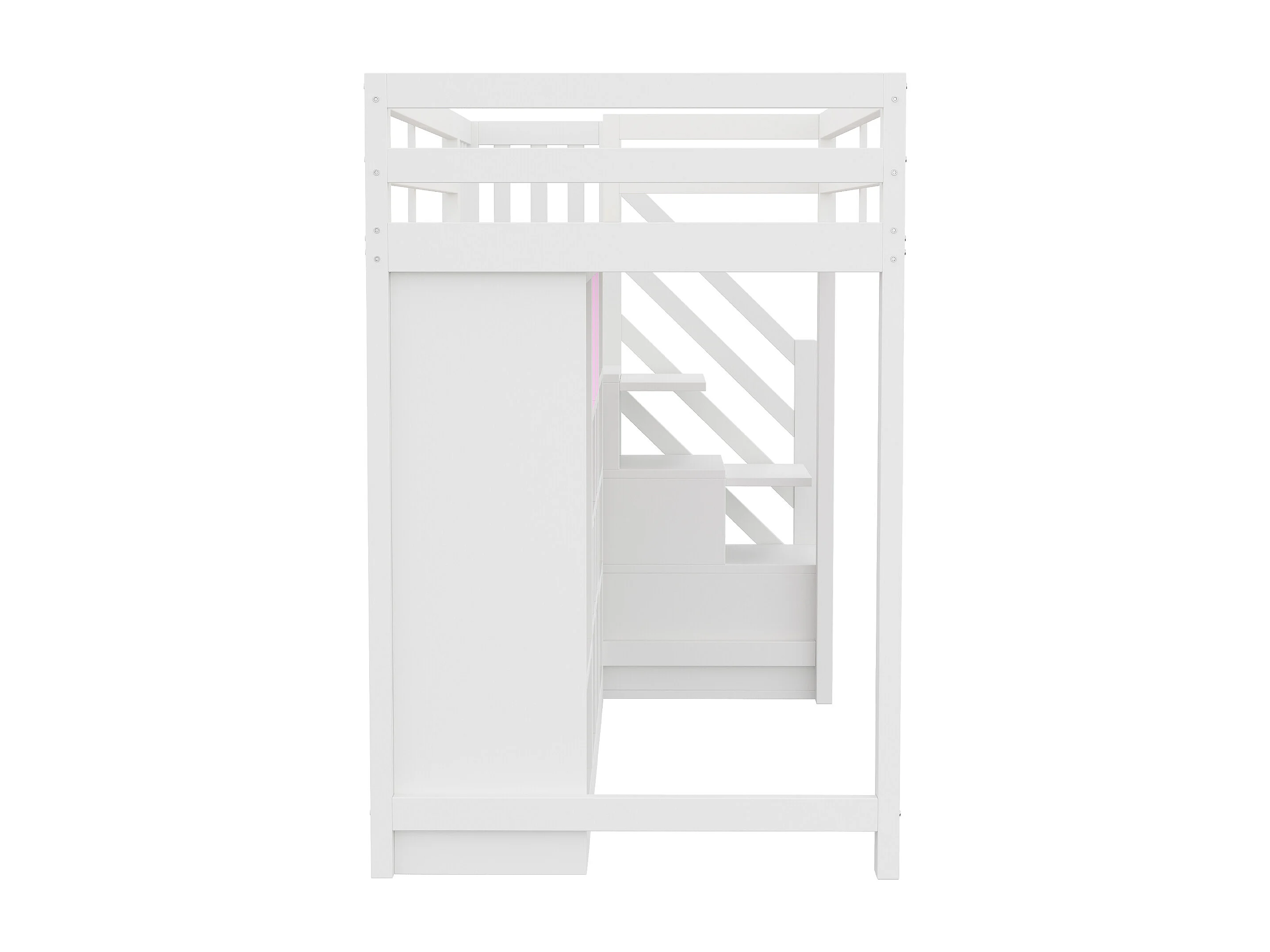Lit mezzanine 90 x 200 cm avec plusieurs compartiments et penderie , LED - Blanc