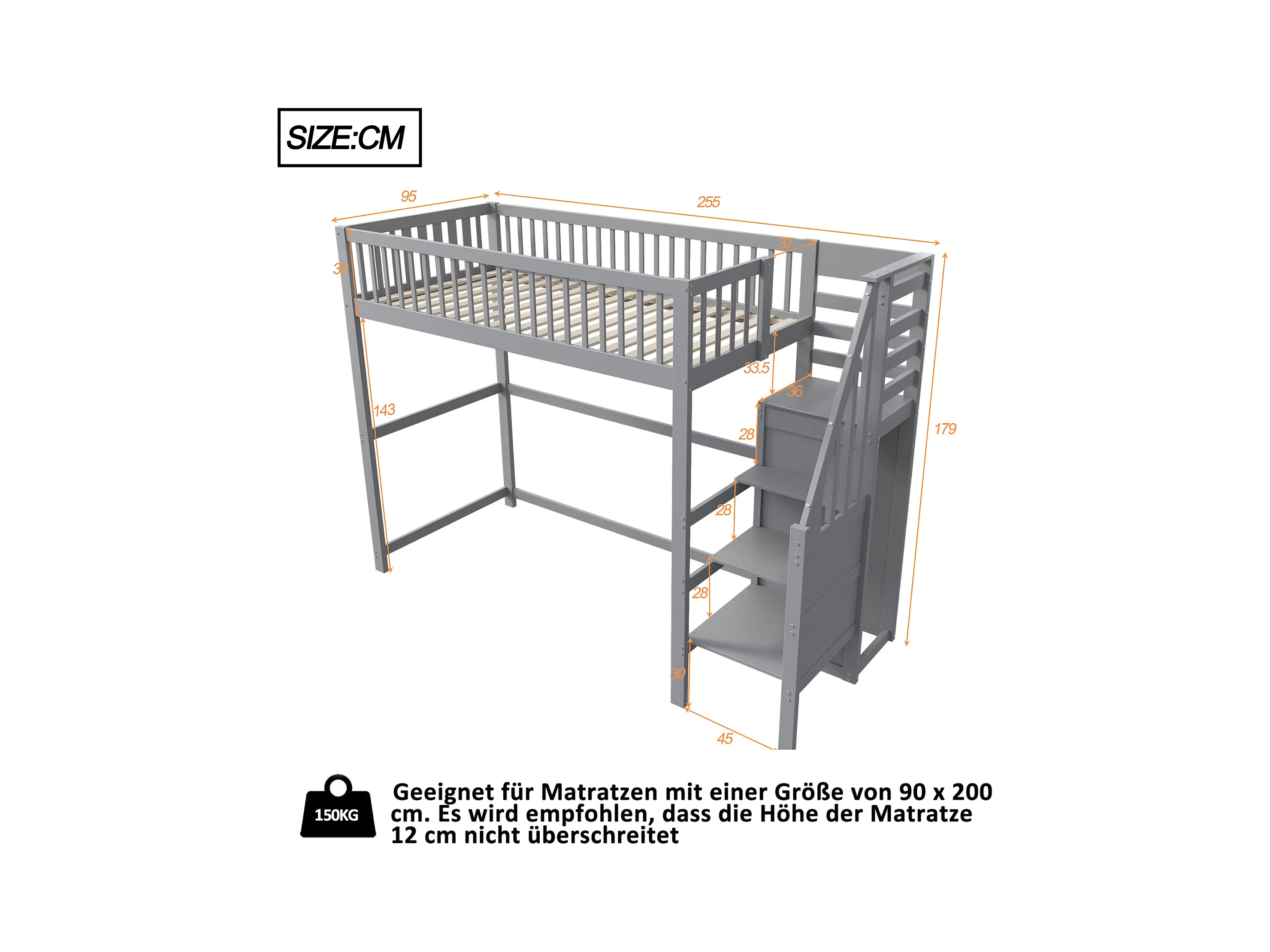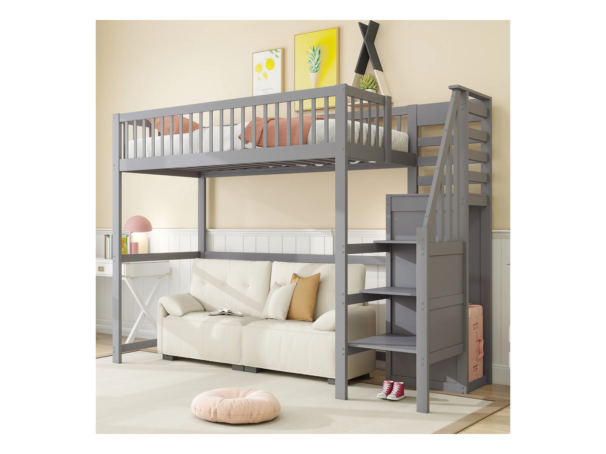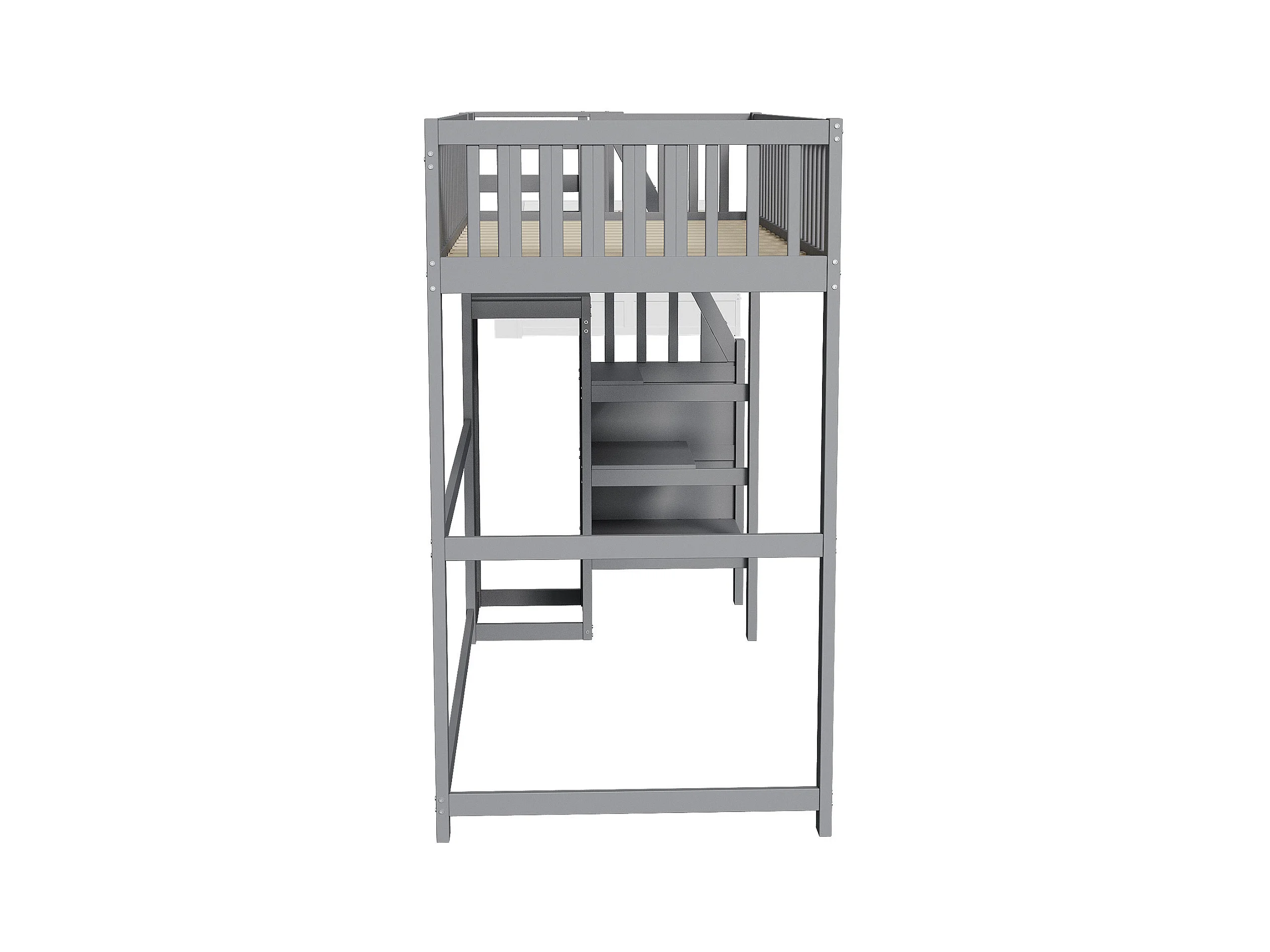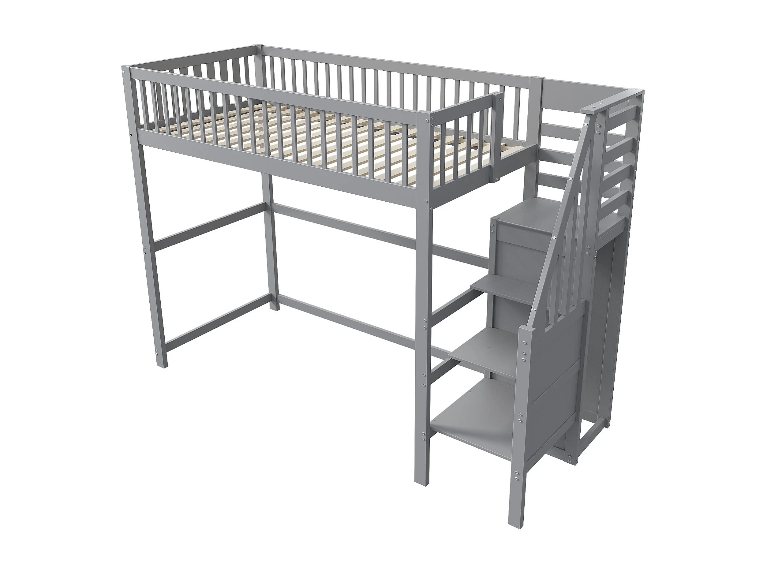 Lit mezzanine 90 x 200 cm - Lit enfant avec étagères de rangement et escalier - armoire simple - bois gris - matelas non inclus