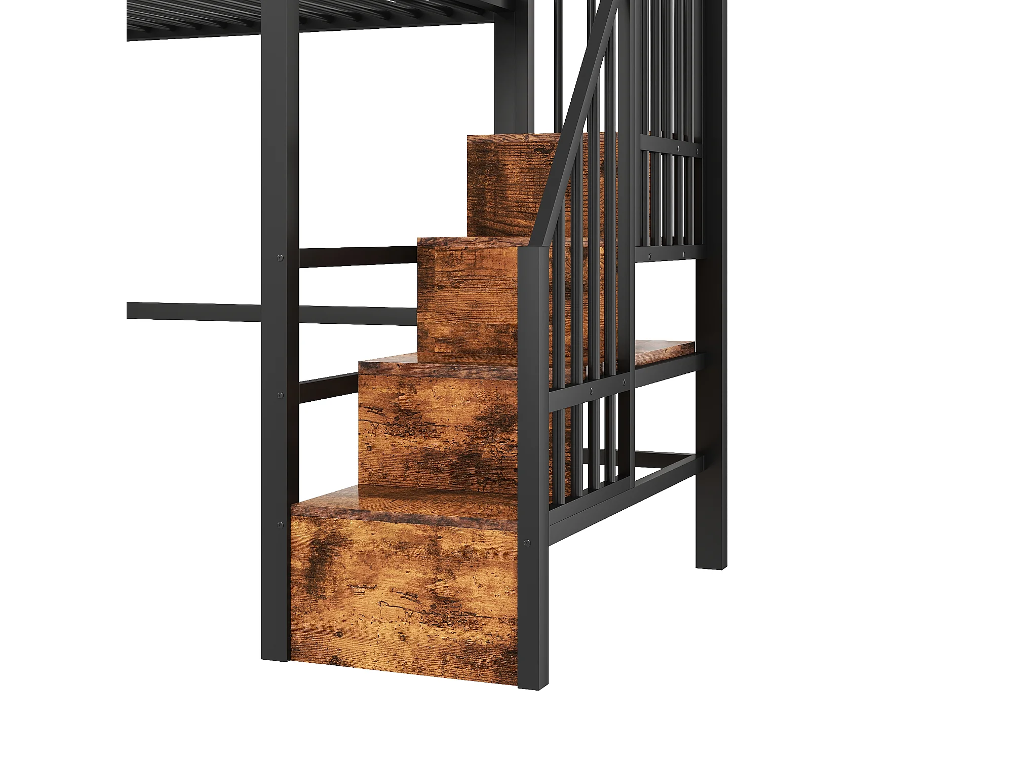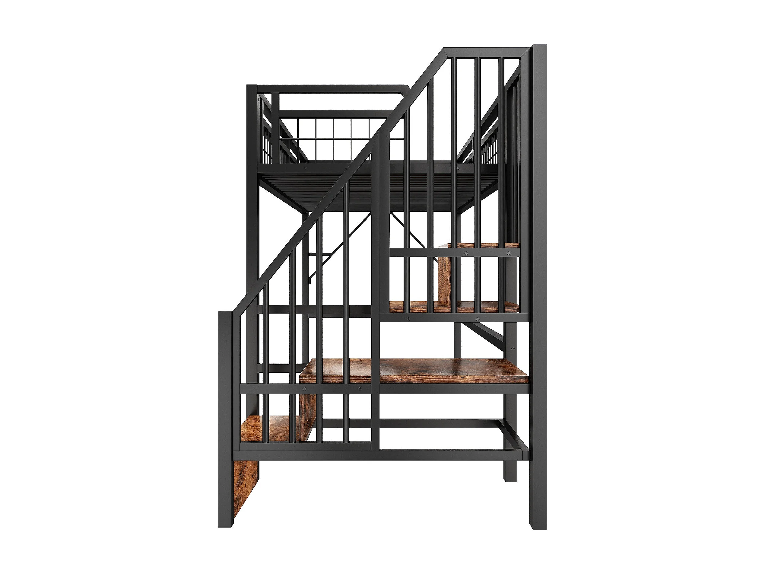 Lit mezzanine 90 x 200 cm - Structure en fer - Éclairage LED - Escalier - Noir (matelas non inclus)