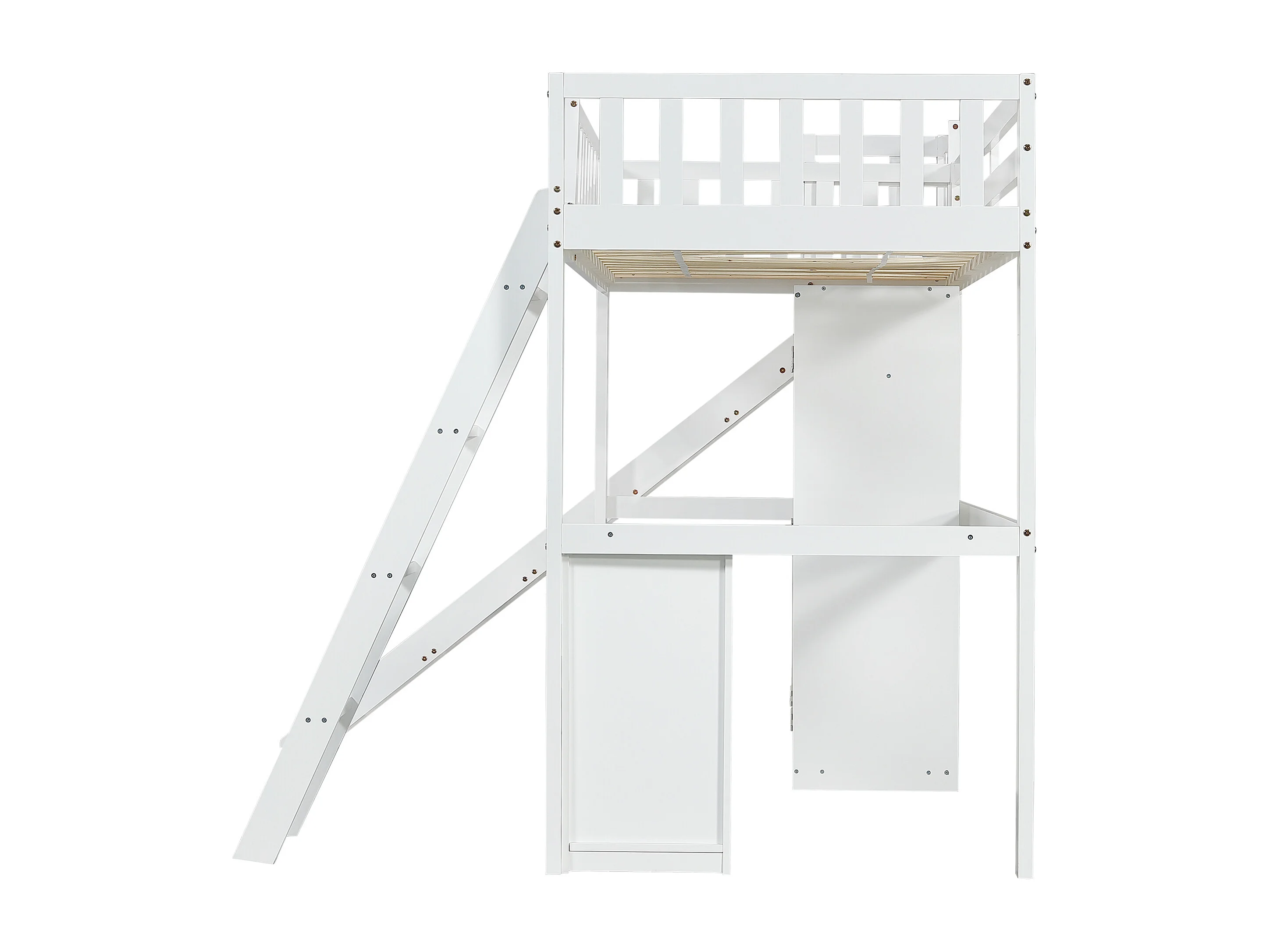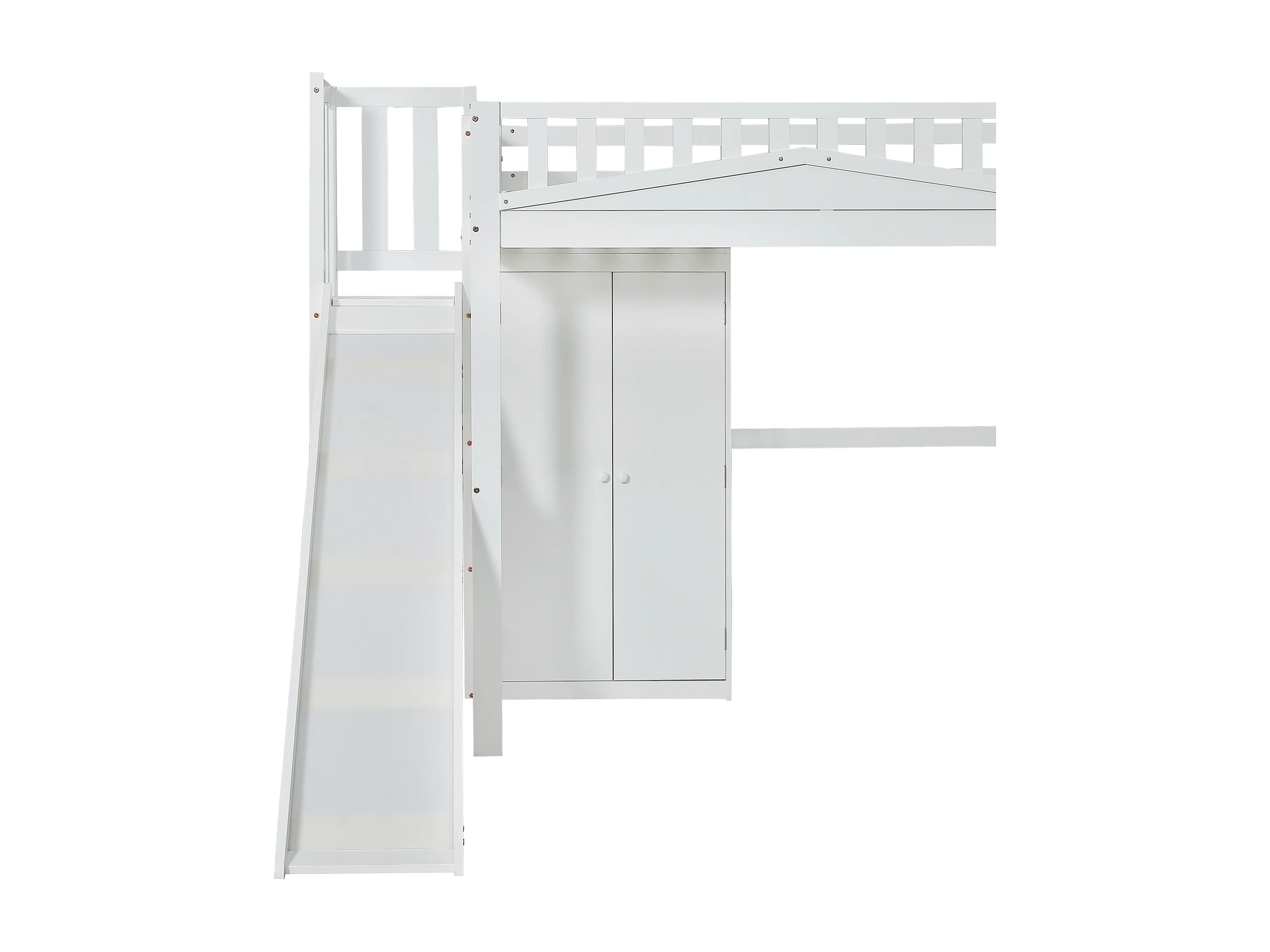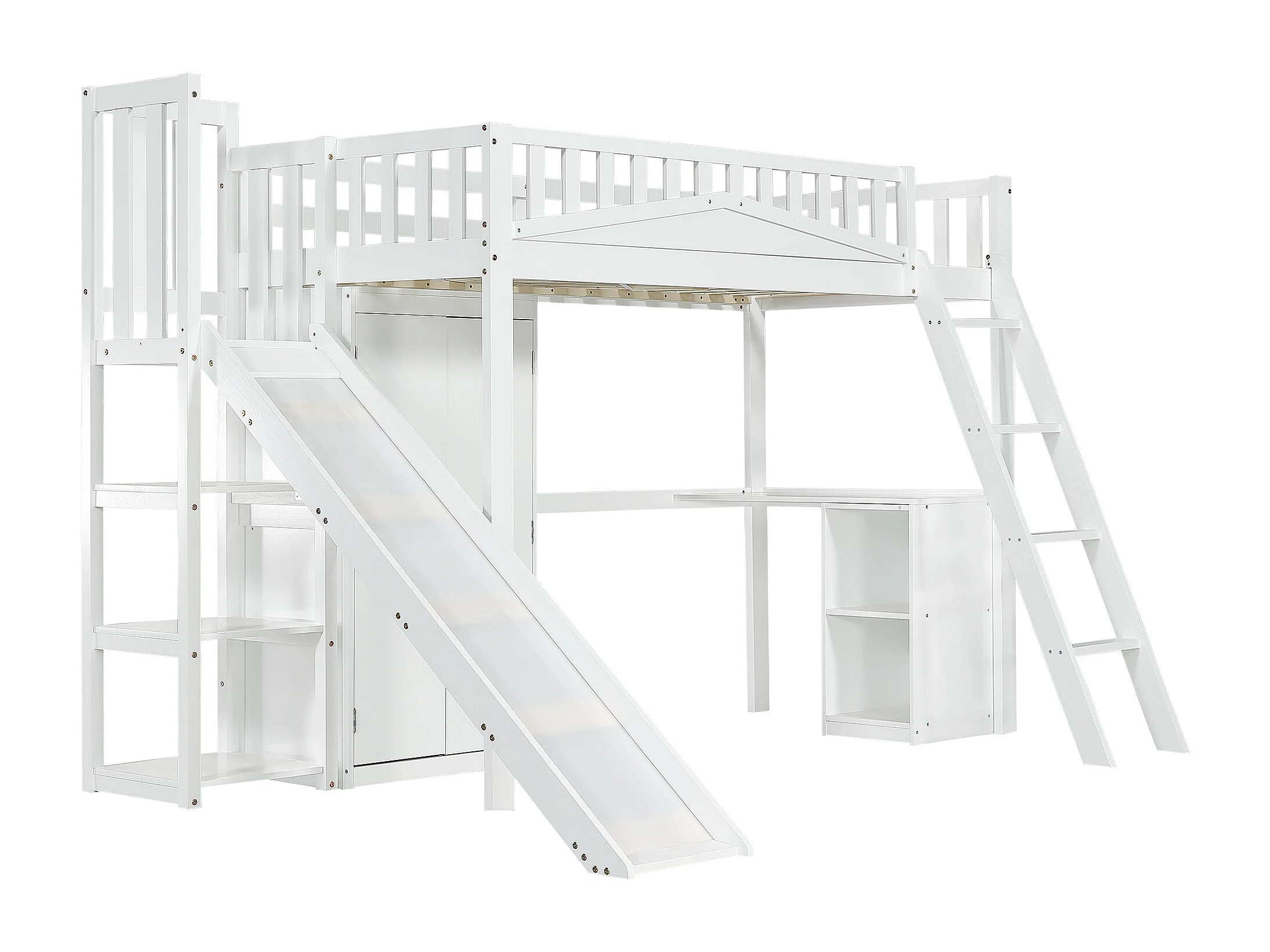 Lit mezzanine, 90 x 200 cm, superposé, avec table et armoire, avec échelle, blanc