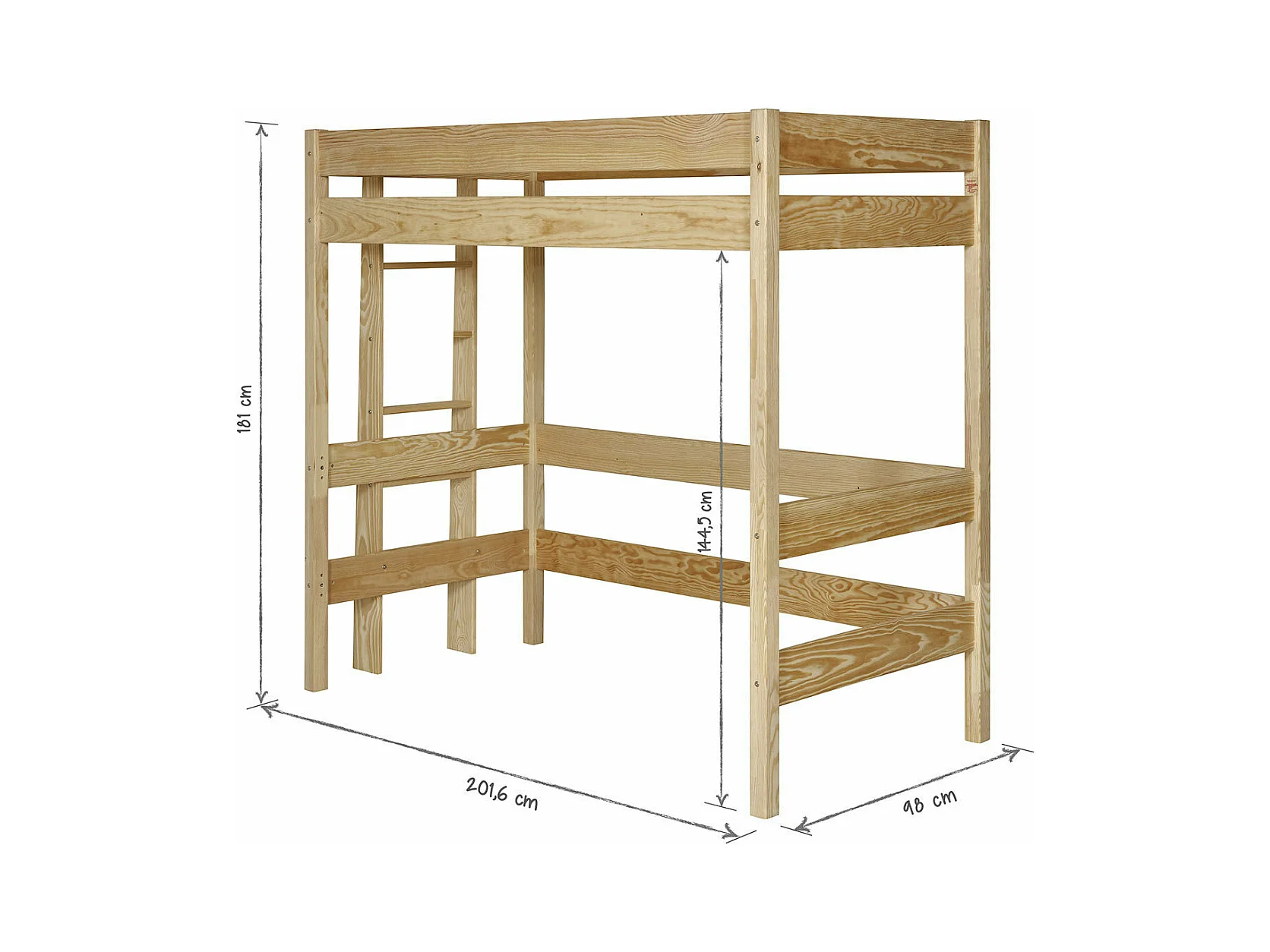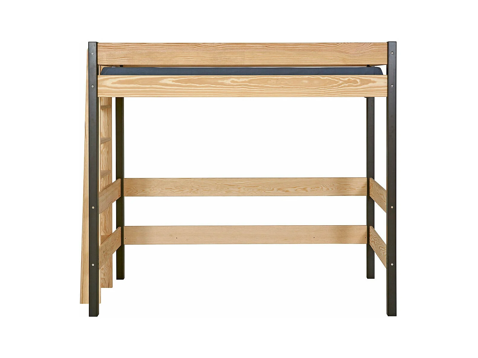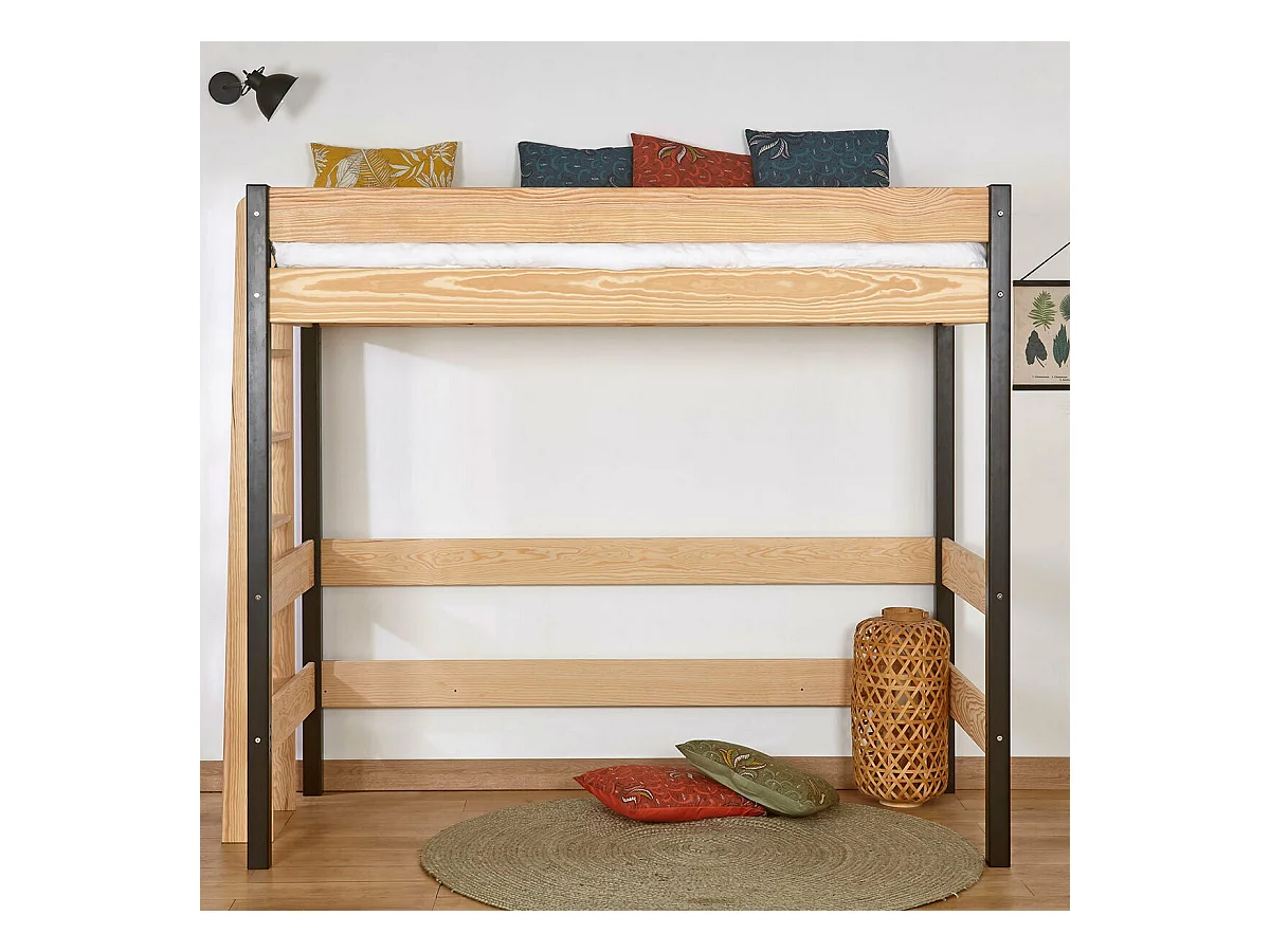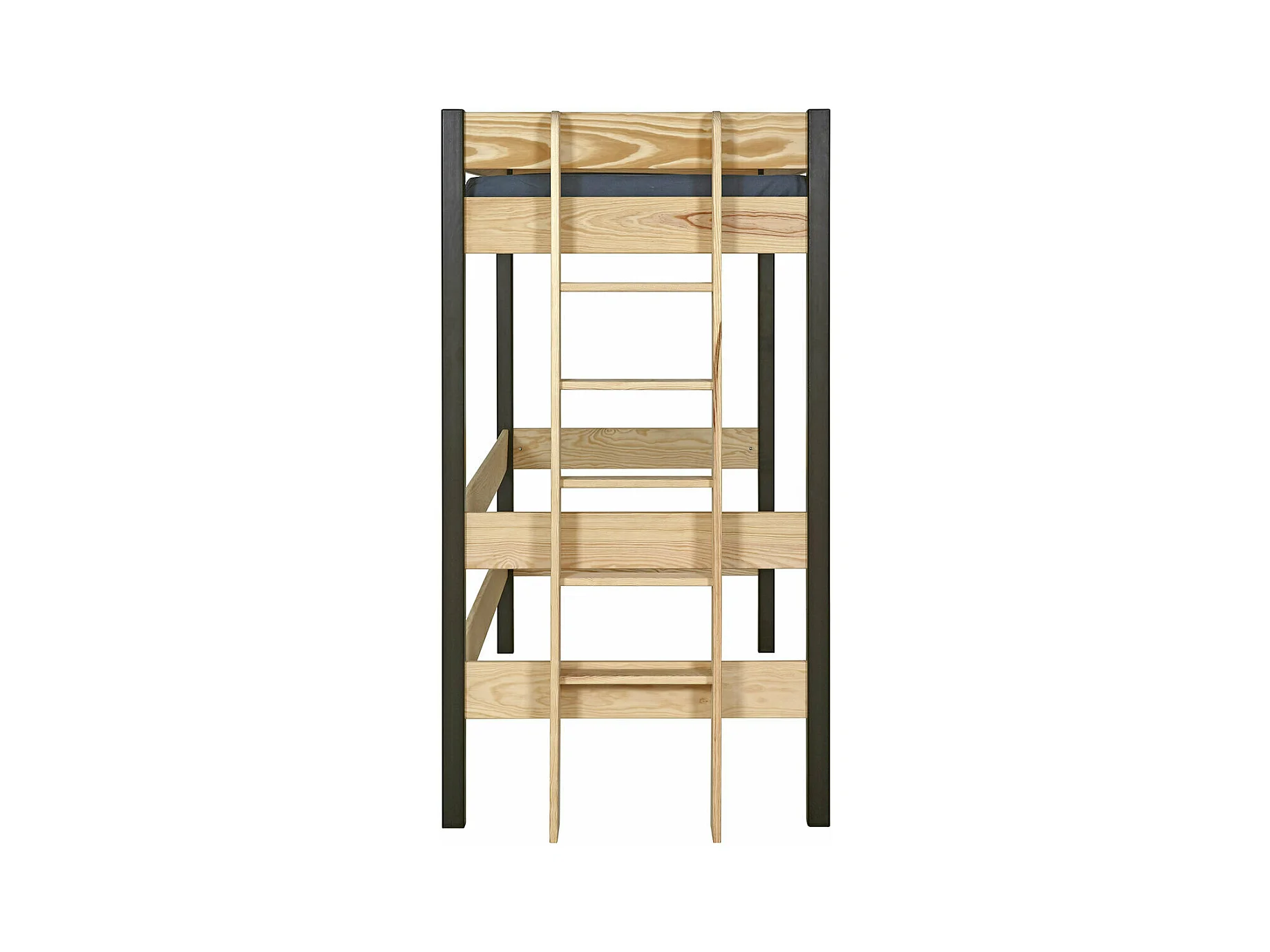 Lit mezzanine 90x190 cm bois massif noir et bois TINO
