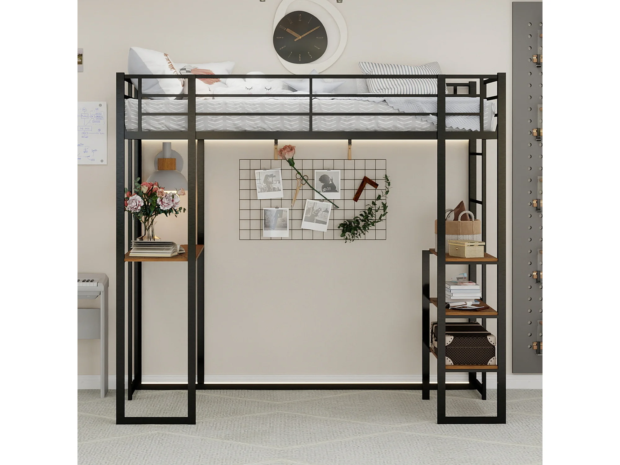 Lit mezzanine 90x190 cm - Lit ado avec bureau et étagères de rangement - noir - sans matelas