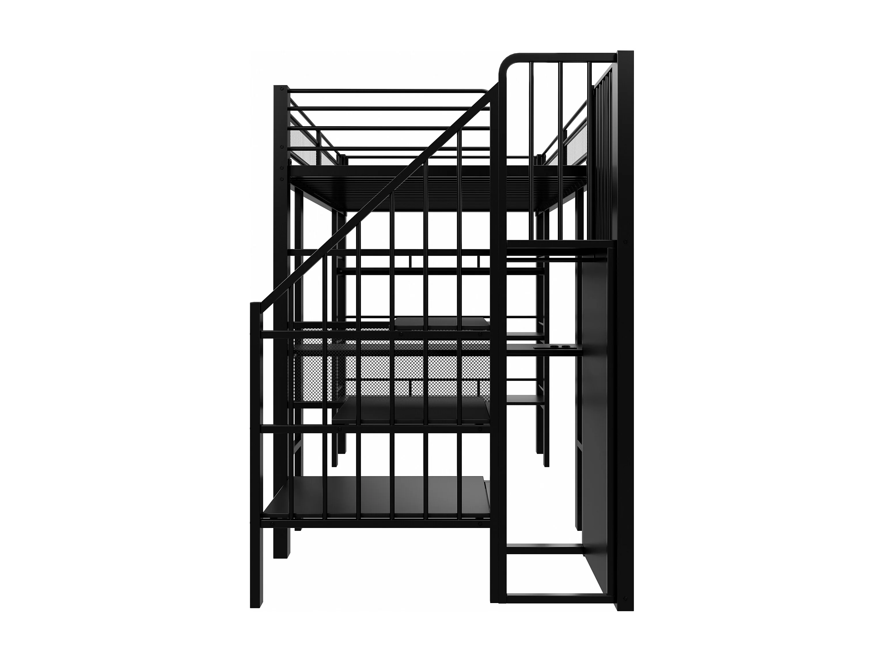 Lit mezzanine 90x200 cm - avec éclairage LED et prise électrique - avec compartiments de rangement - avec étagère - noir (matelas non inclus)