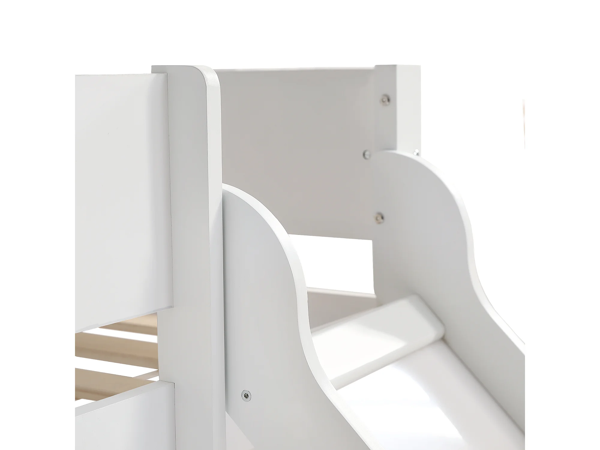 Lit mezzanine 90x200 cm avec protection anti-chute, échelle, étagère amovible, bois blanc, sans matelas