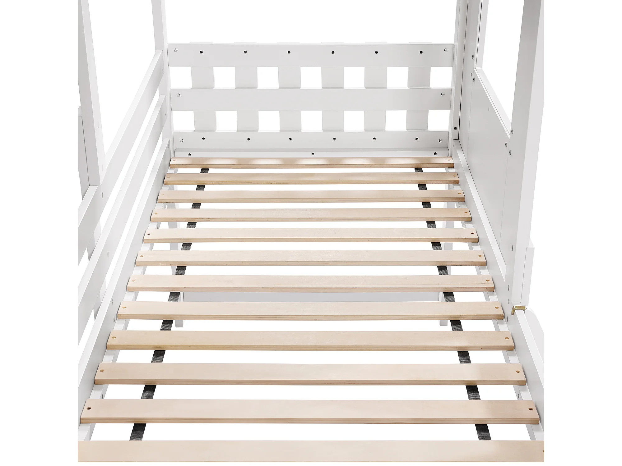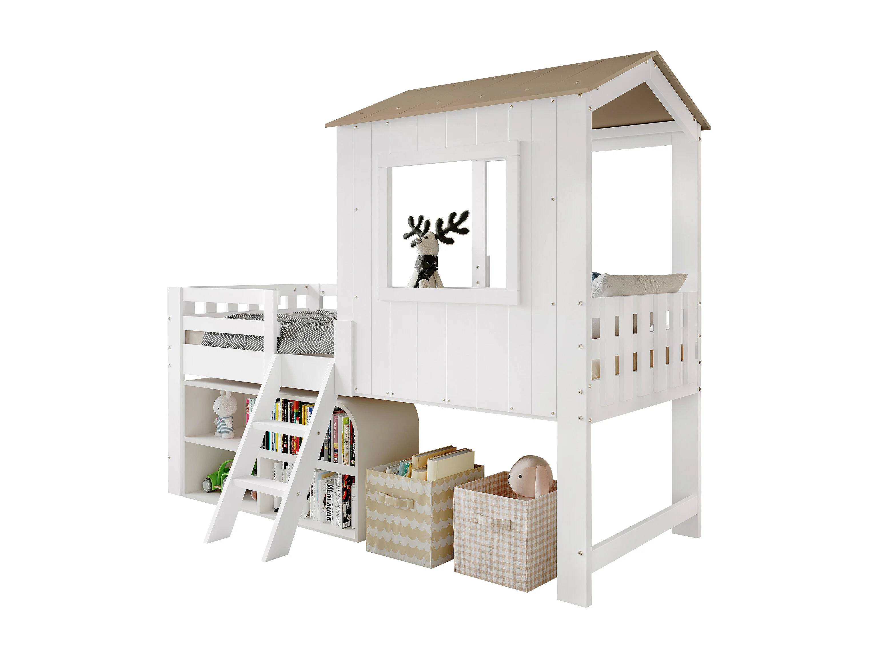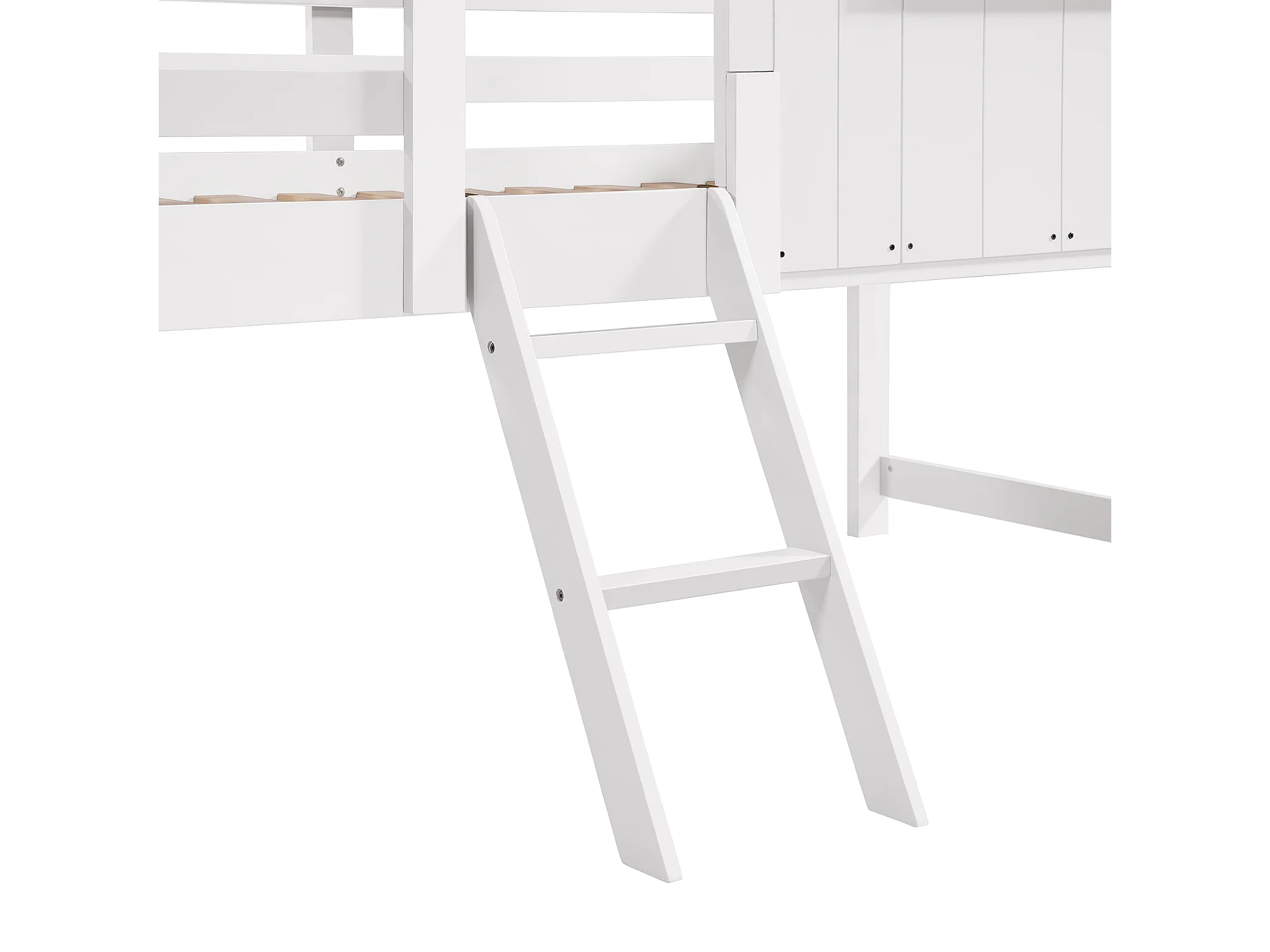 Lit mezzanine 90x200 cm avec protection anti-chute, fenêtre, échelle, bois blanc, sans matelas
