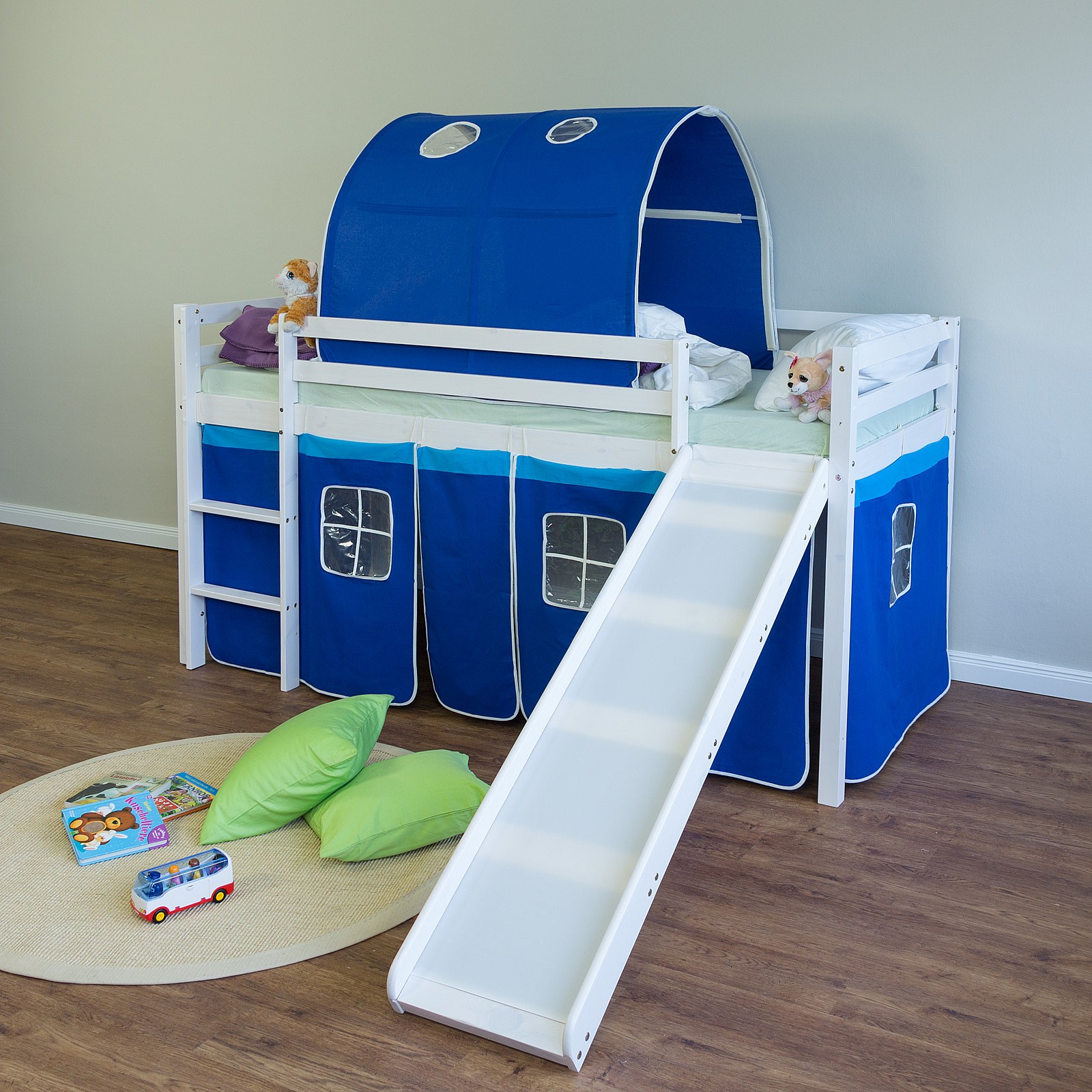 Lit mezzanine 90x200 cm Bleu lit enfant échelle toboggan tunnel pin massif