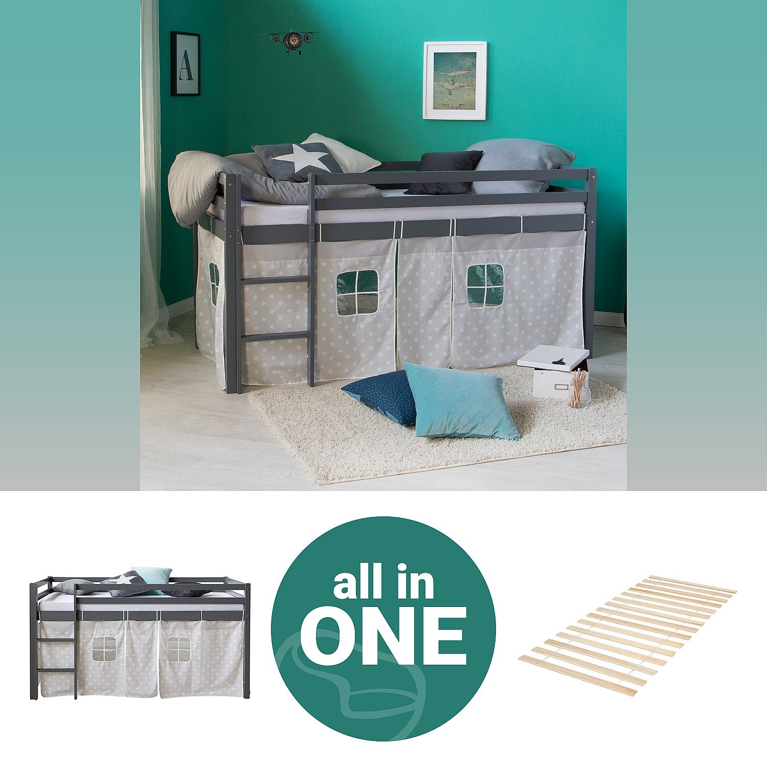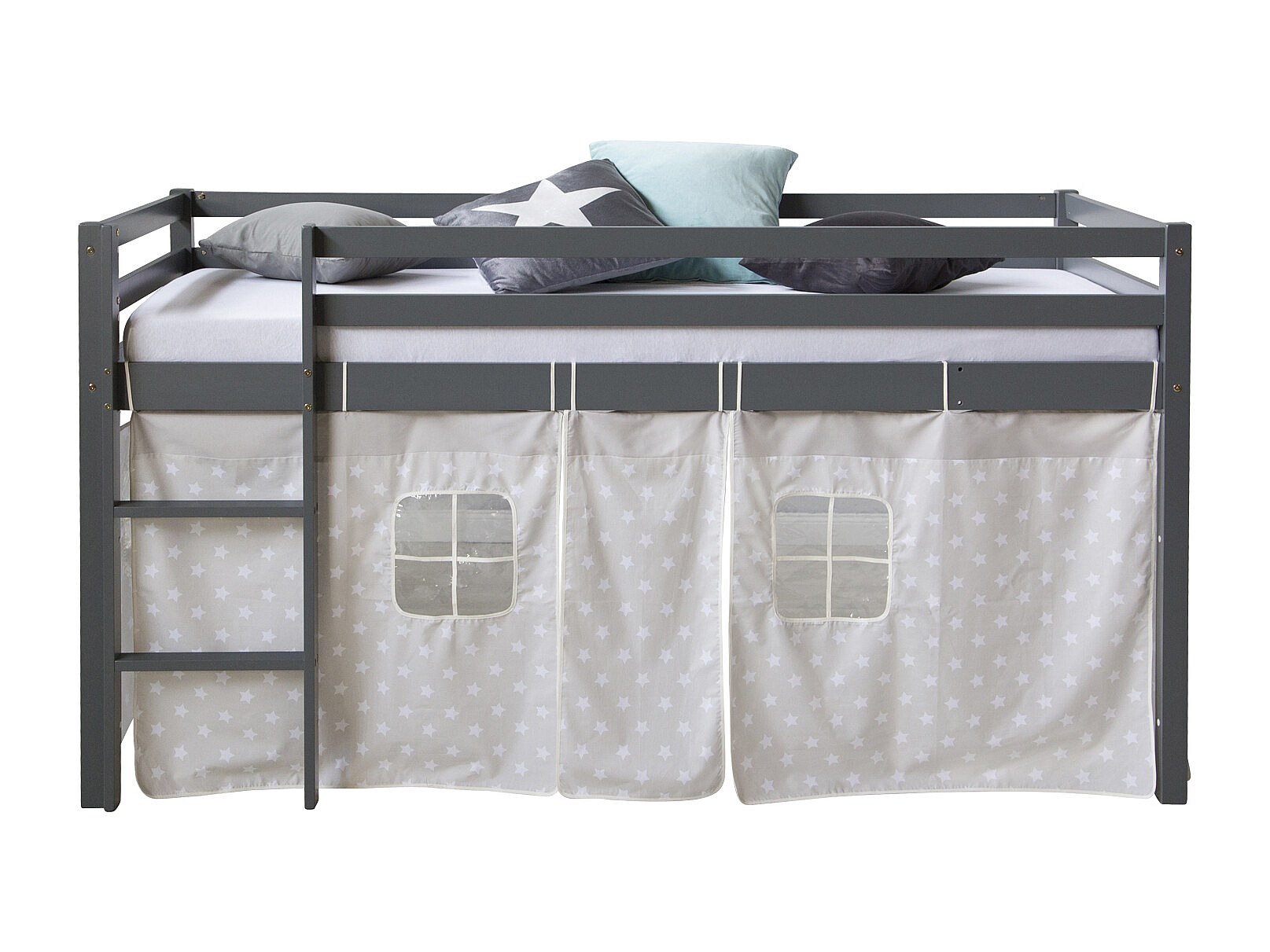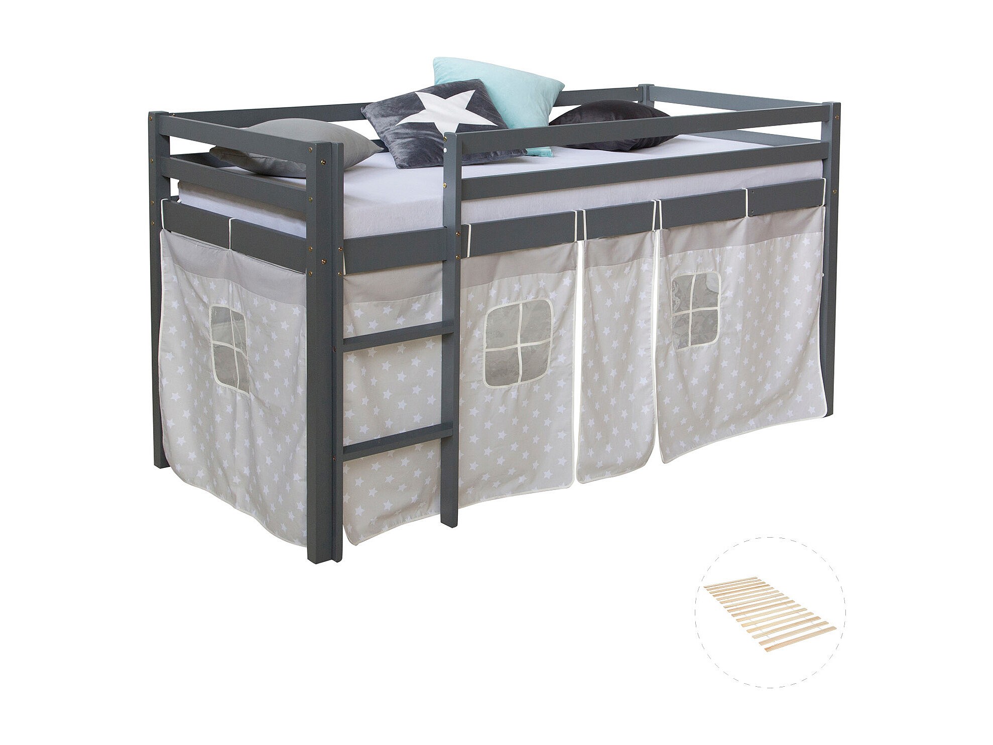 Lit mezzanine 90x200 cm Gris Bois de pin massif Rideau Étoiles