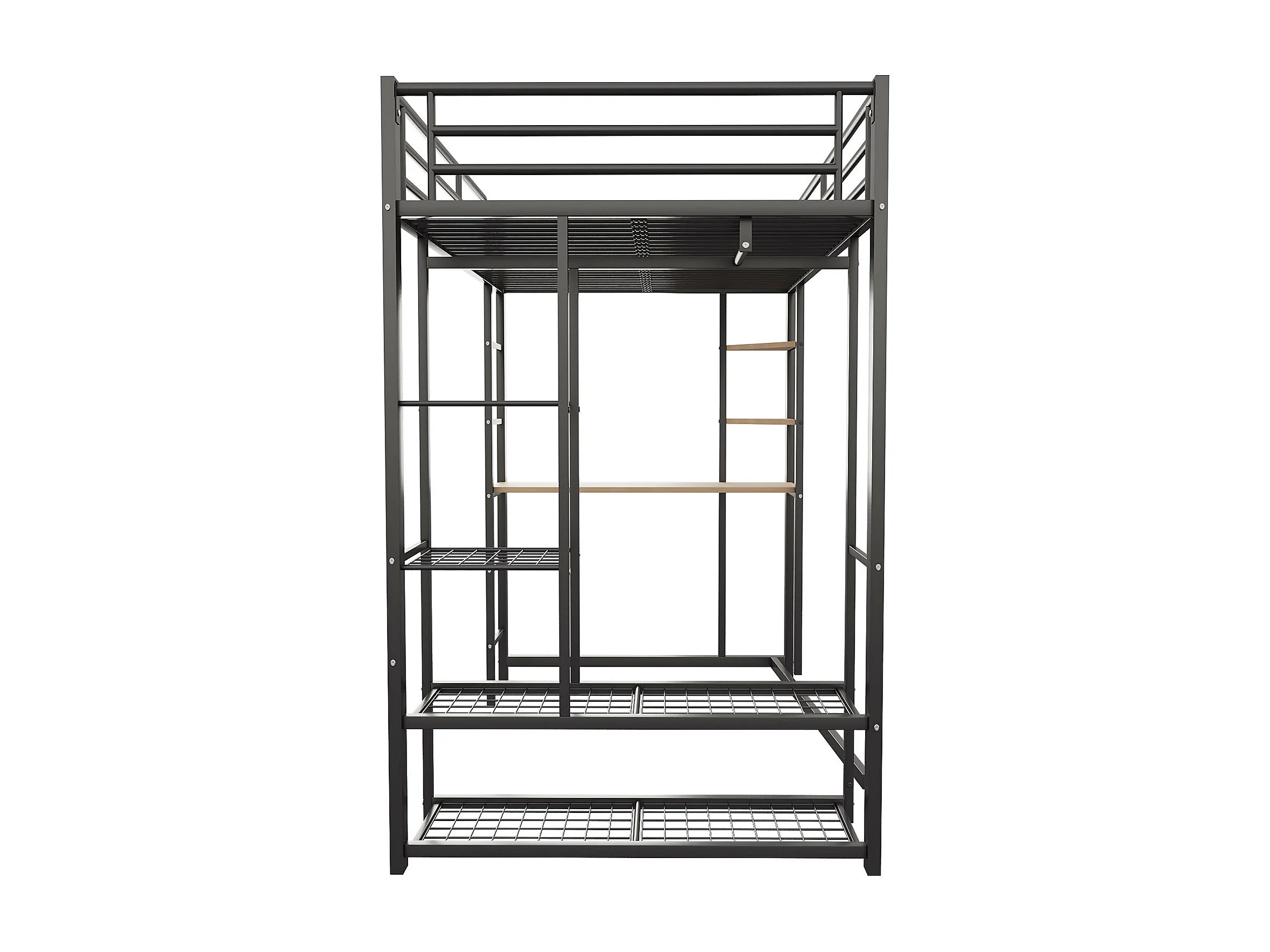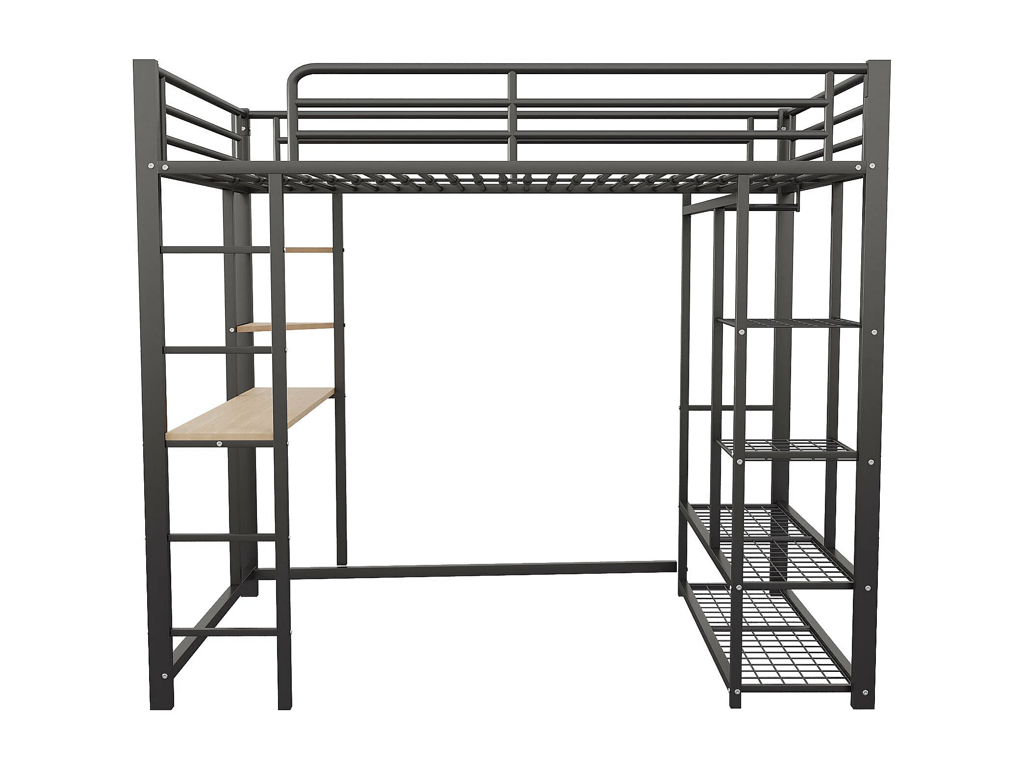 Lit mezzanine 90x200 cm - Lit simple avec table et étagère de rangement - noir - métal - sans matelas