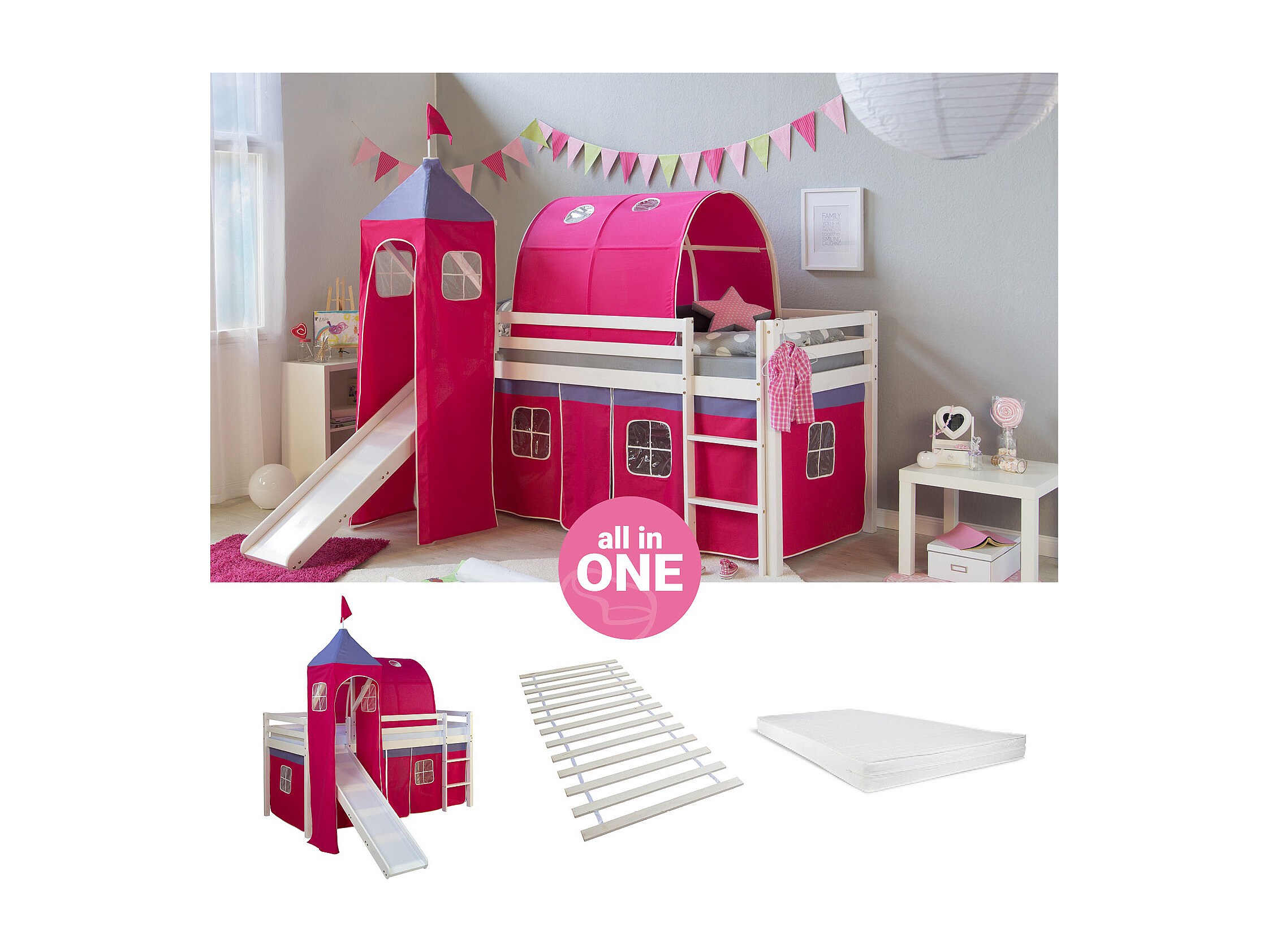 Lit mezzanine 90x200 cm Rose