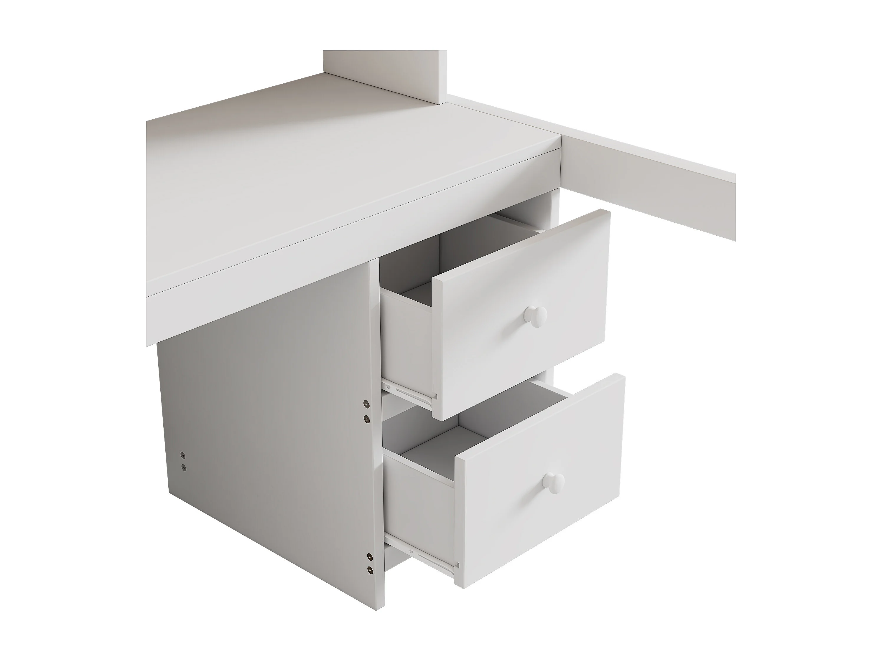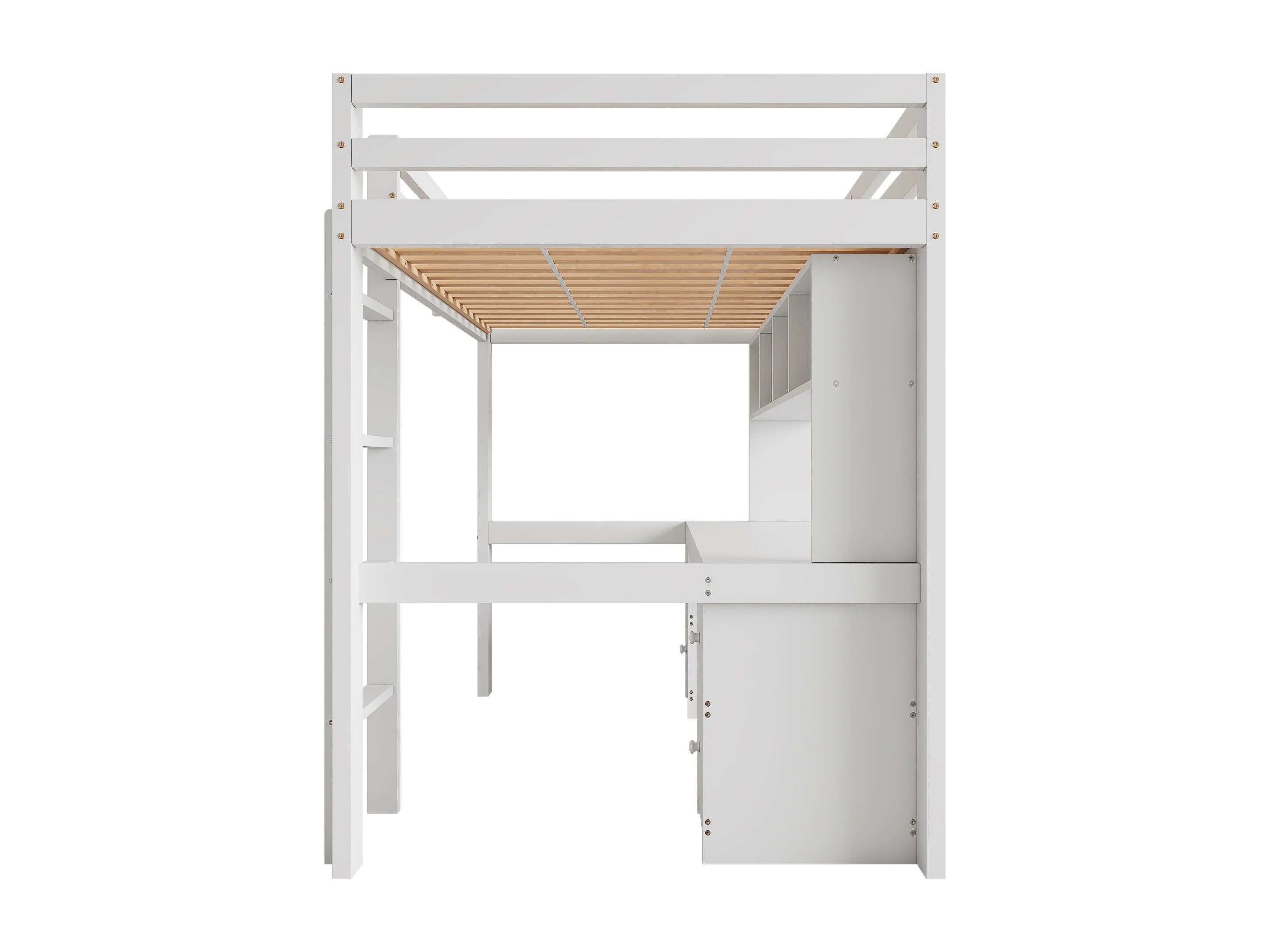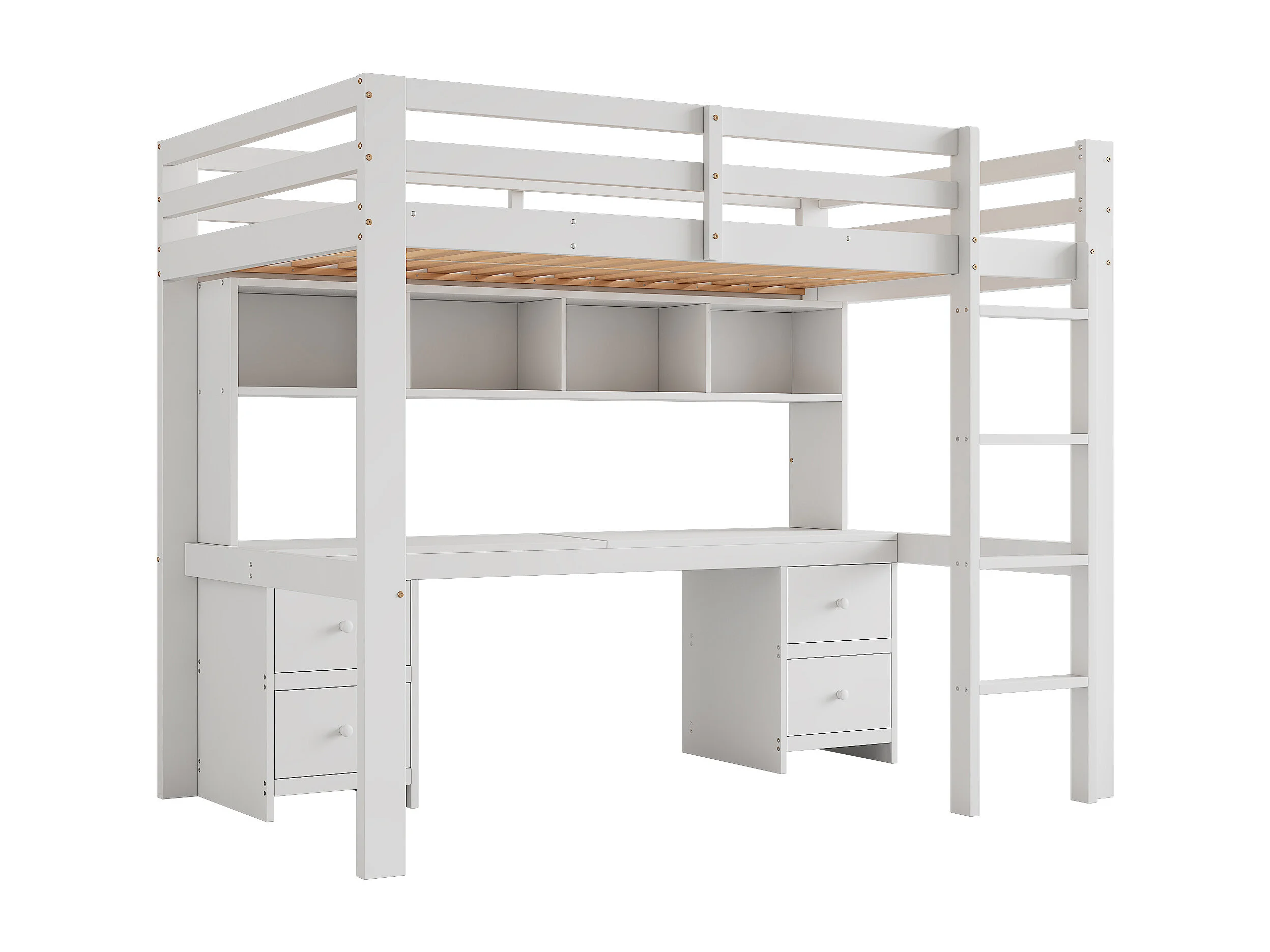 Lit mezzanine 90x200cm - avec bureau et 2 commodes - en pin massif et MDF - Blanc