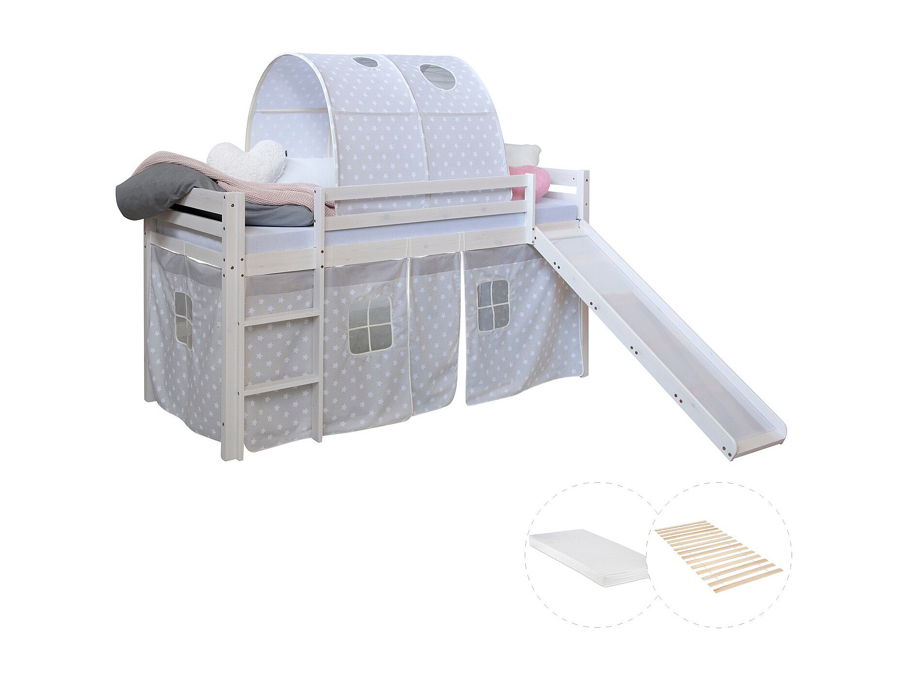 Lit mezzanine avec toboggan 90x200 cm Gris