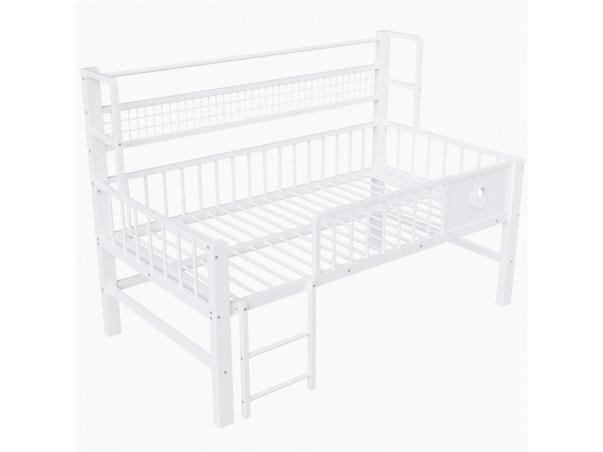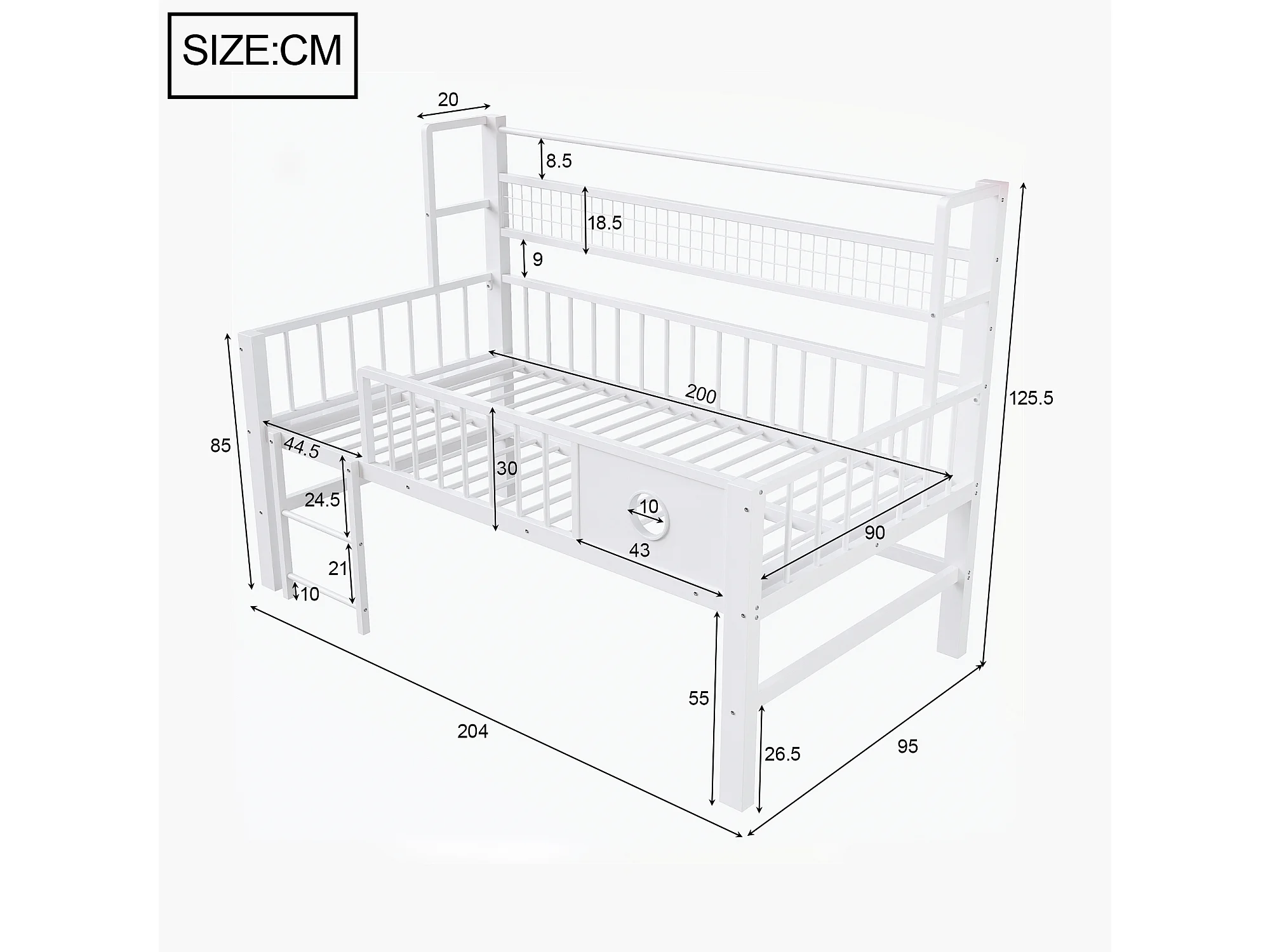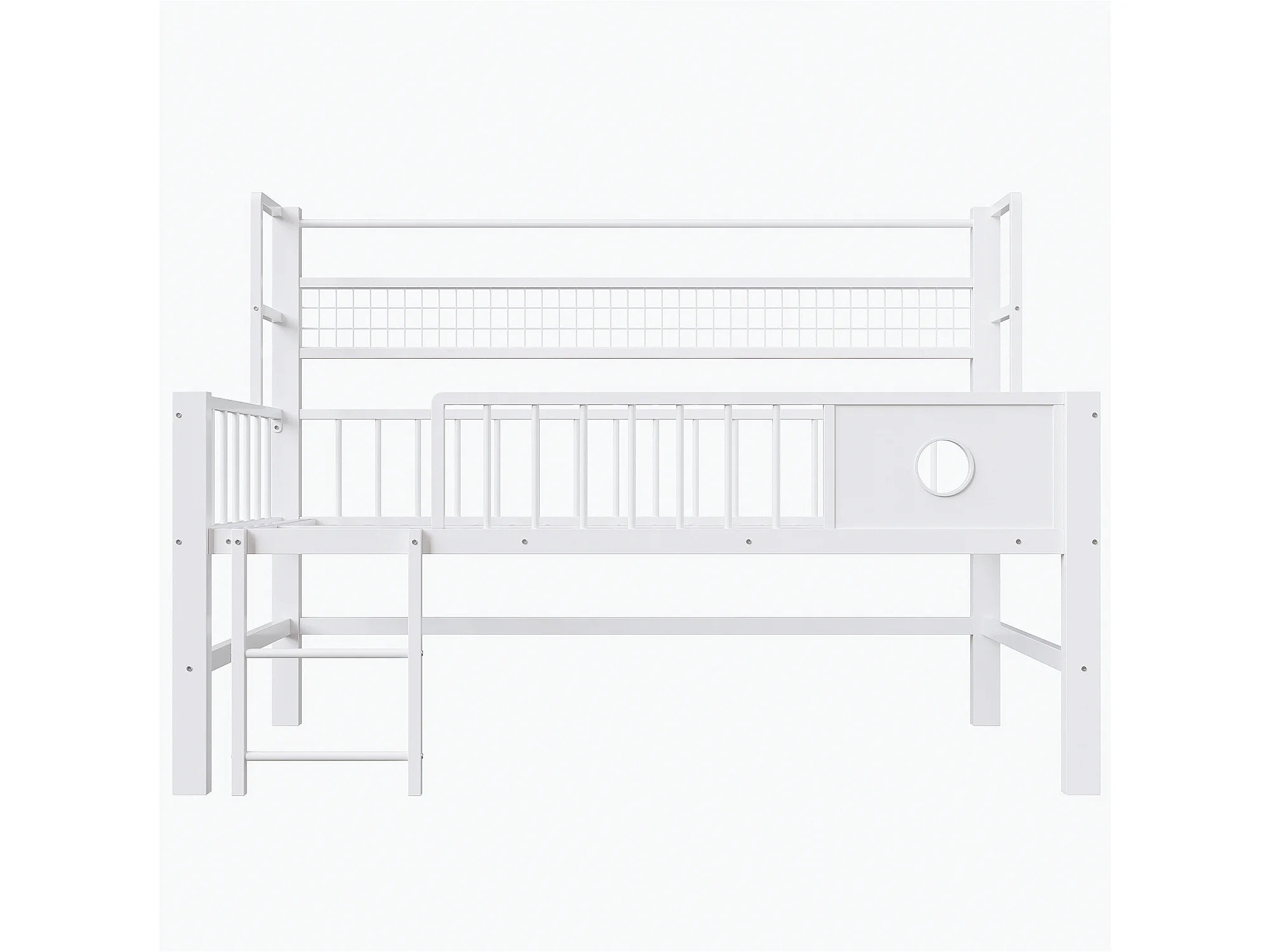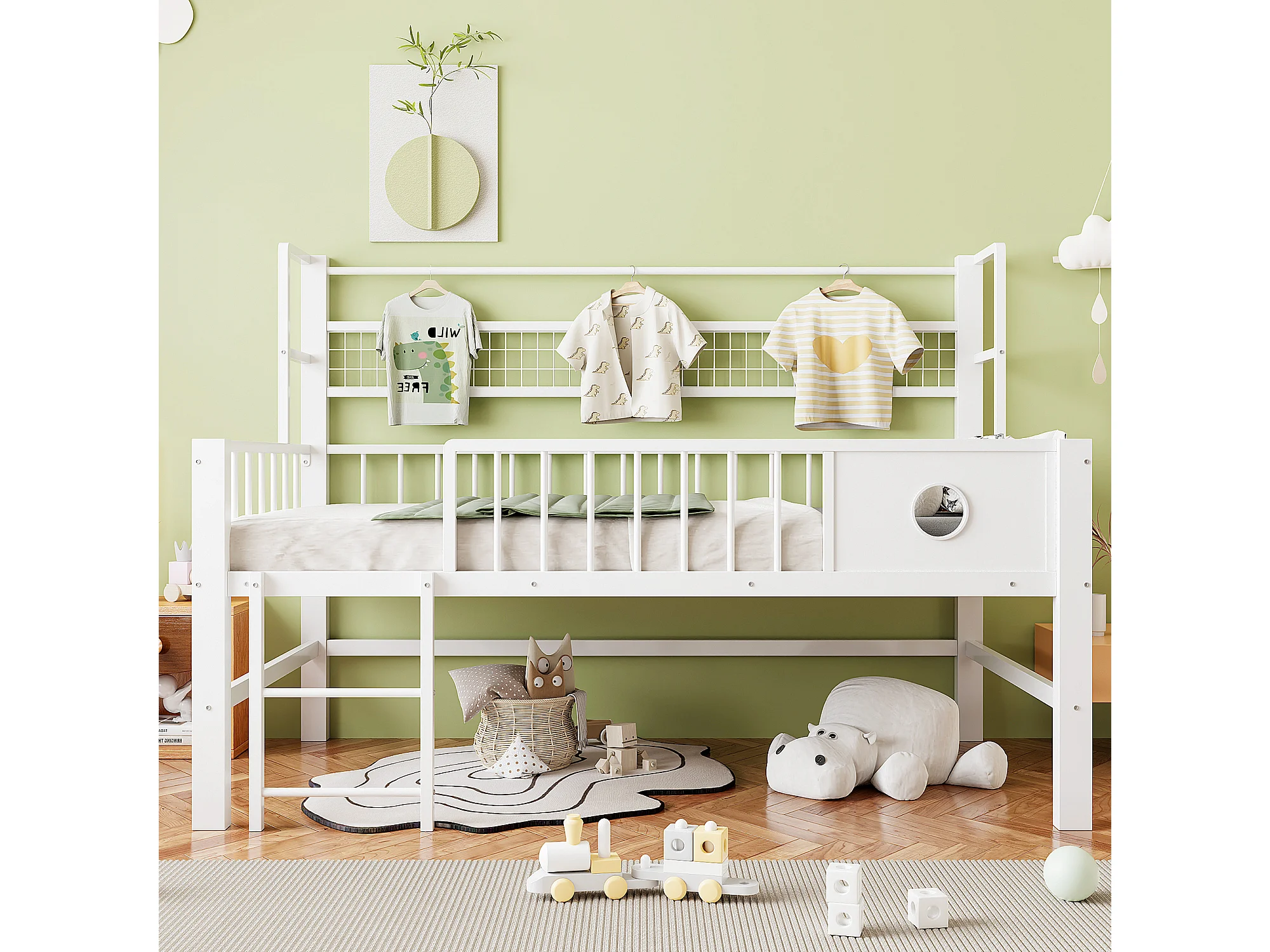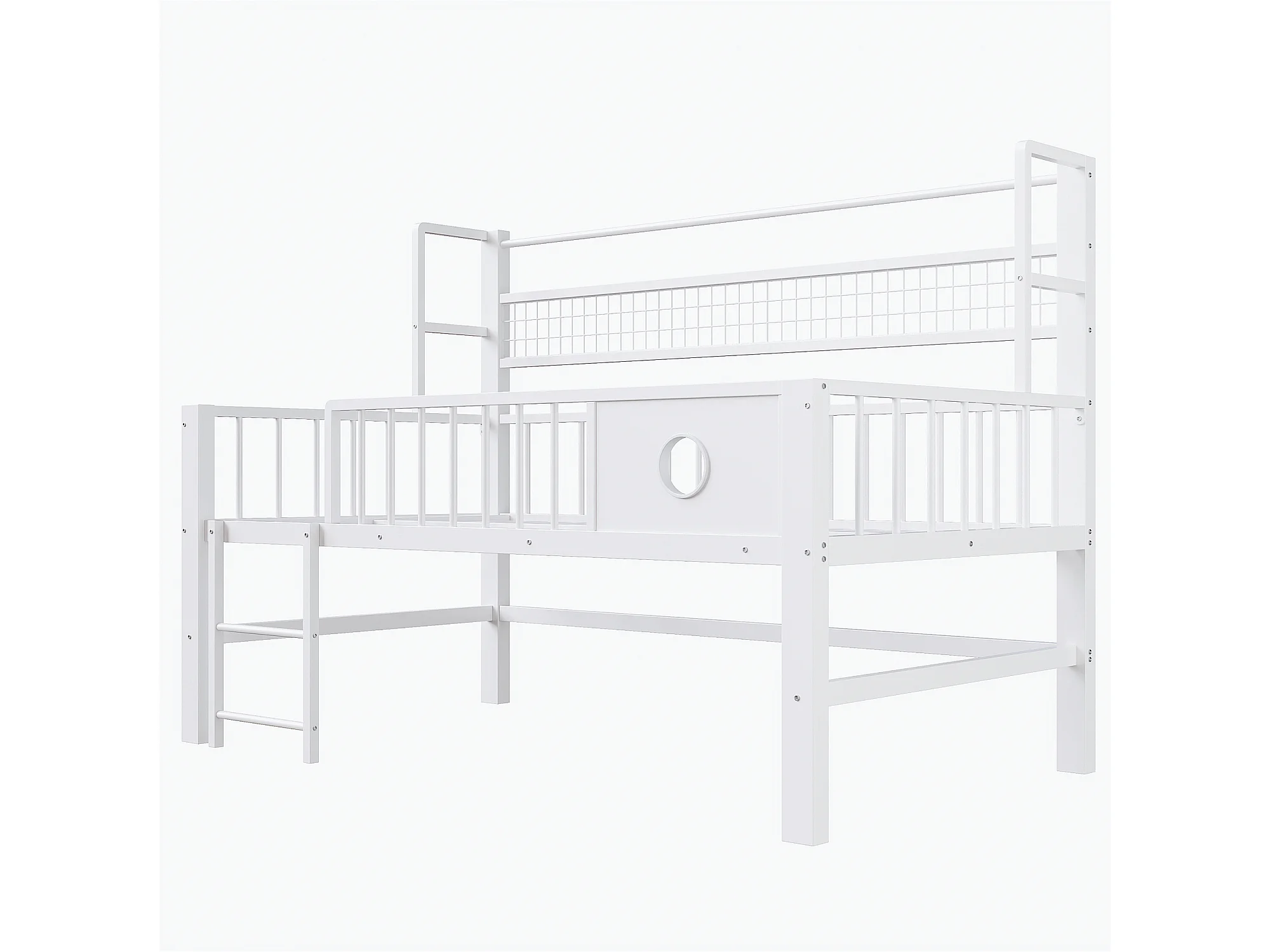 Lit mezzanine bas enfant - 90 x 200cm - avec cadre en métal et compartiments de rangement - blanc