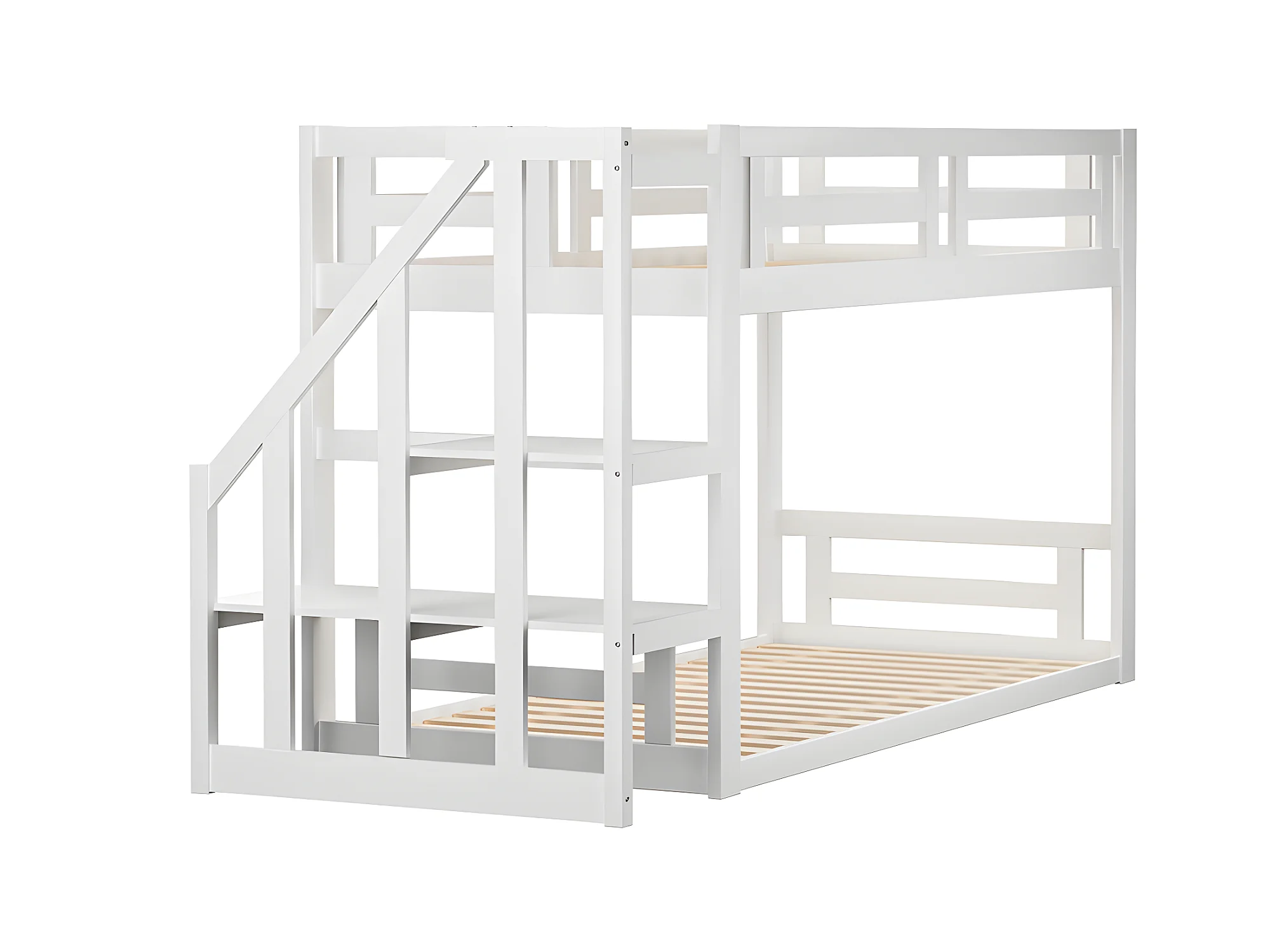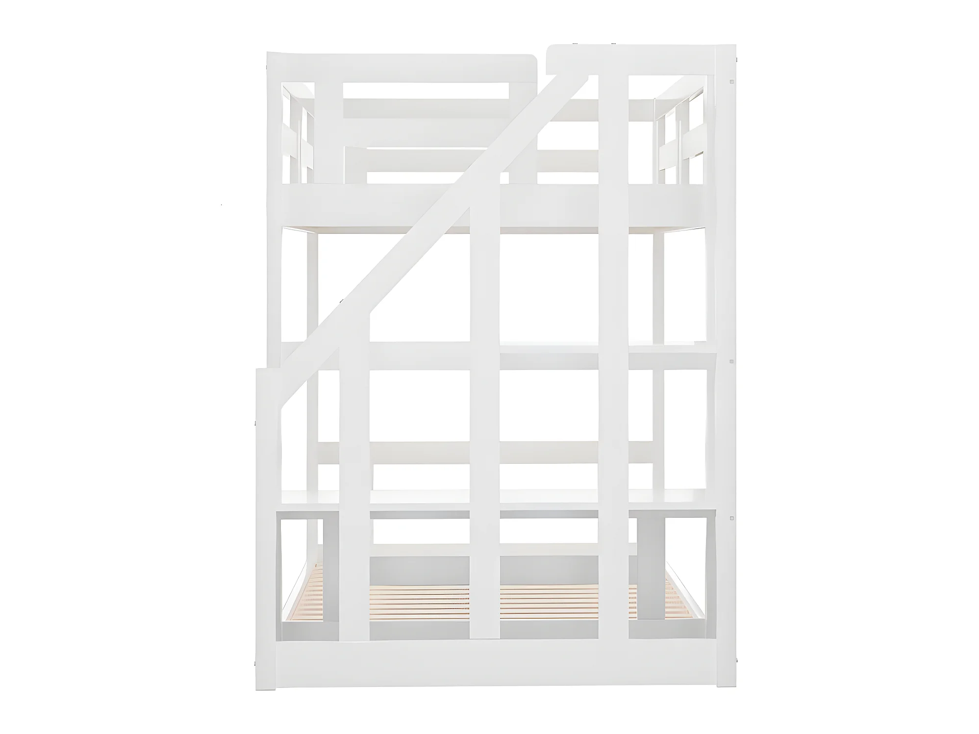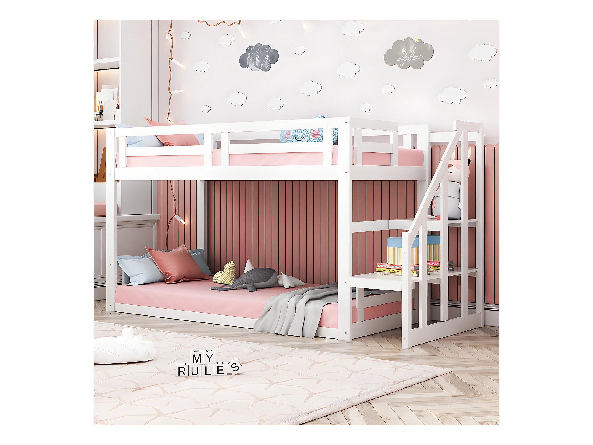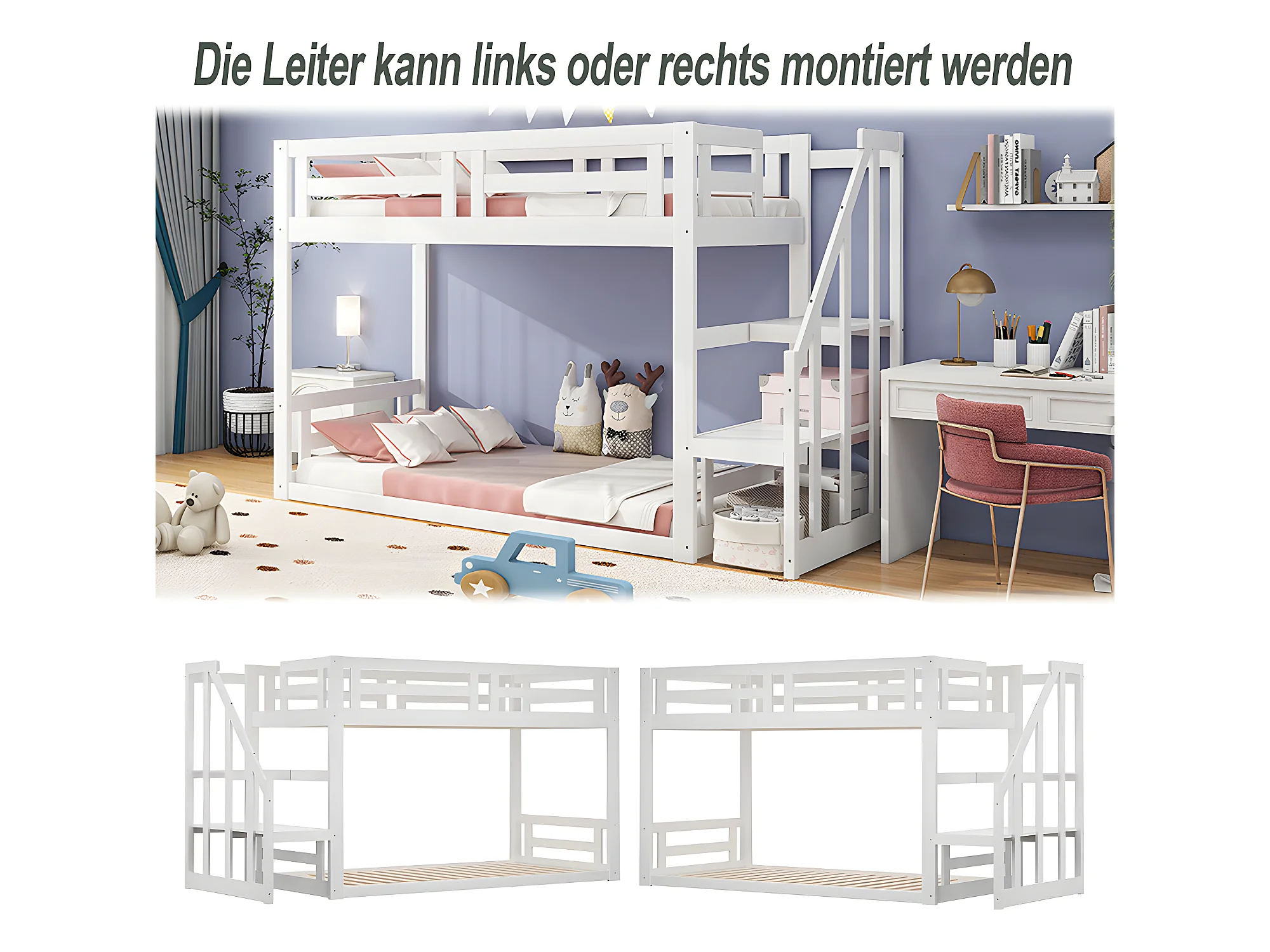 Lit mezzanine cabane avec escalier de rangement - 90x200cm - blanc - Sweiko