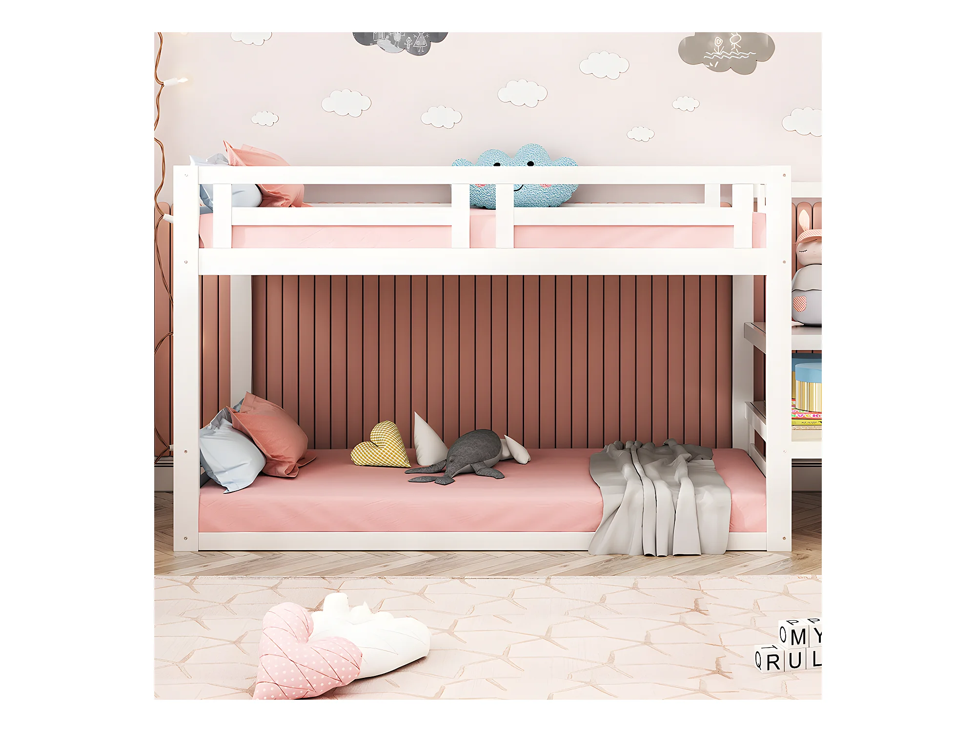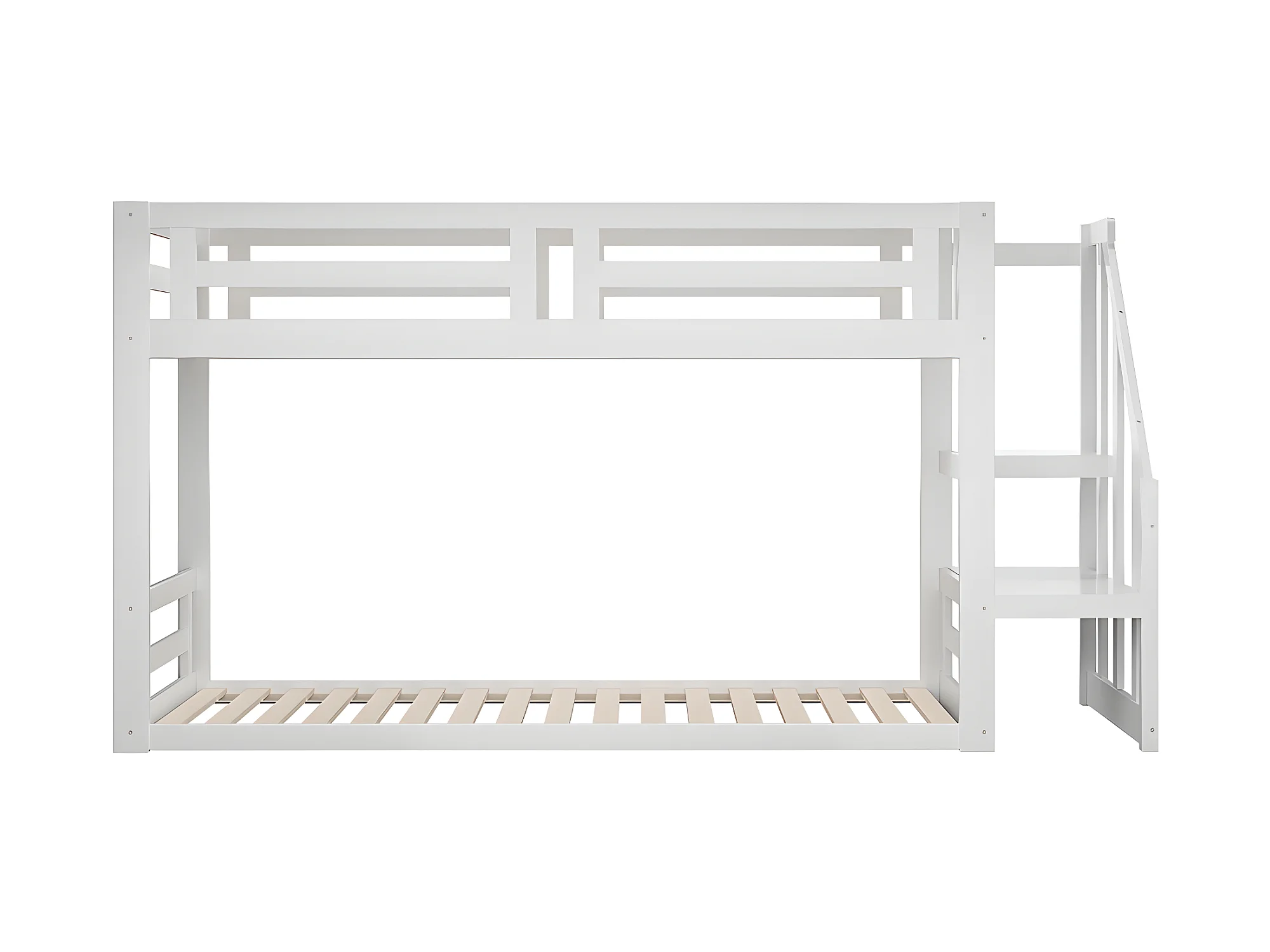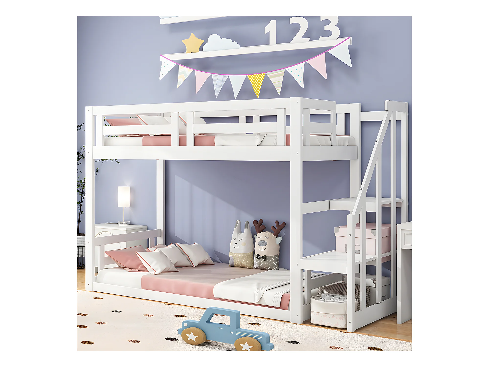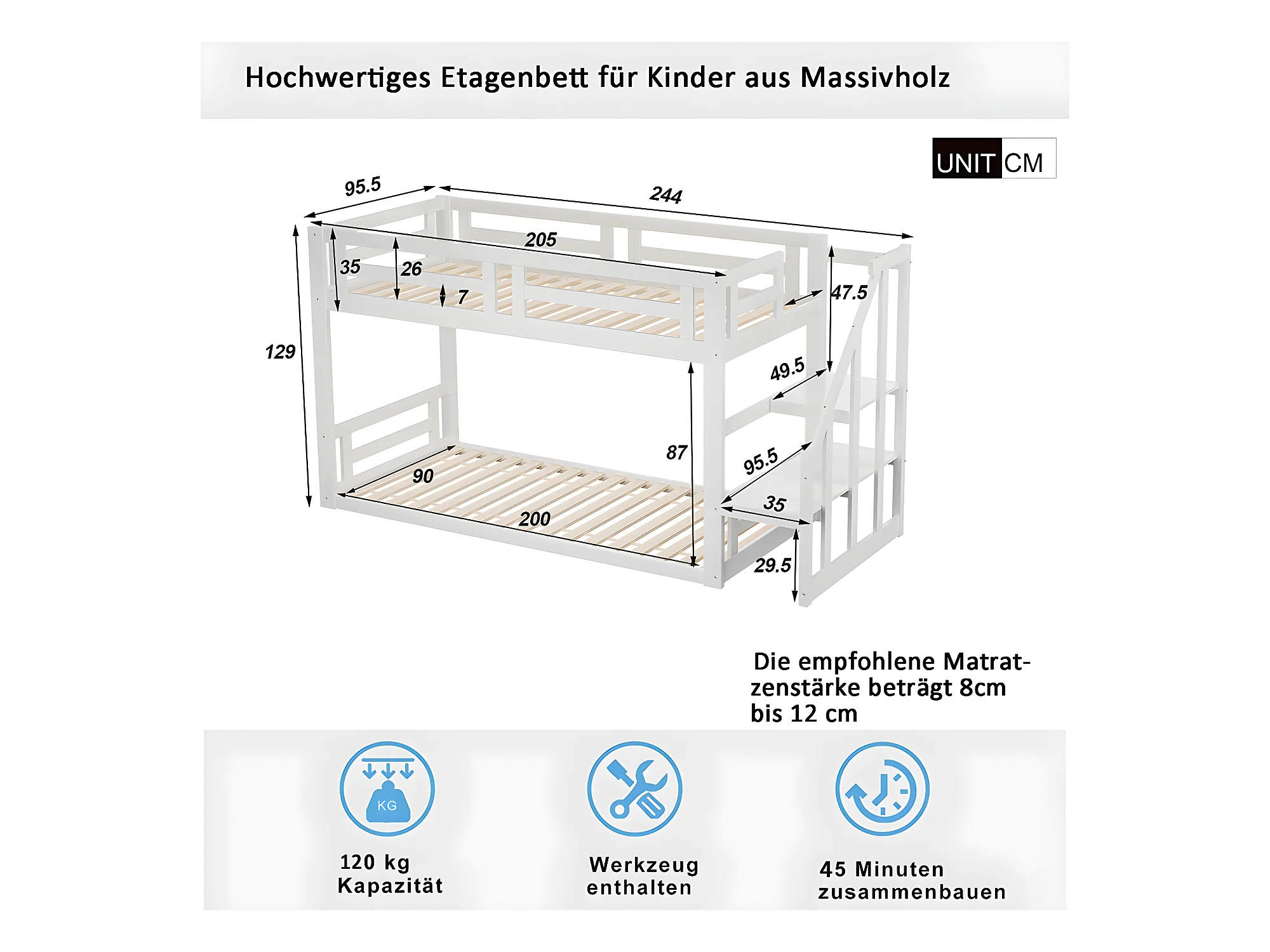 Lit mezzanine cabane avec escalier de rangement - 90x200cm - blanc - Sweiko