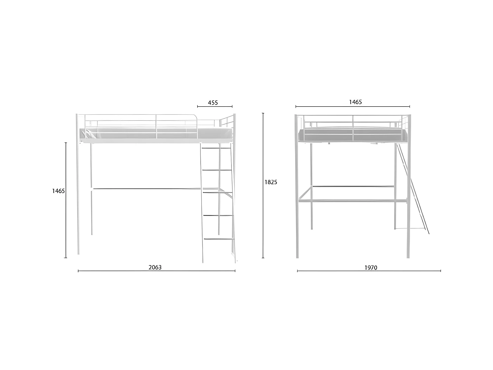 Lit mezzanine ELIOT 140 x 190 cm - Métal Blanc - Pour Enfant - Sommier Inclus