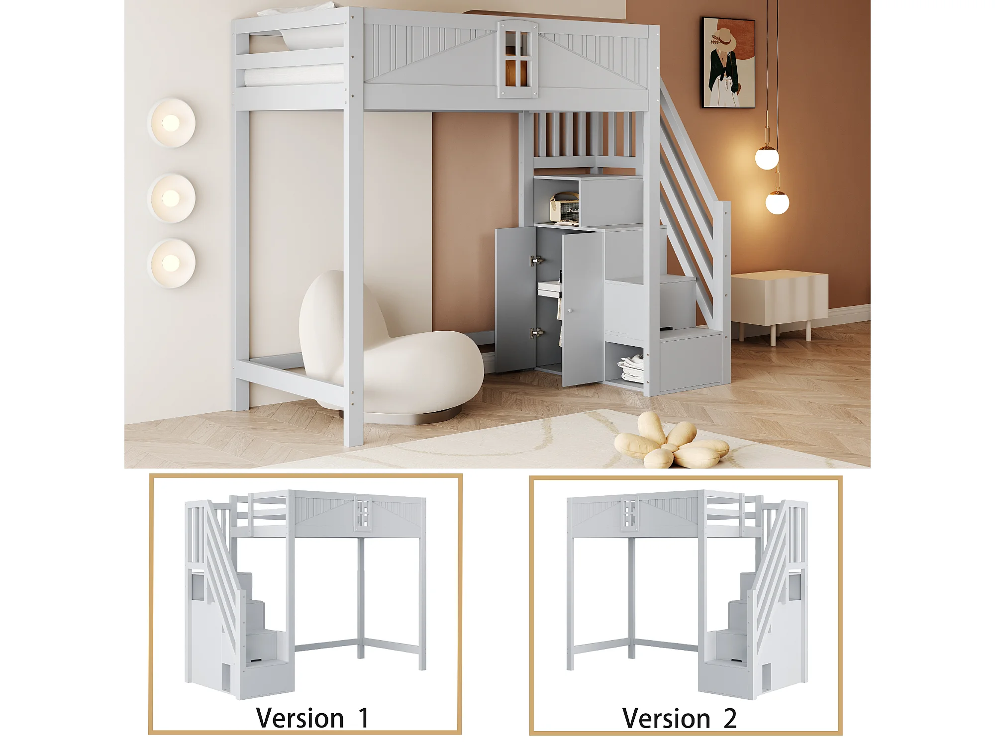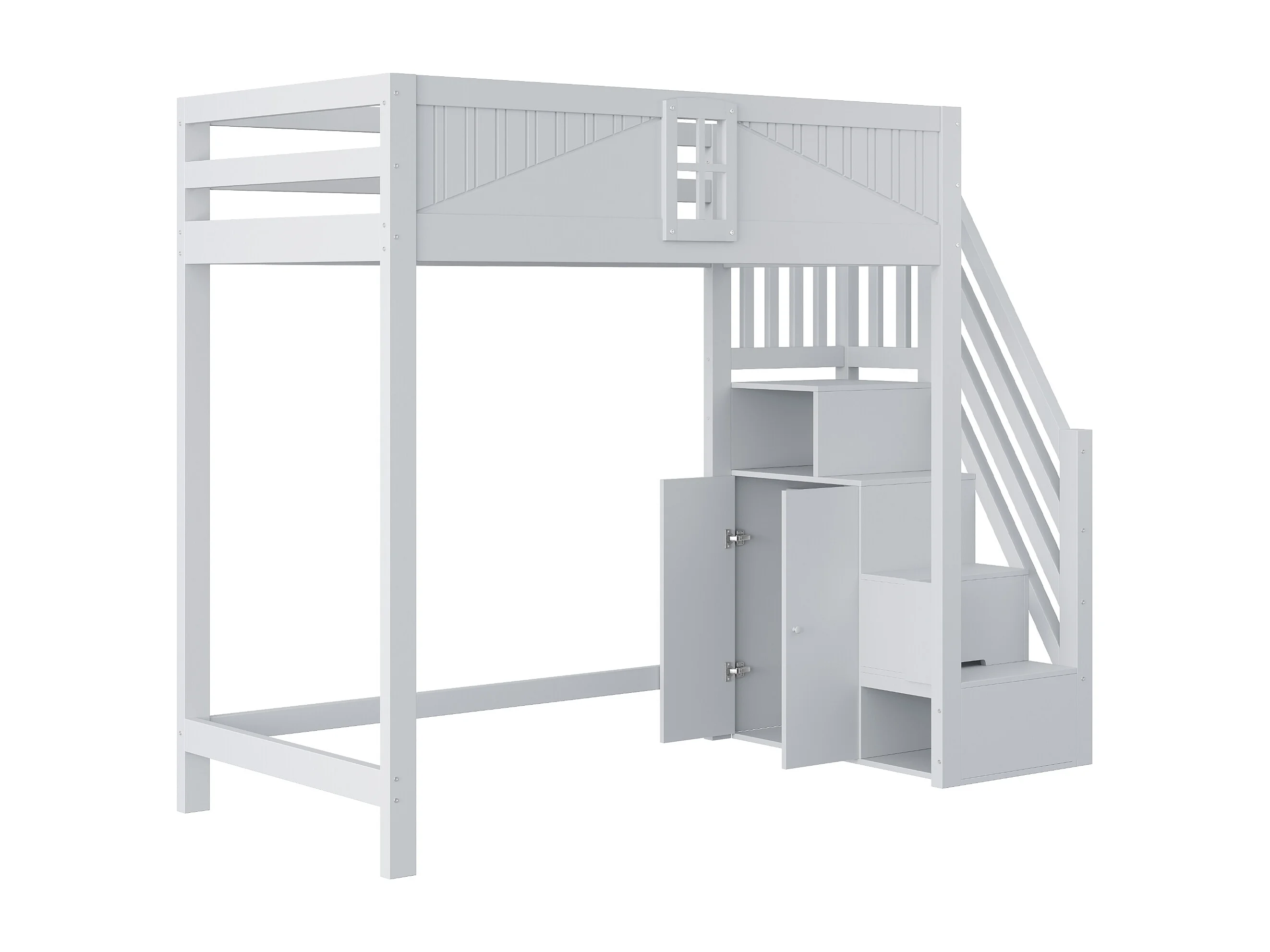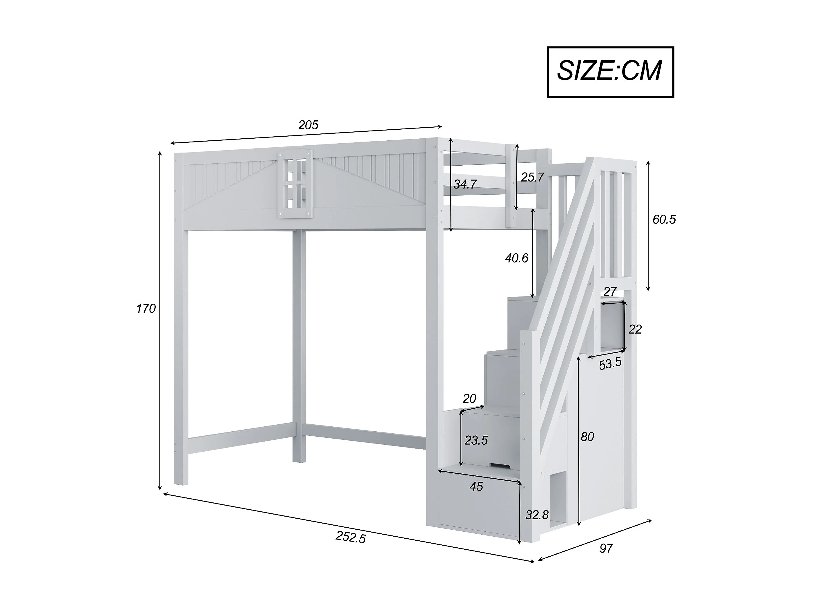 Lit mezzanine en bois 90 x 200 cm avec rangement - Lit enfant en coleur gris