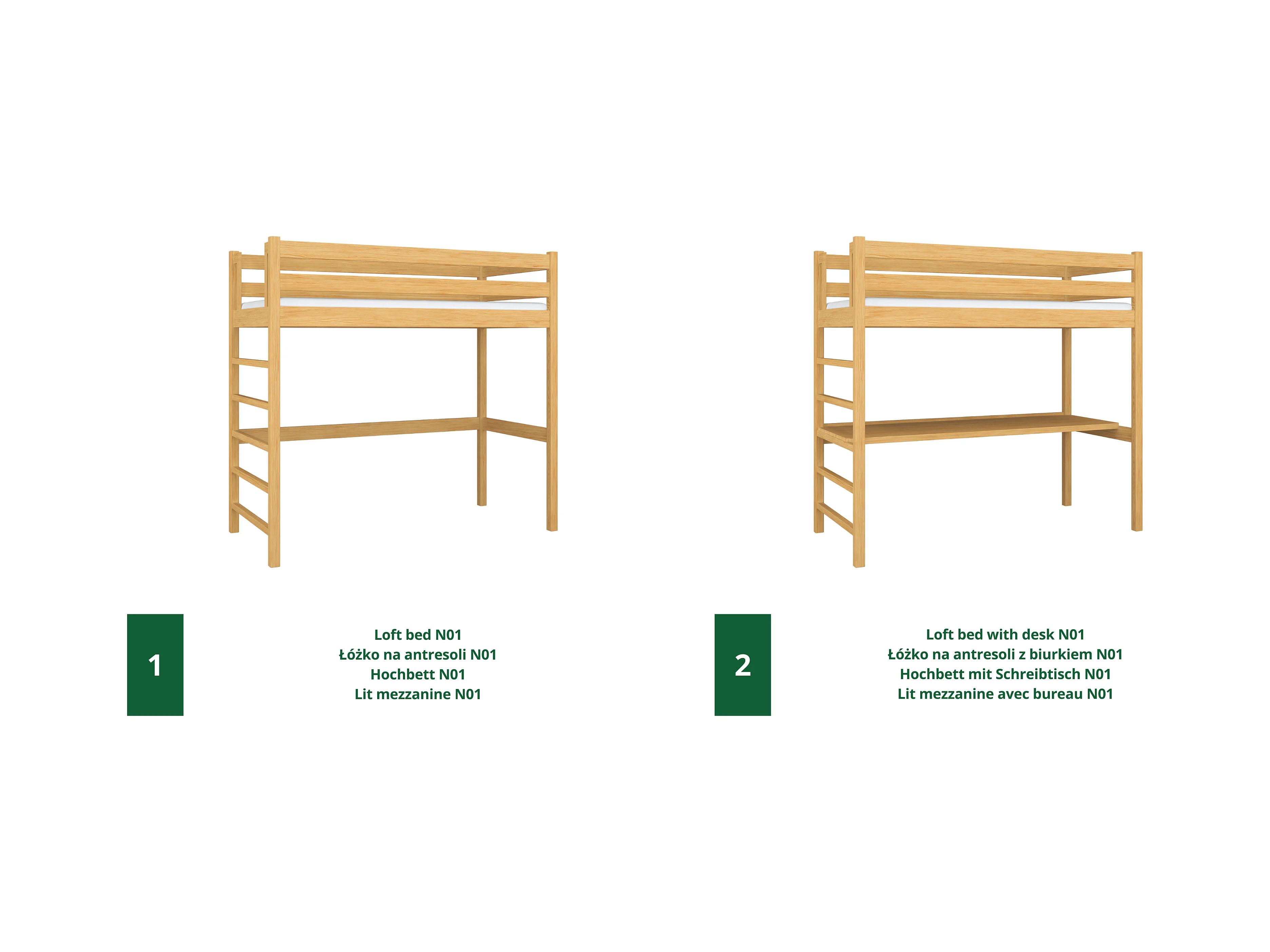 Lit mezzanine en bois - avec bureau N01 Pin Naturel 100x180