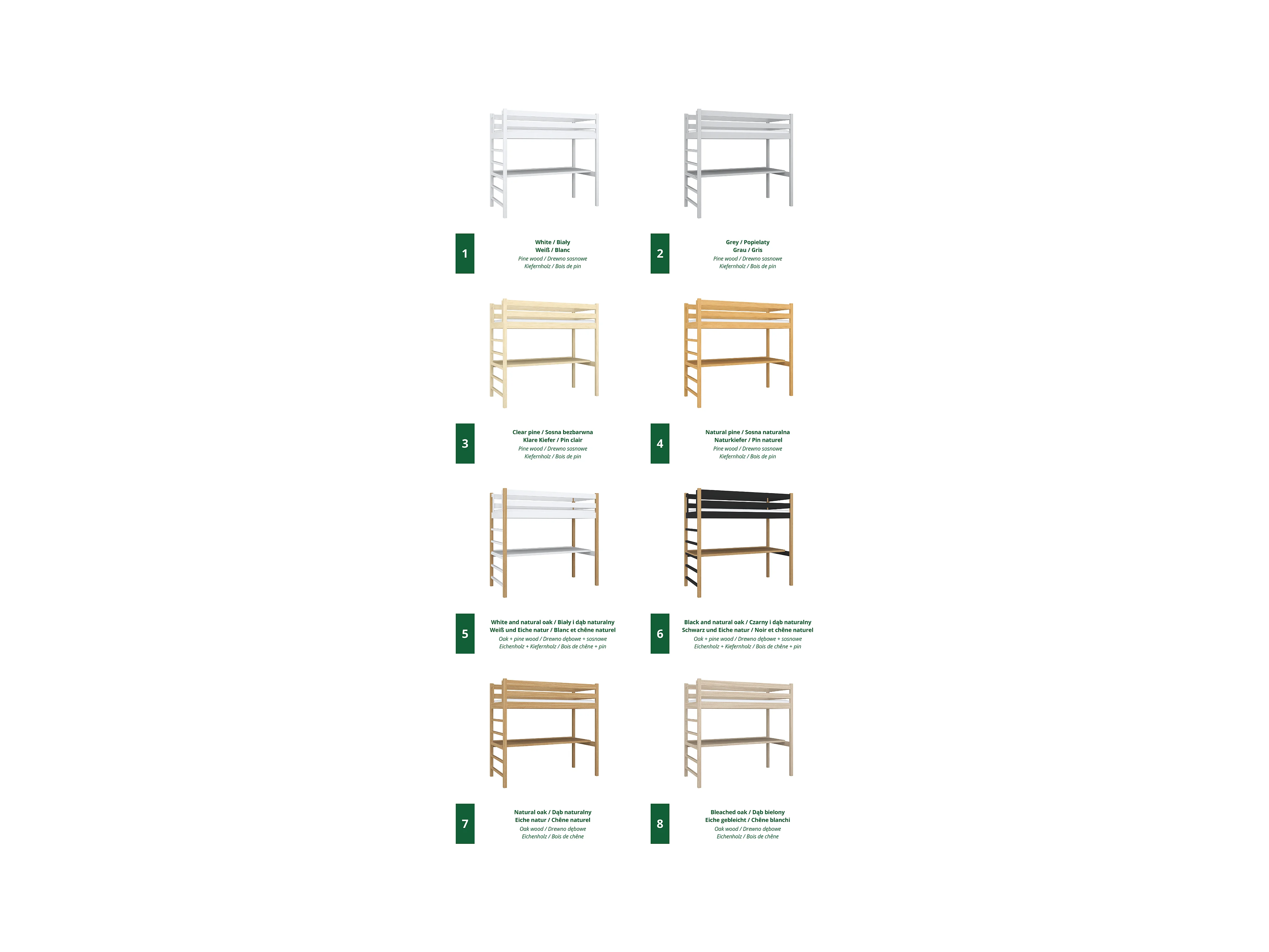 Lit mezzanine en bois - avec bureau N01 Pin Naturel 90x180