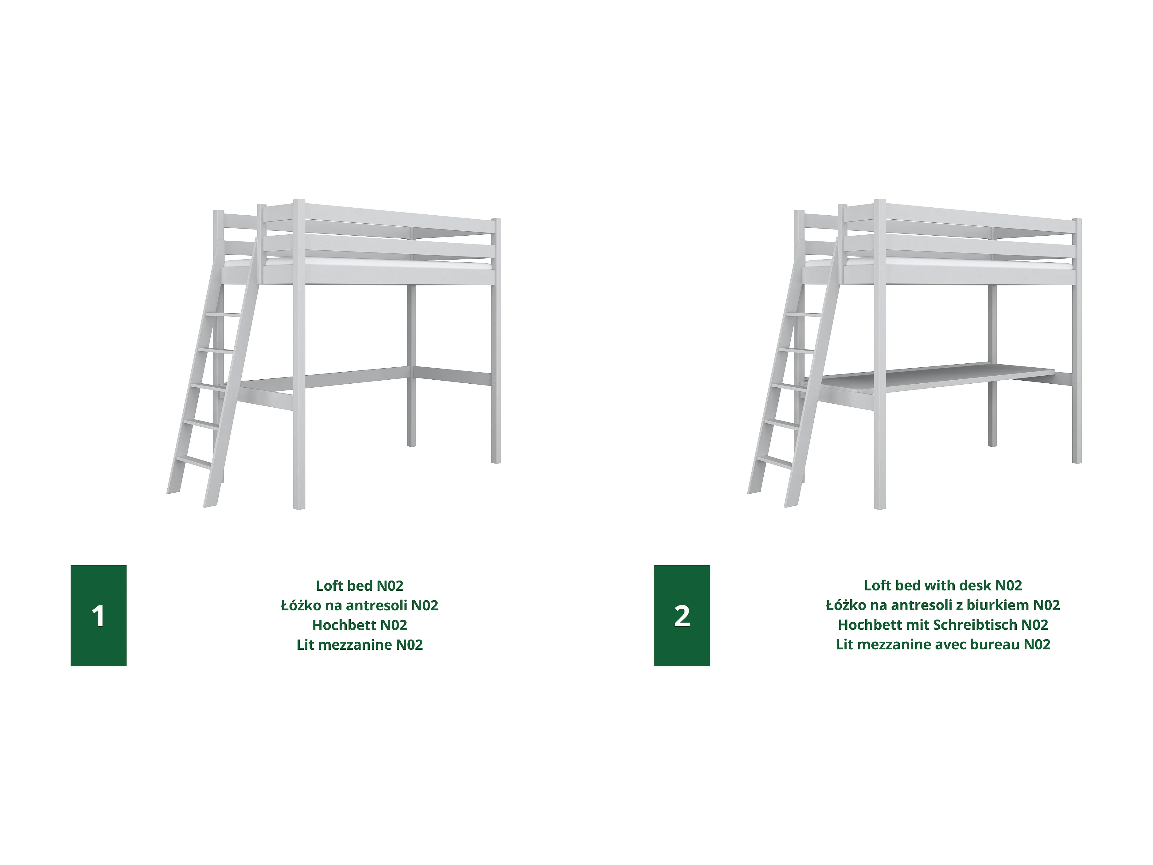 Lit mezzanine en bois - avec bureau N02 Gris 120x180