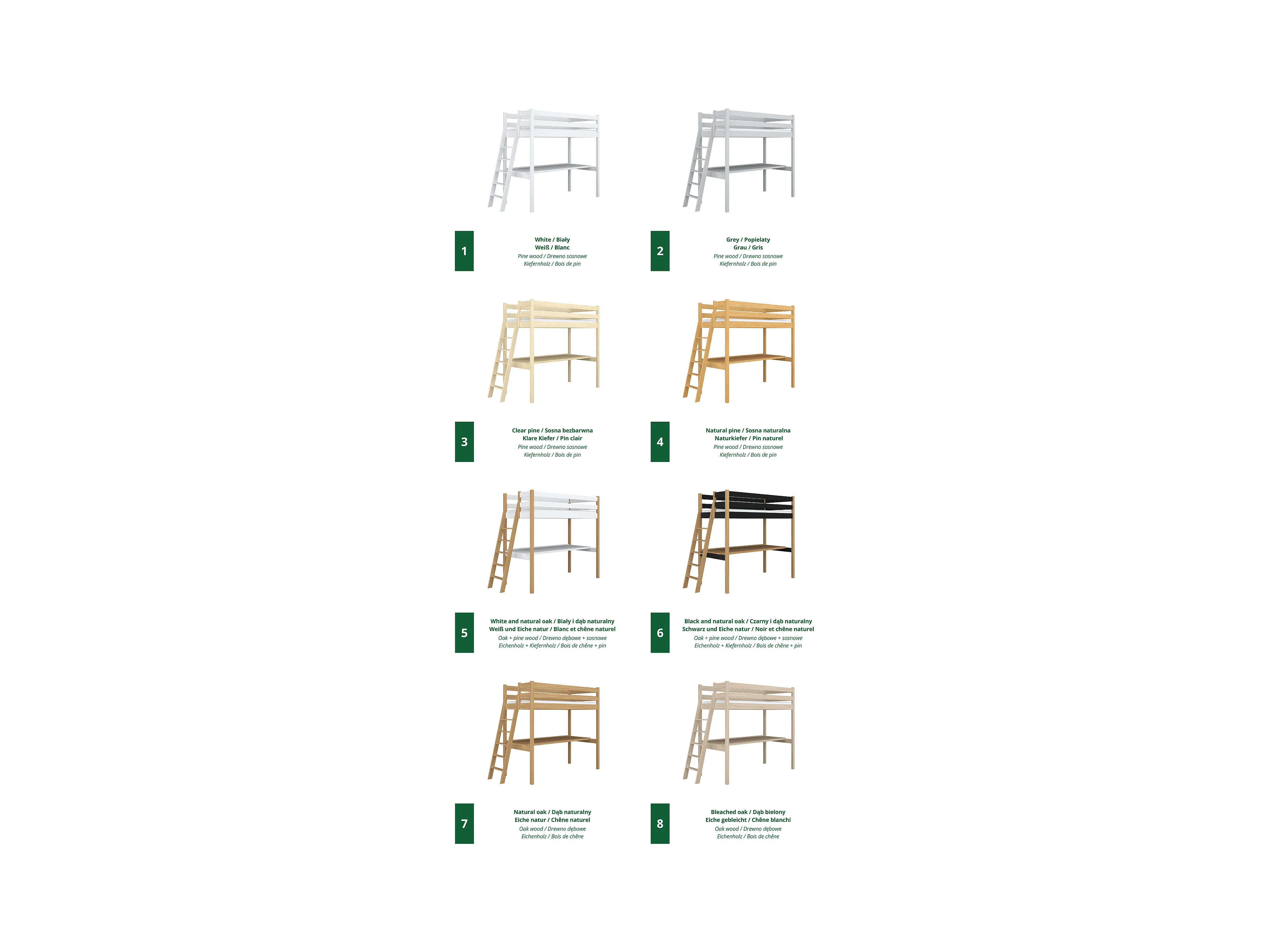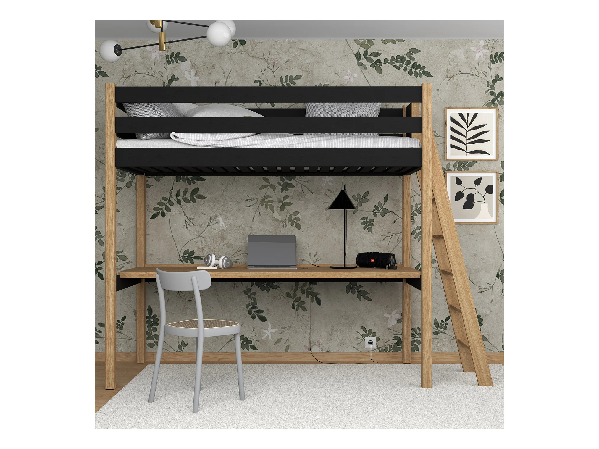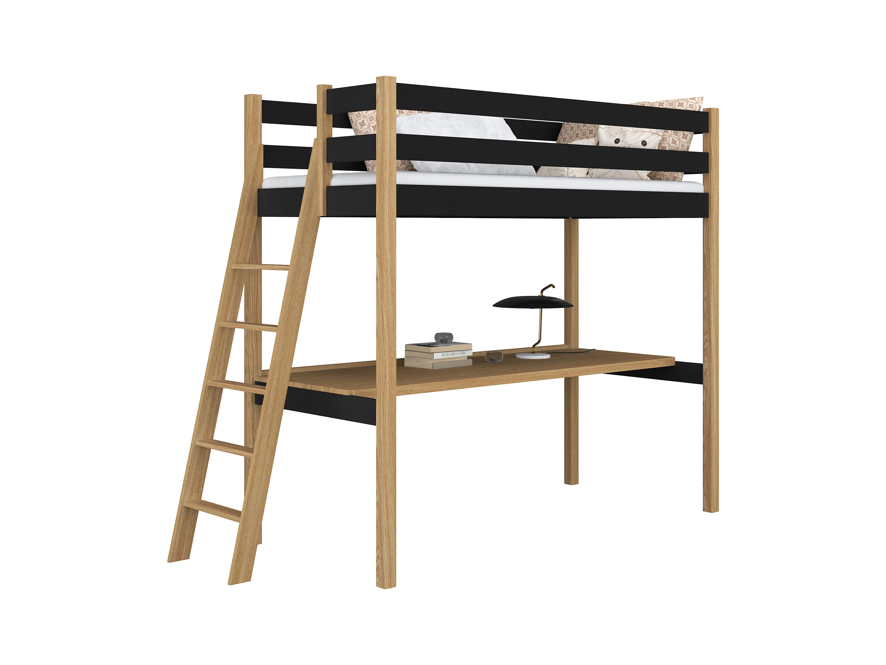 Lit mezzanine en bois - avec bureau N02 Noir / Chêne Naturel 100x200