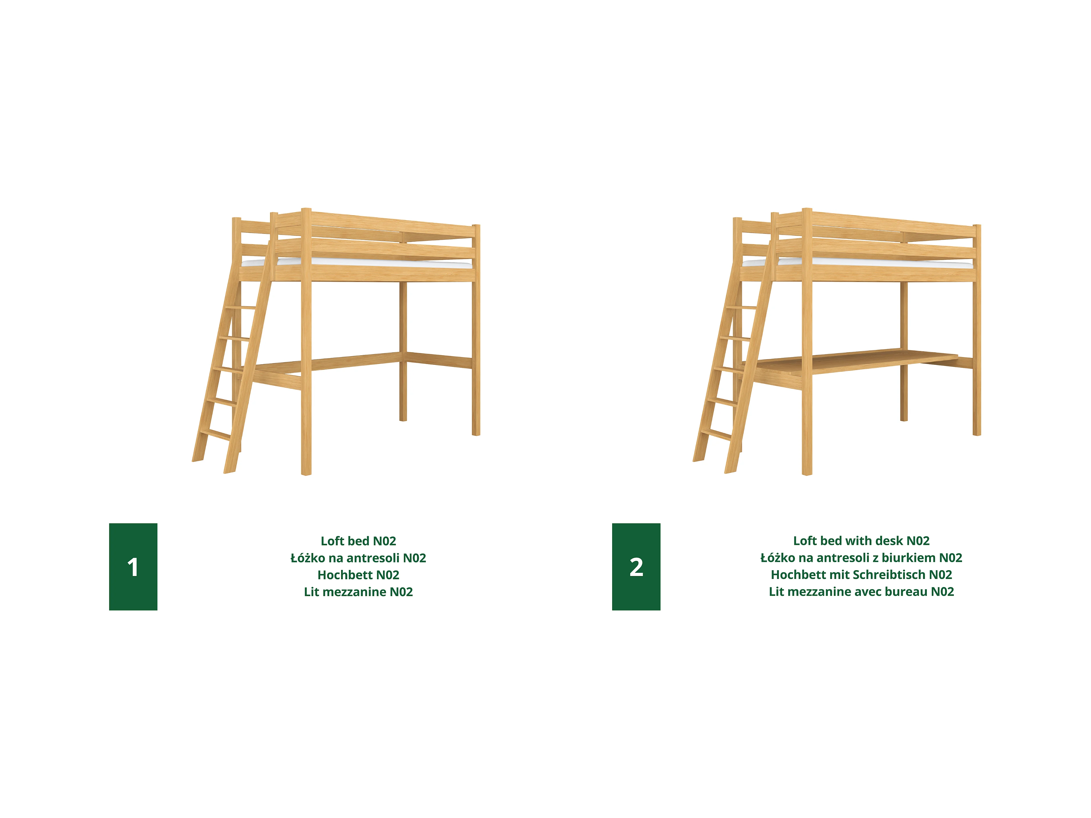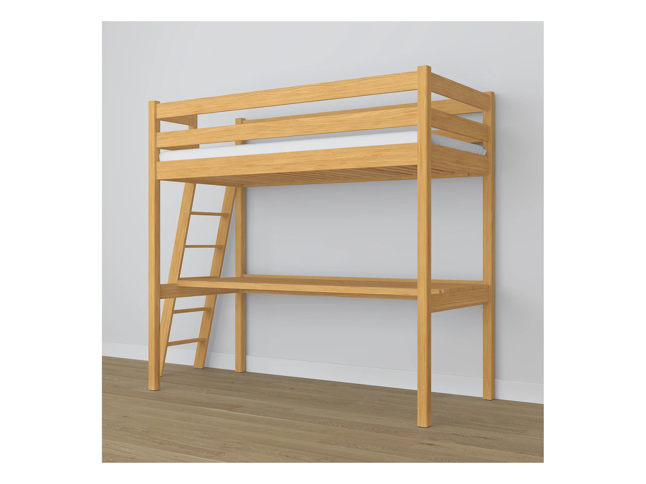 Lit mezzanine en bois - avec bureau N02 Pin Naturel 90x200