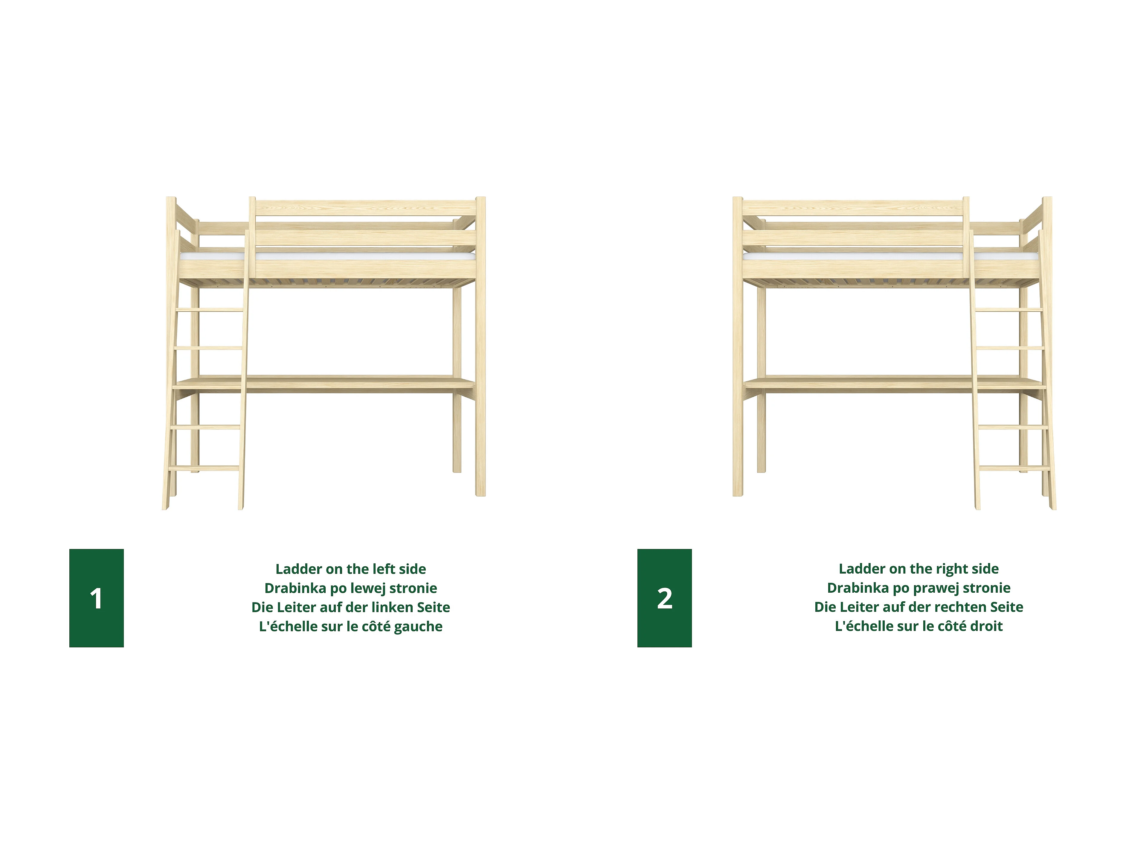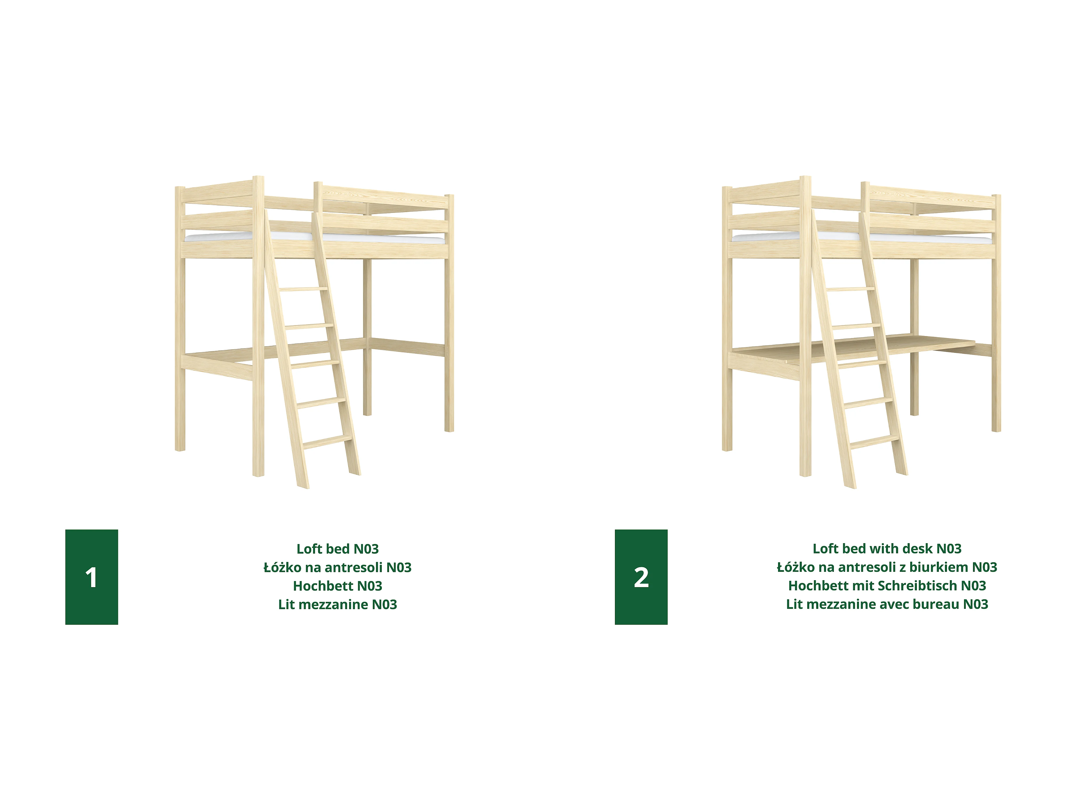 Lit mezzanine en bois - avec bureau N03 Pin Clair 120x190