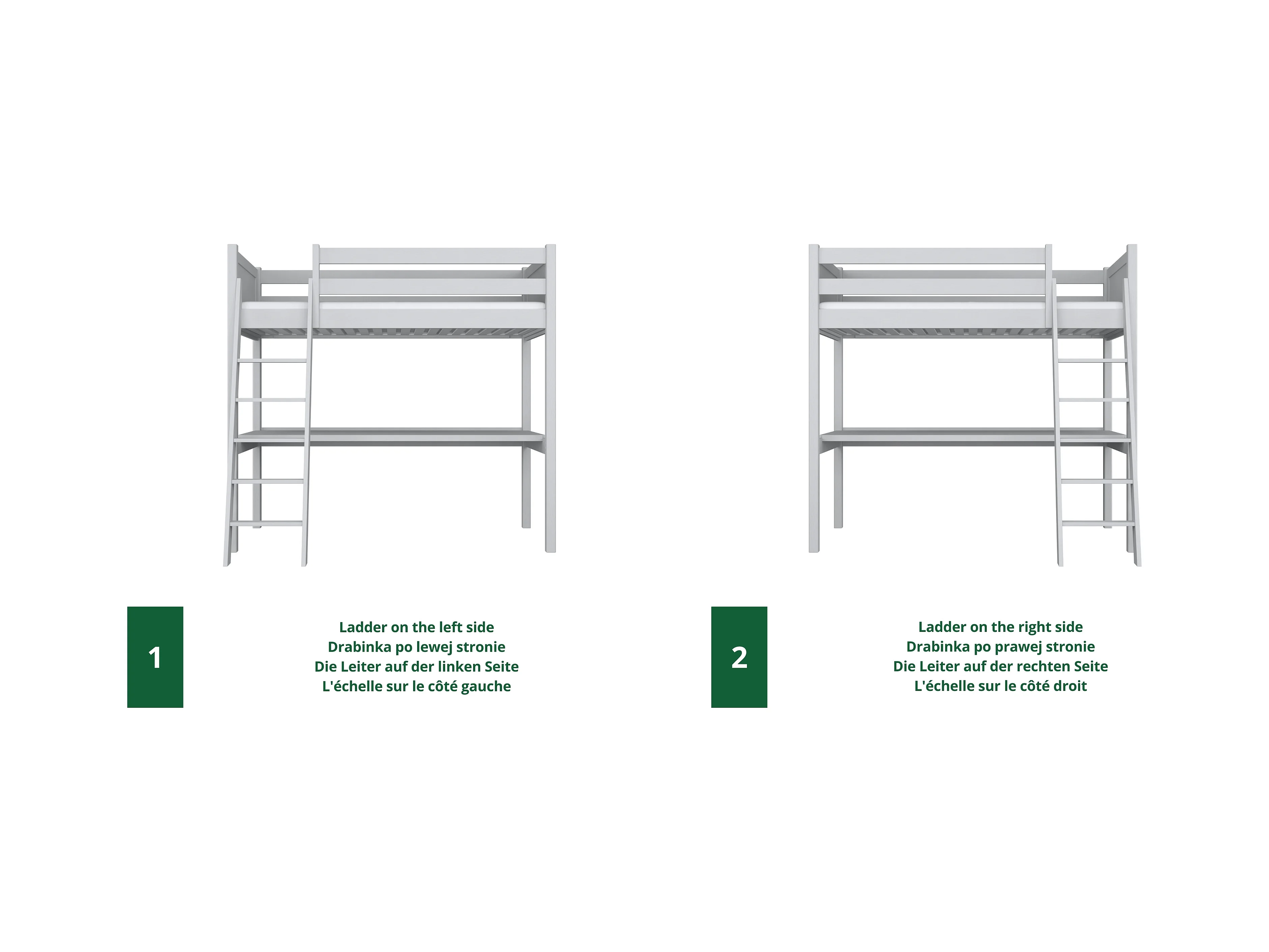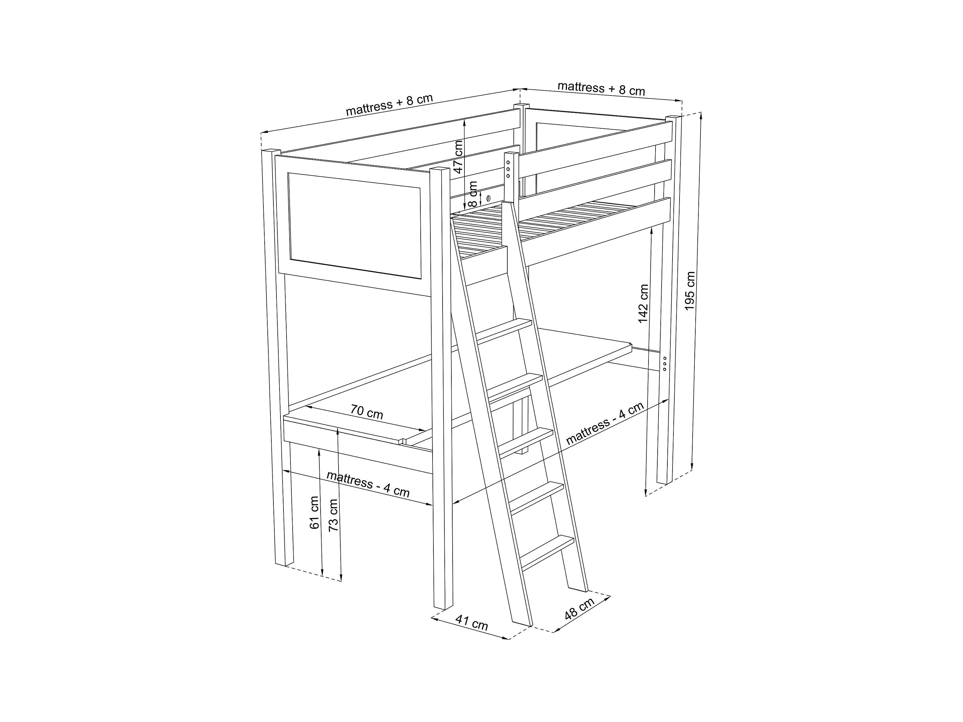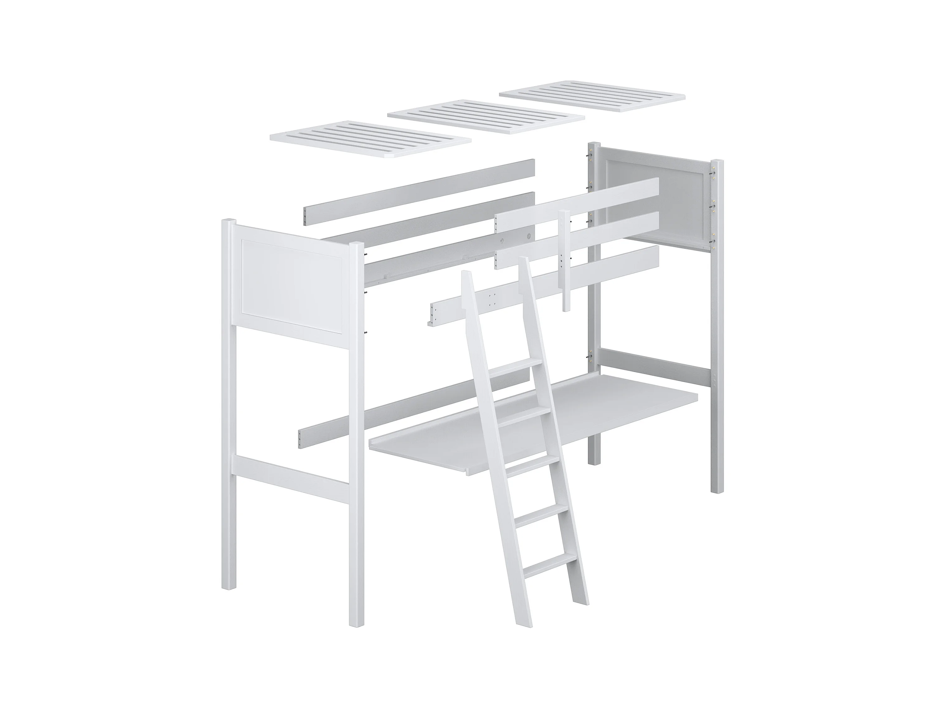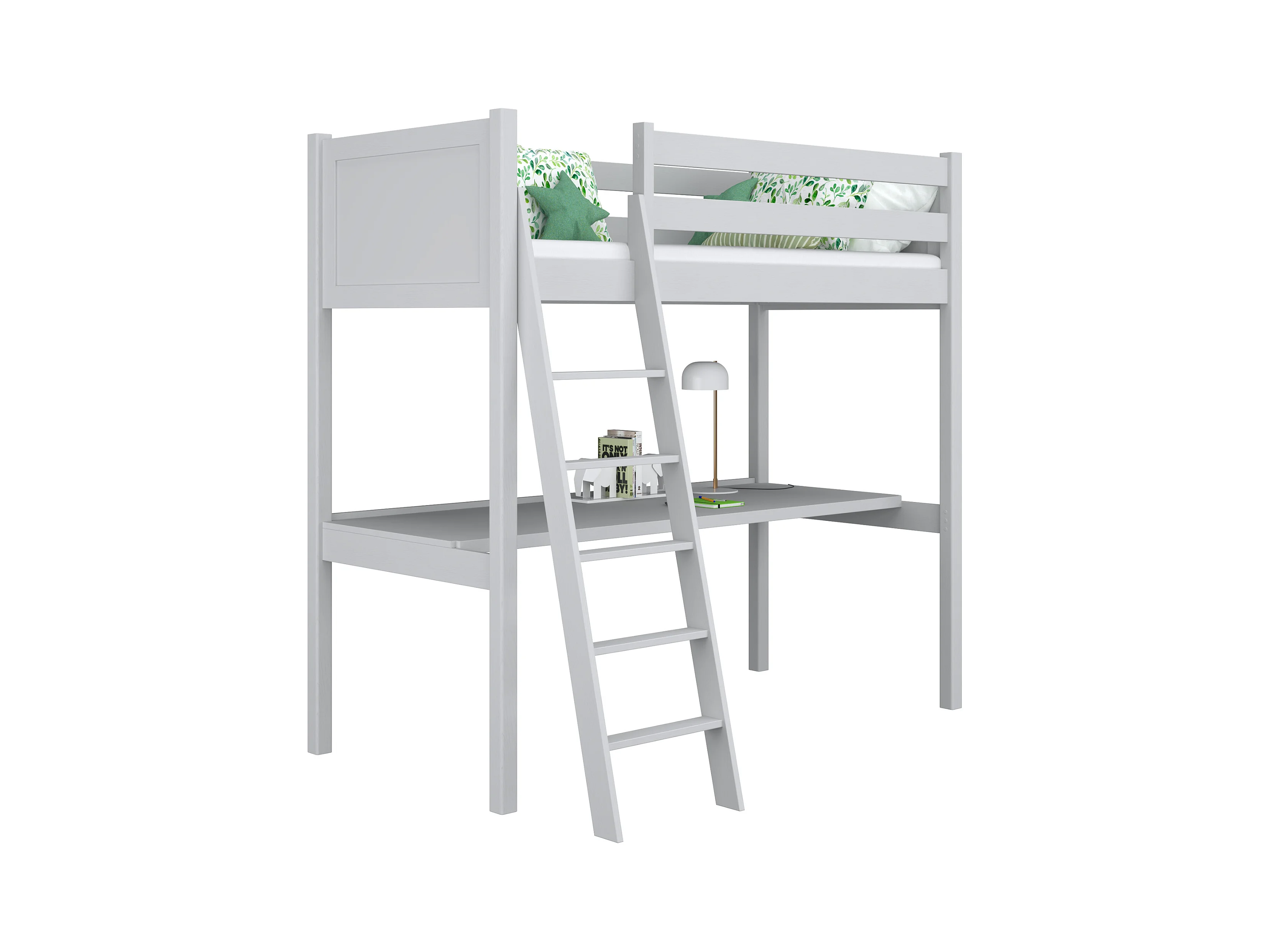 Lit mezzanine en bois - avec bureau N04 Gris 90x180