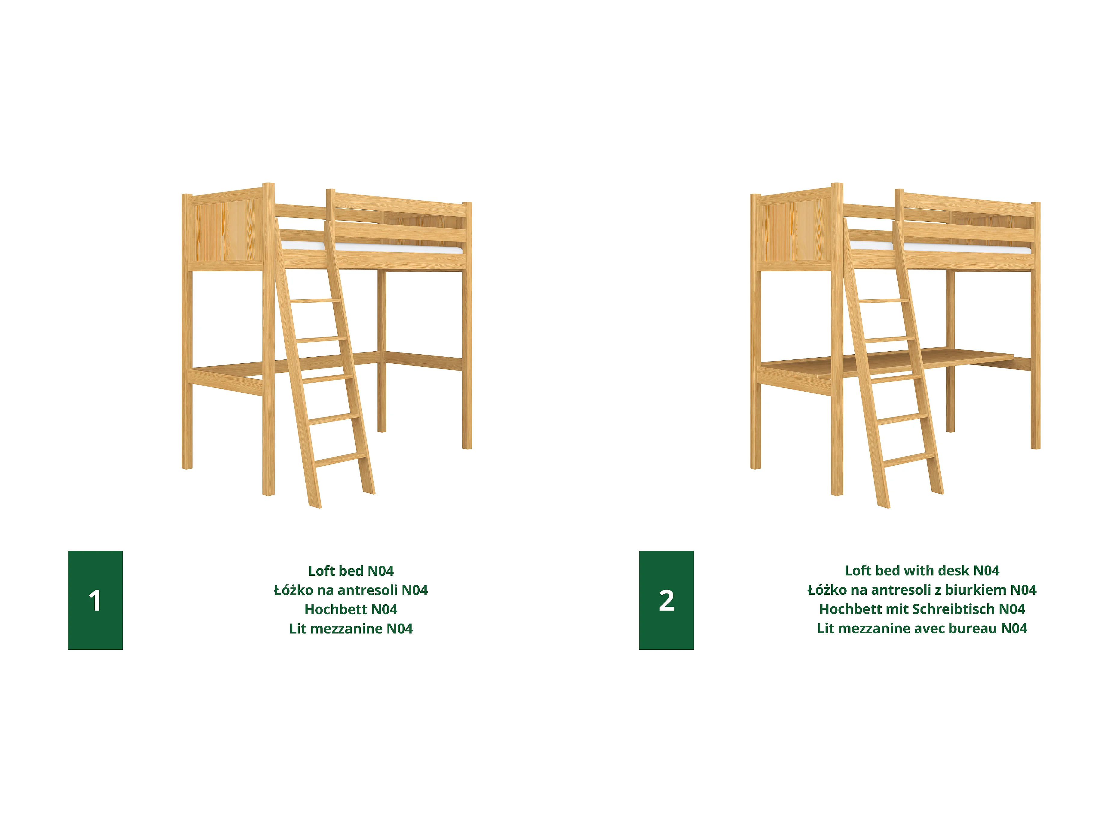 Lit mezzanine en bois - avec bureau N04 Pin Naturel 120x180