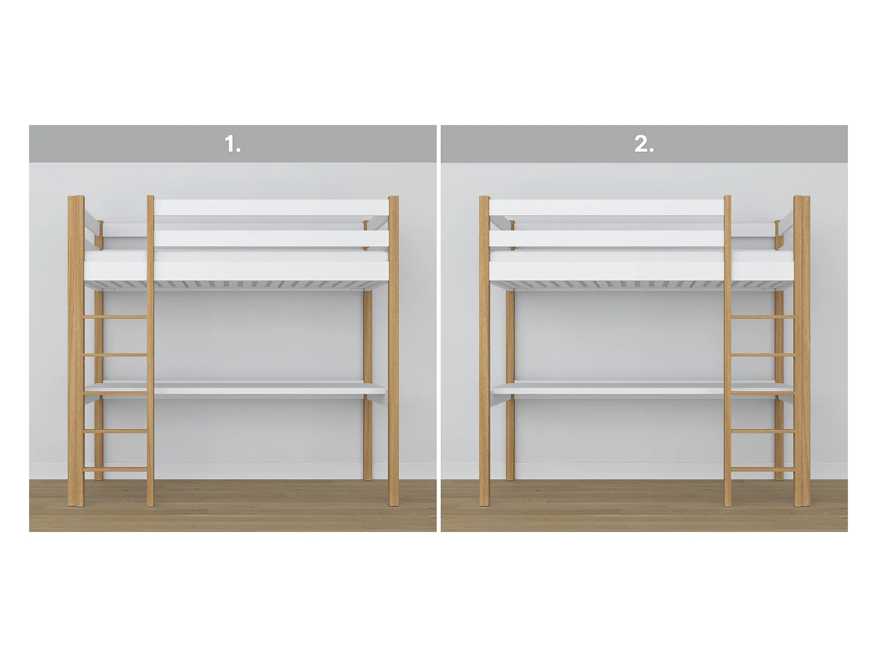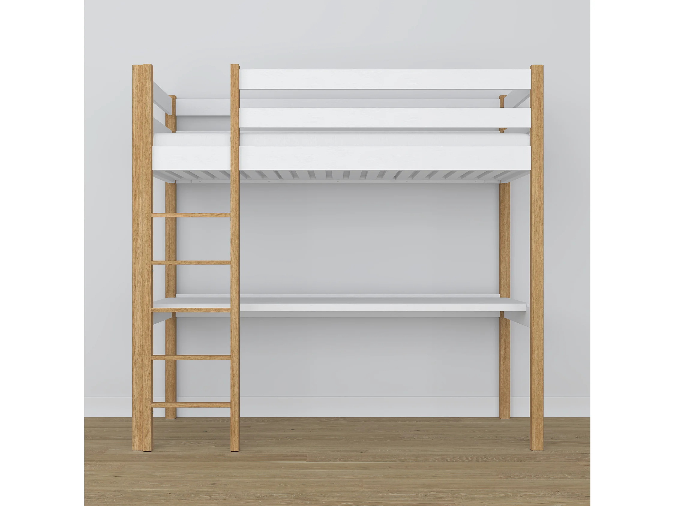 Lit mezzanine en bois - avec bureau N05 Blanc / Chêne Naturel 80x180