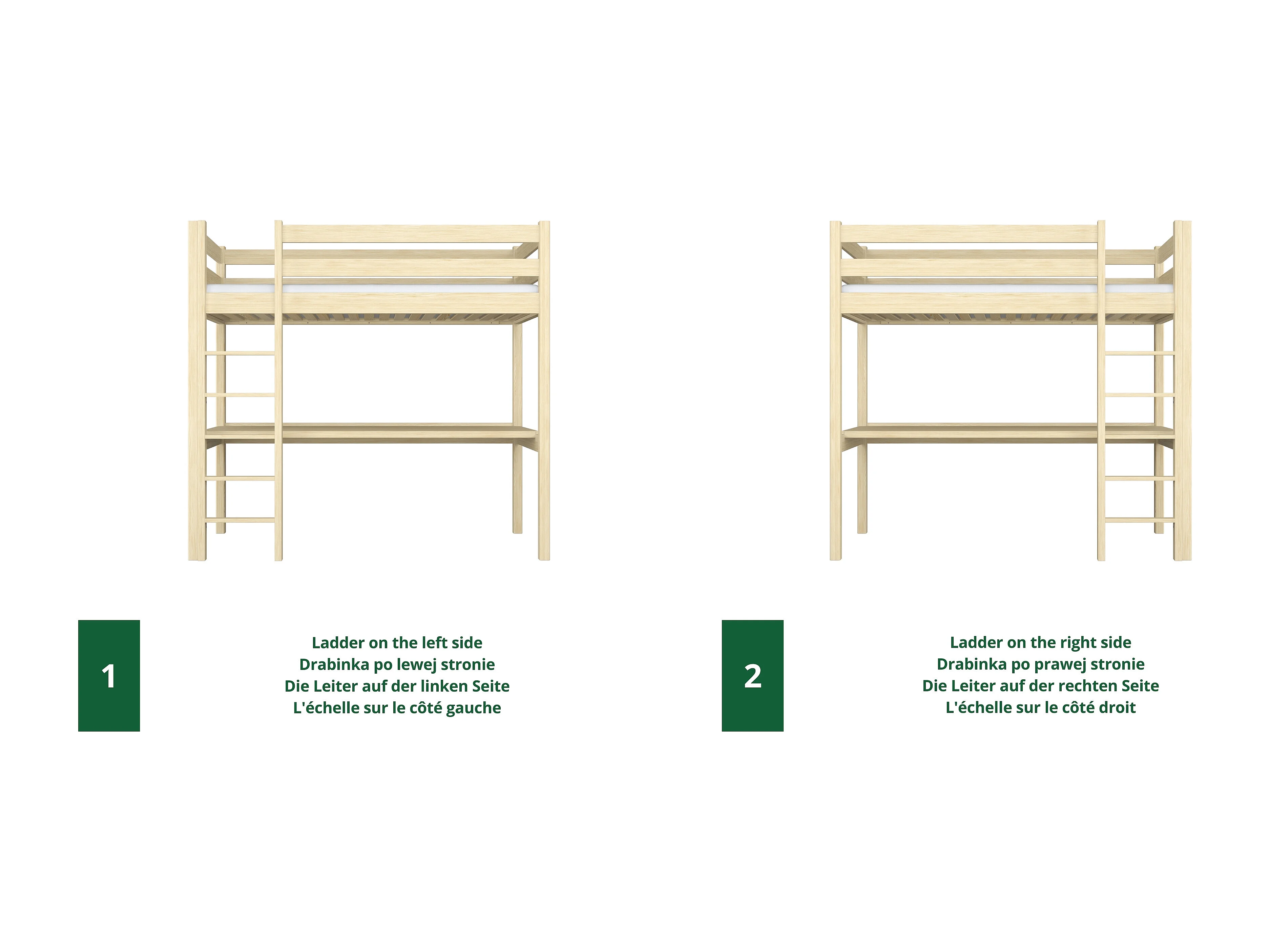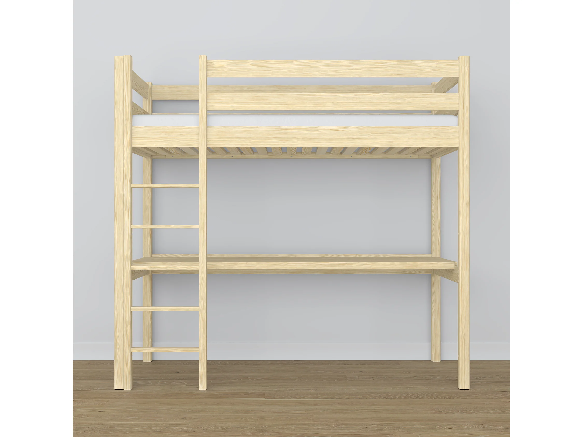 Lit mezzanine en bois - avec bureau N05 Pin Clair 90x190