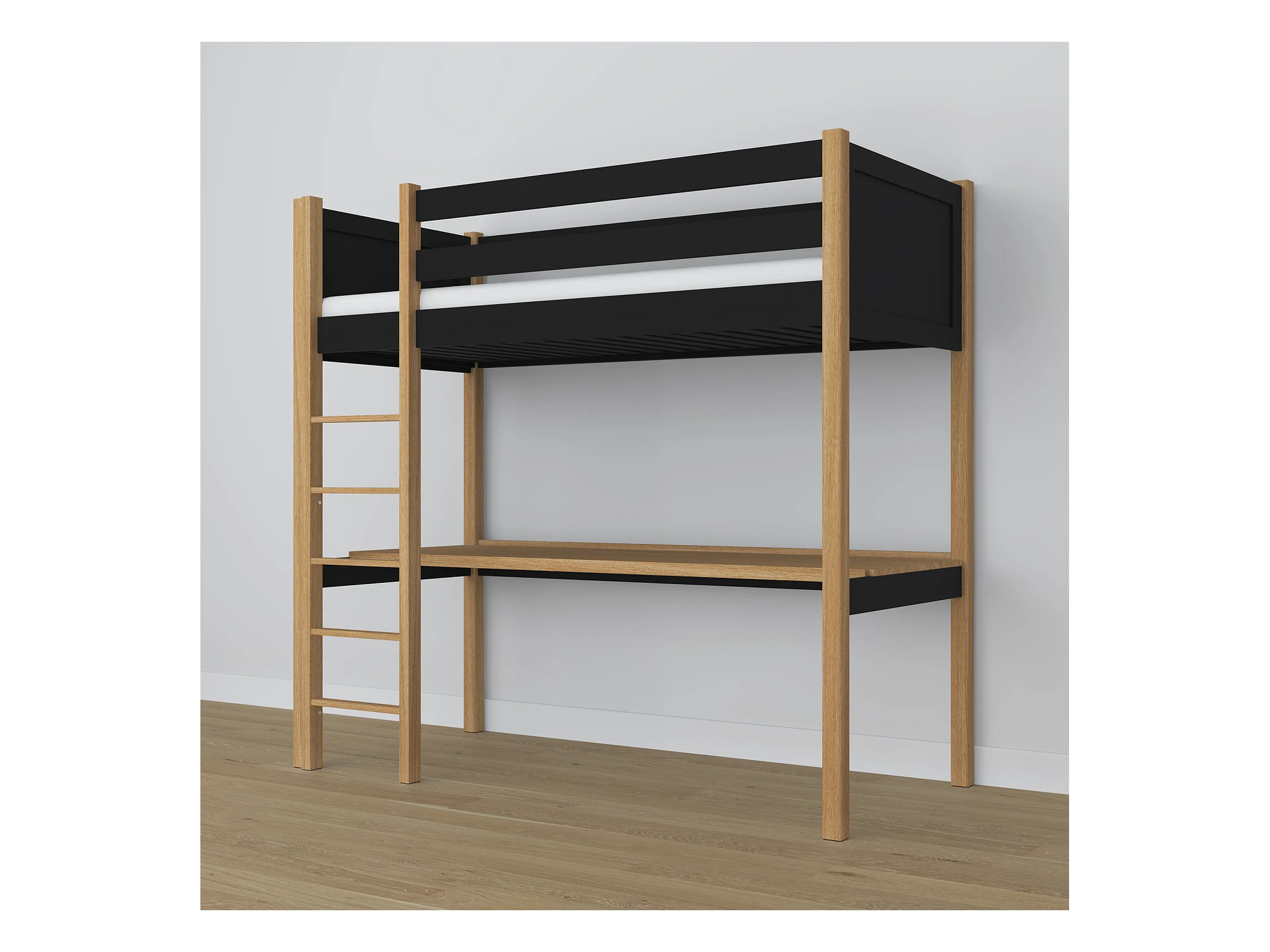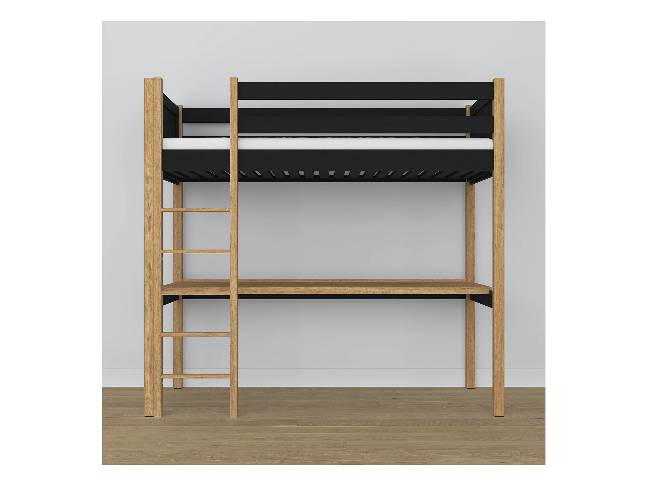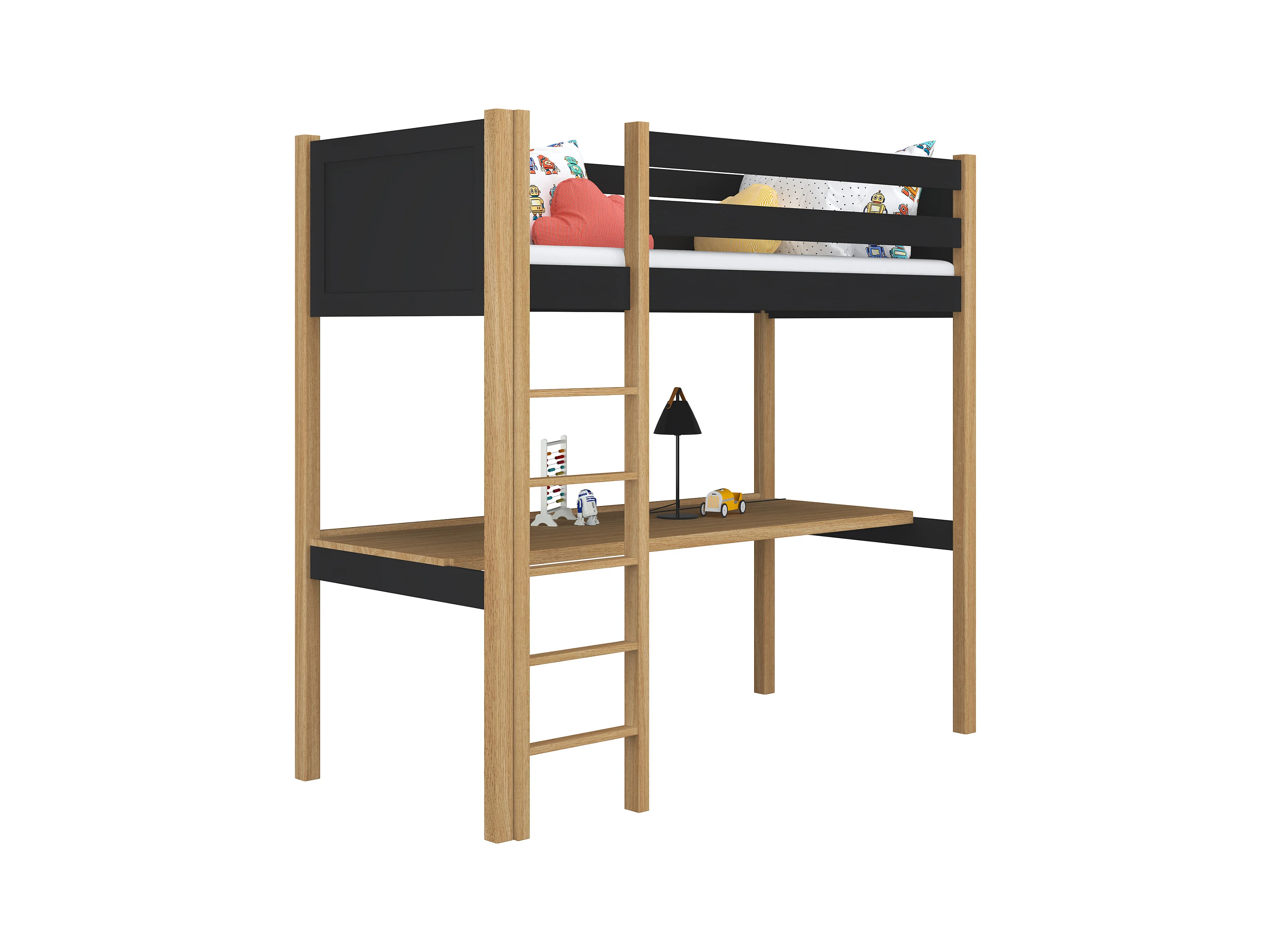 Lit mezzanine en bois - avec bureau N06 Noir / Chêne Naturel 90x190