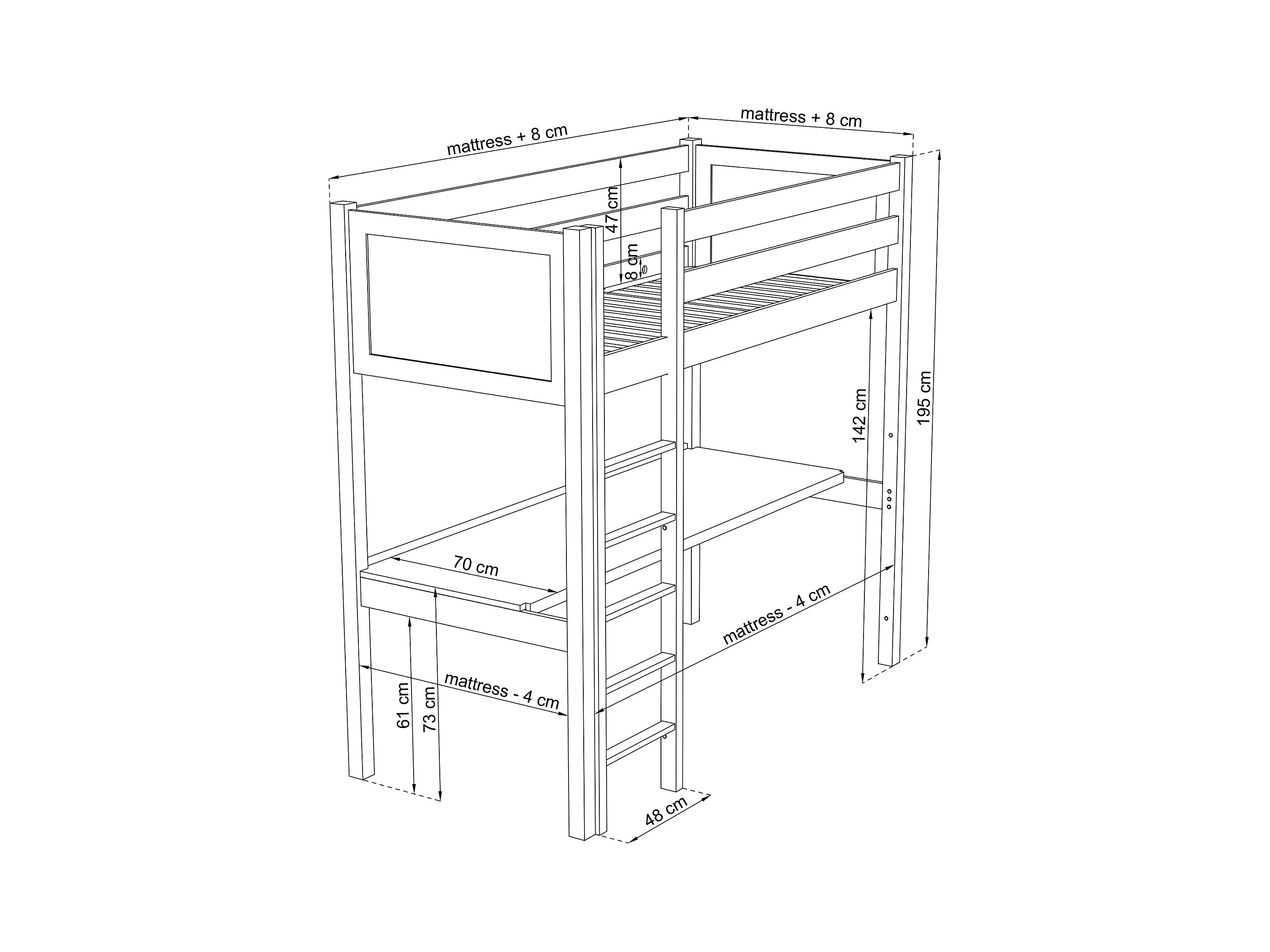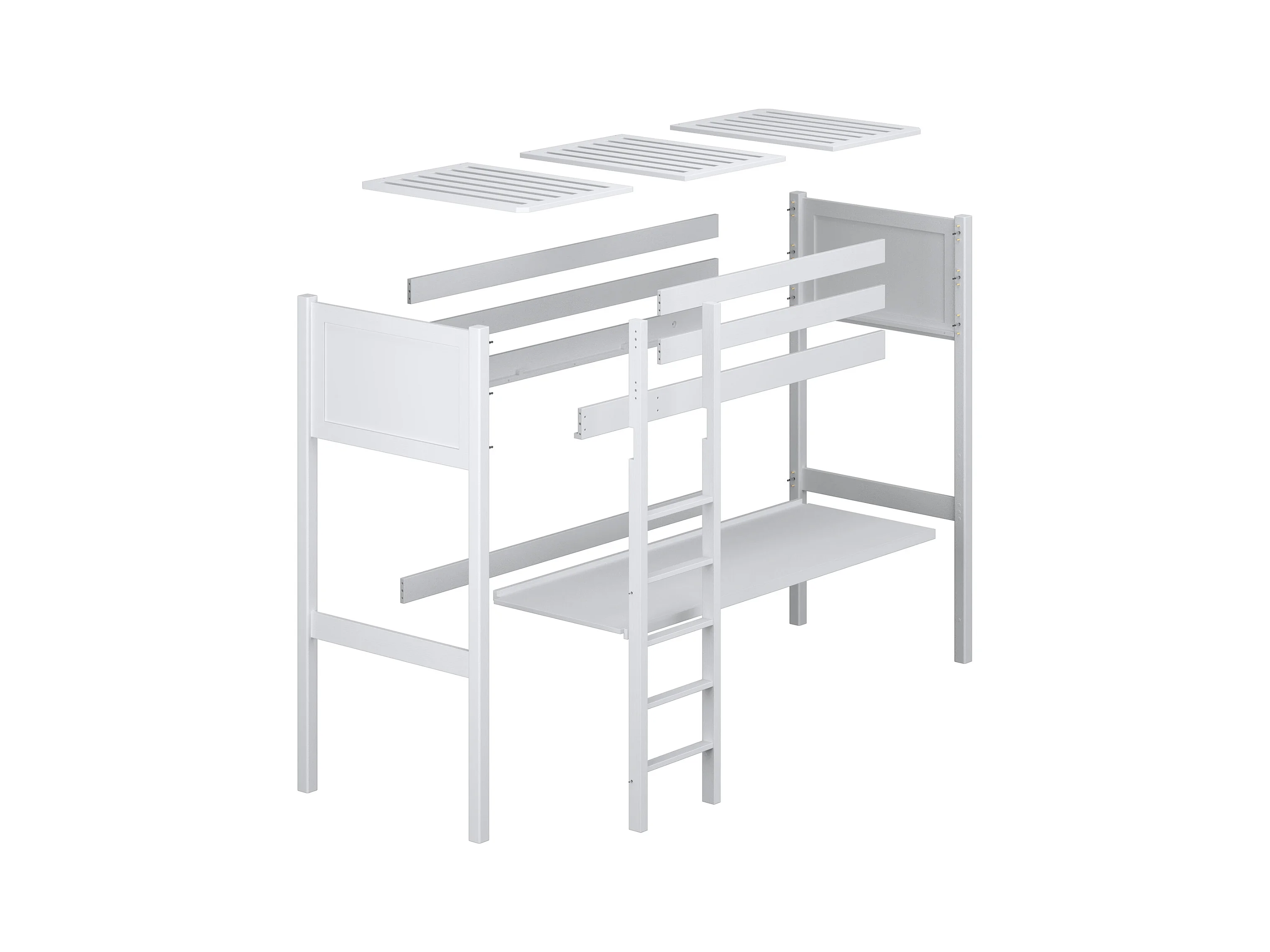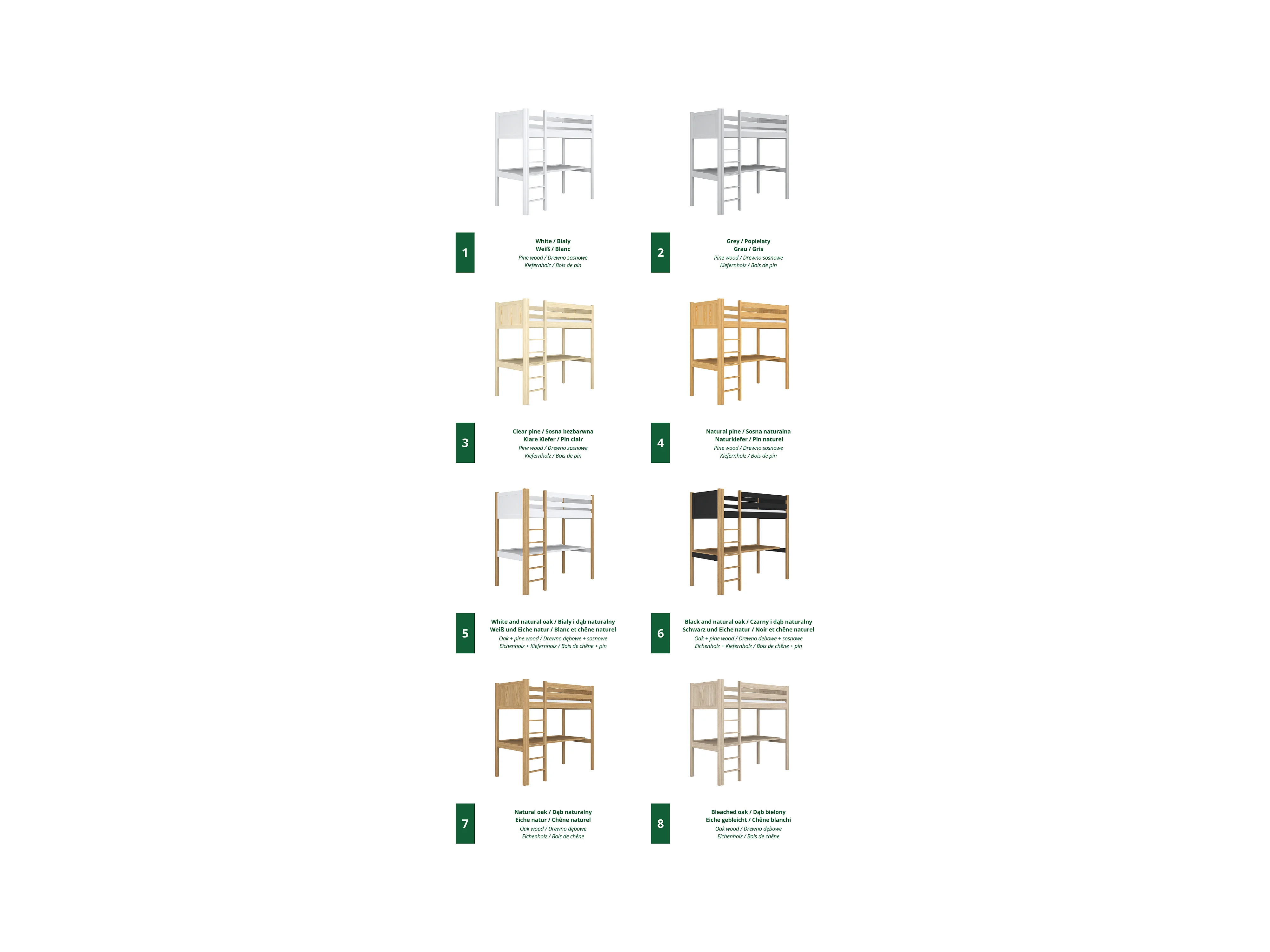 Lit mezzanine en bois - avec bureau N06 Noir / Chêne Naturel 90x190