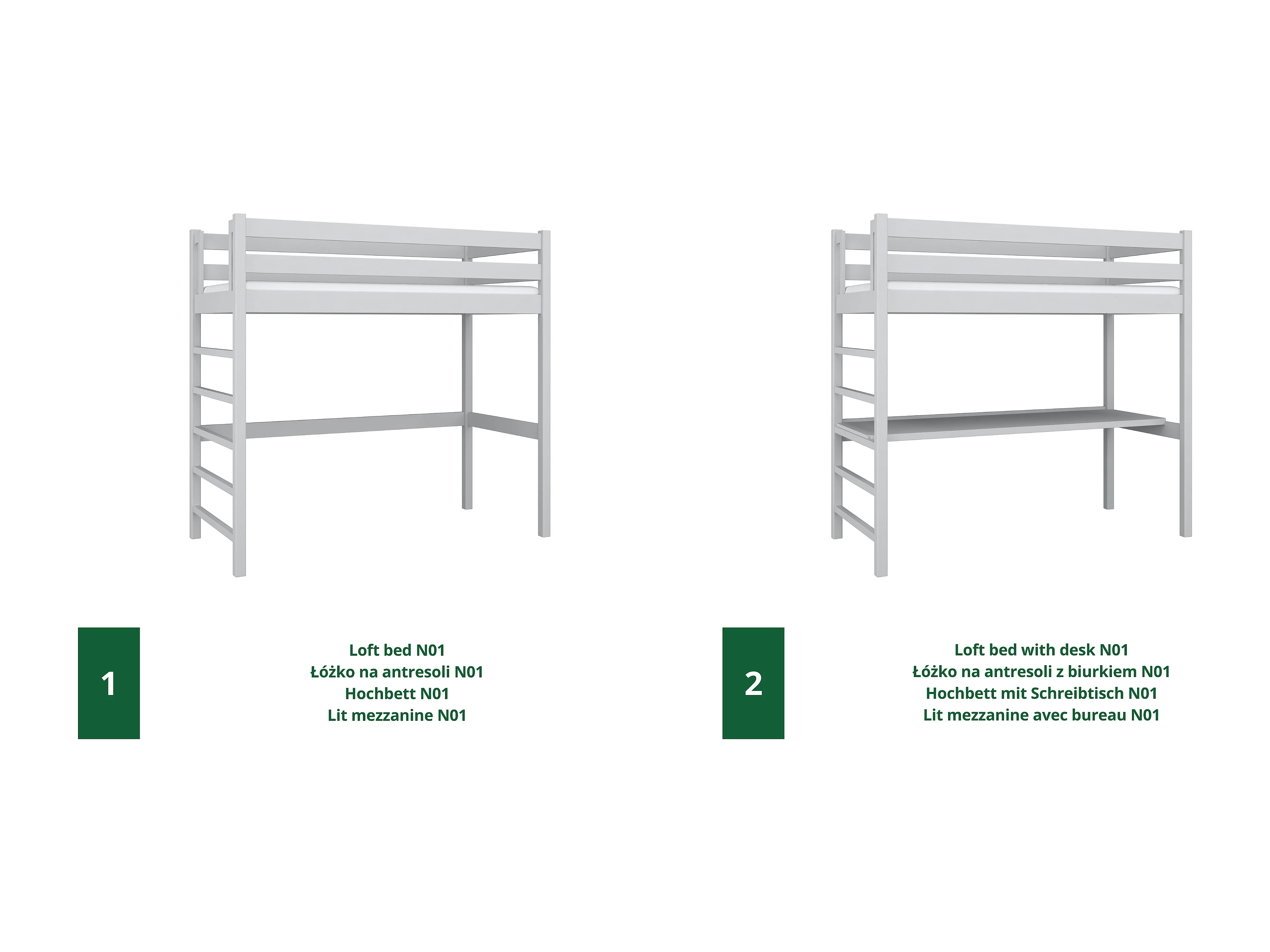 Lit mezzanine en bois N01 Gris 120x180