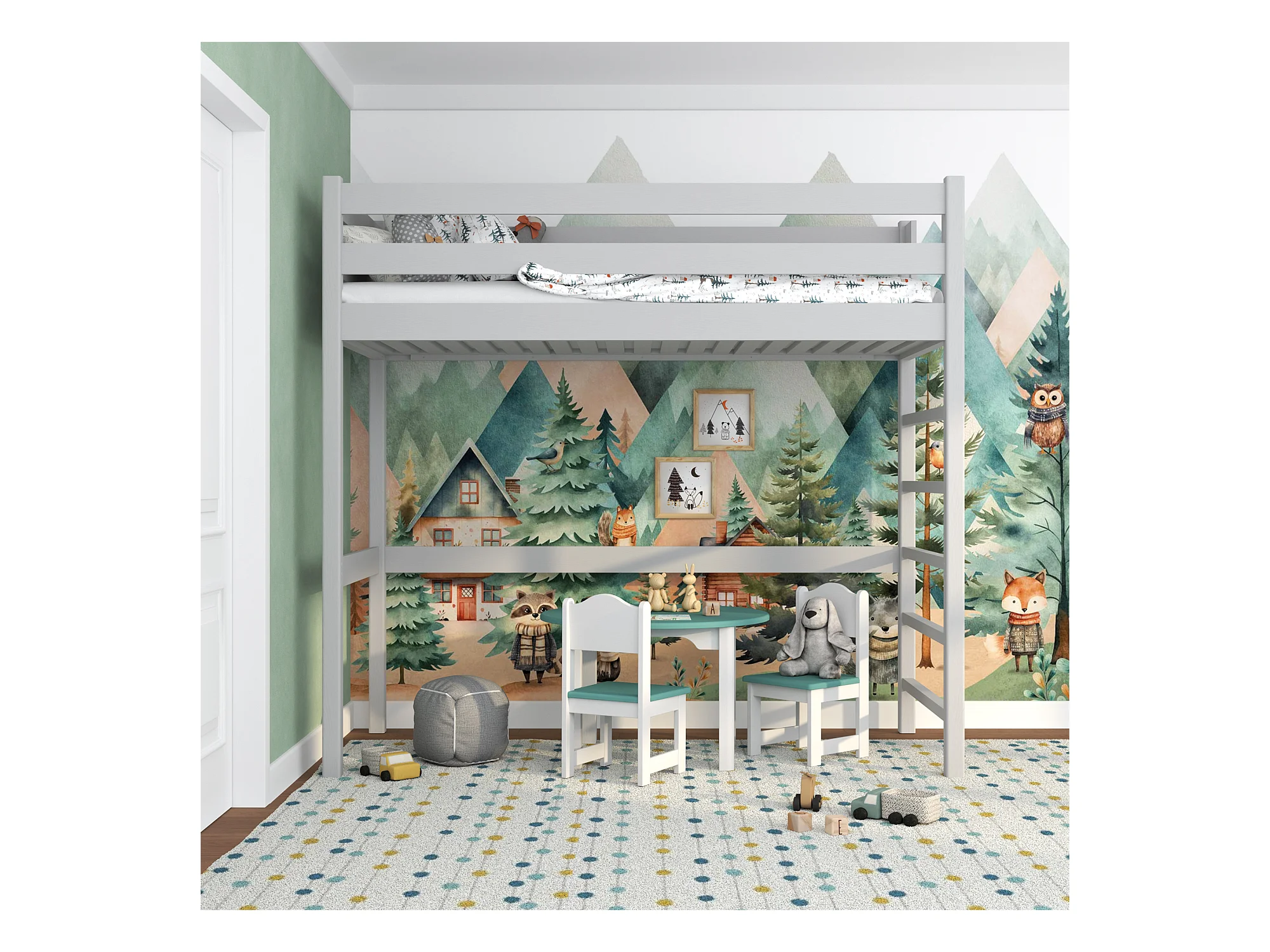 Lit mezzanine en bois N01 Gris 90x200