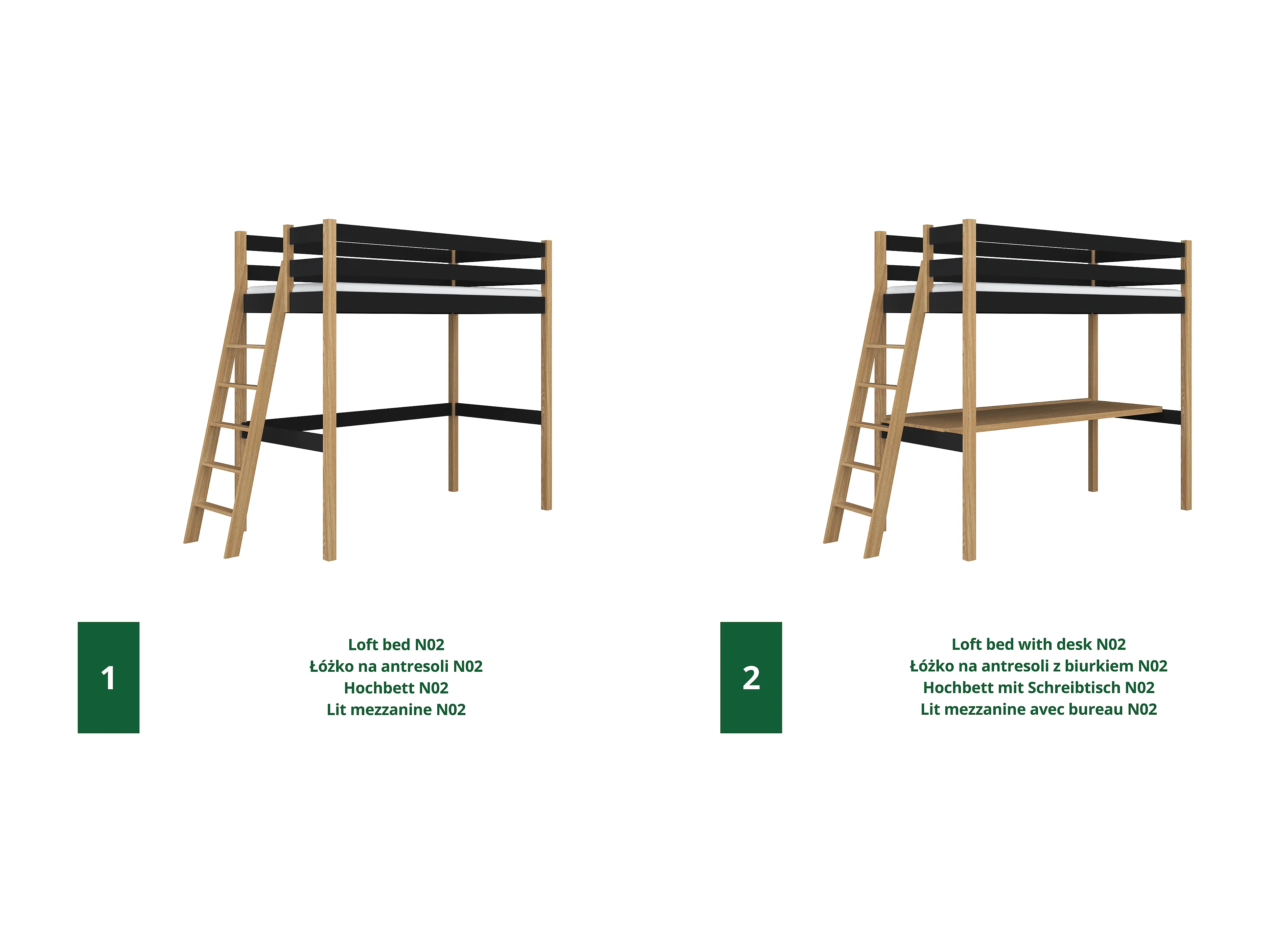 Lit mezzanine en bois N02 Noir / Chêne Naturel 100x180