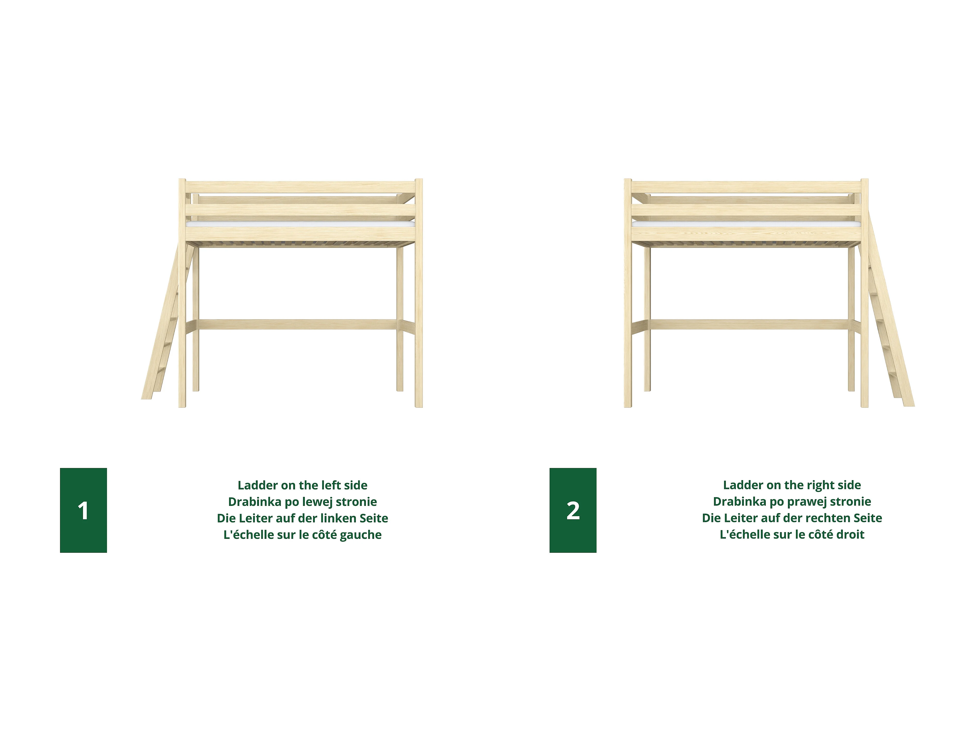 Lit mezzanine en bois N02 Pin Clair 80x180