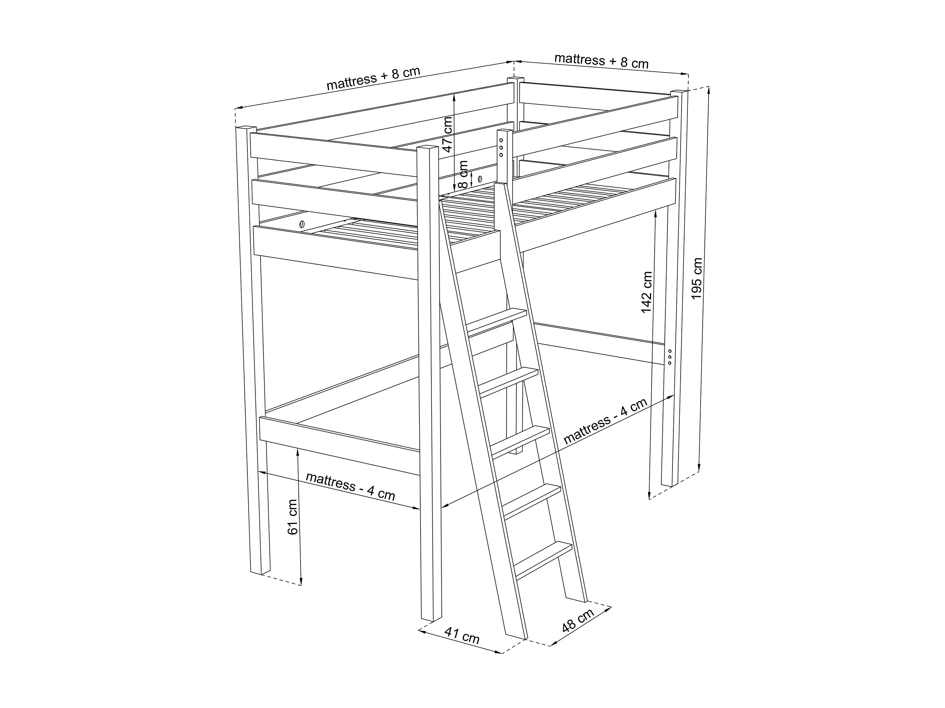 Lit mezzanine en bois N03 Blanc / Chêne Naturel 80x200