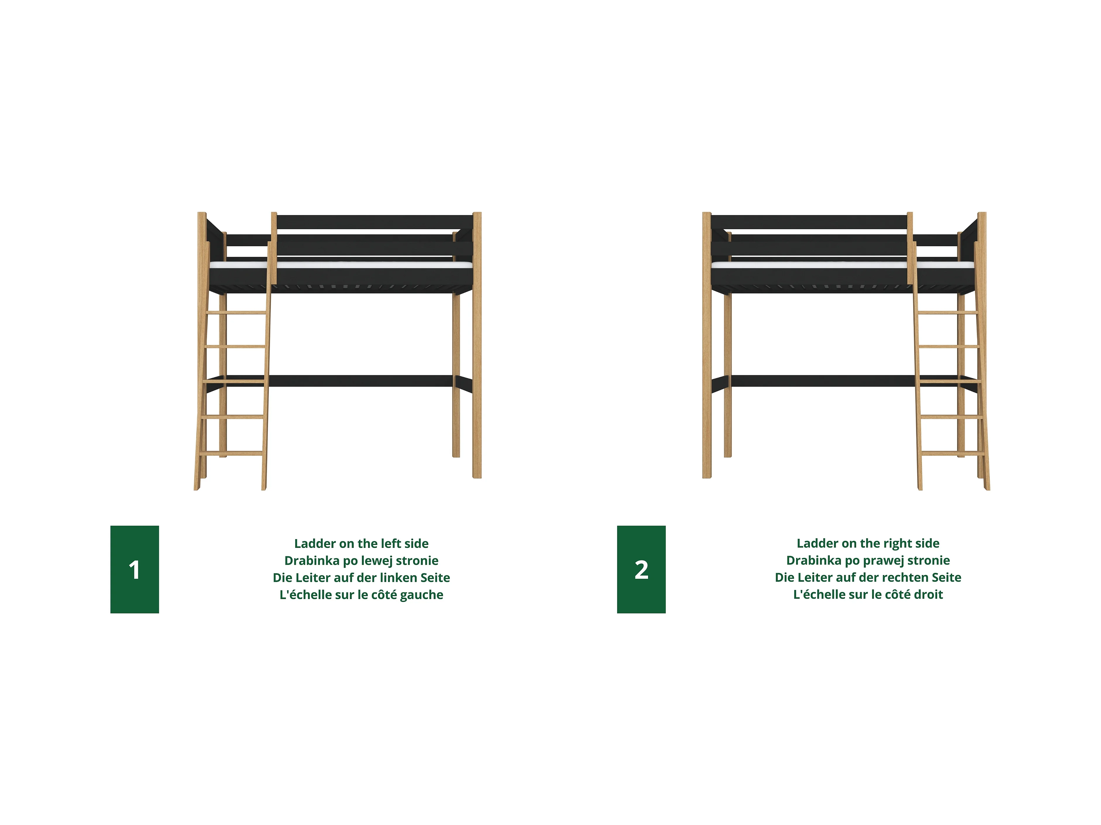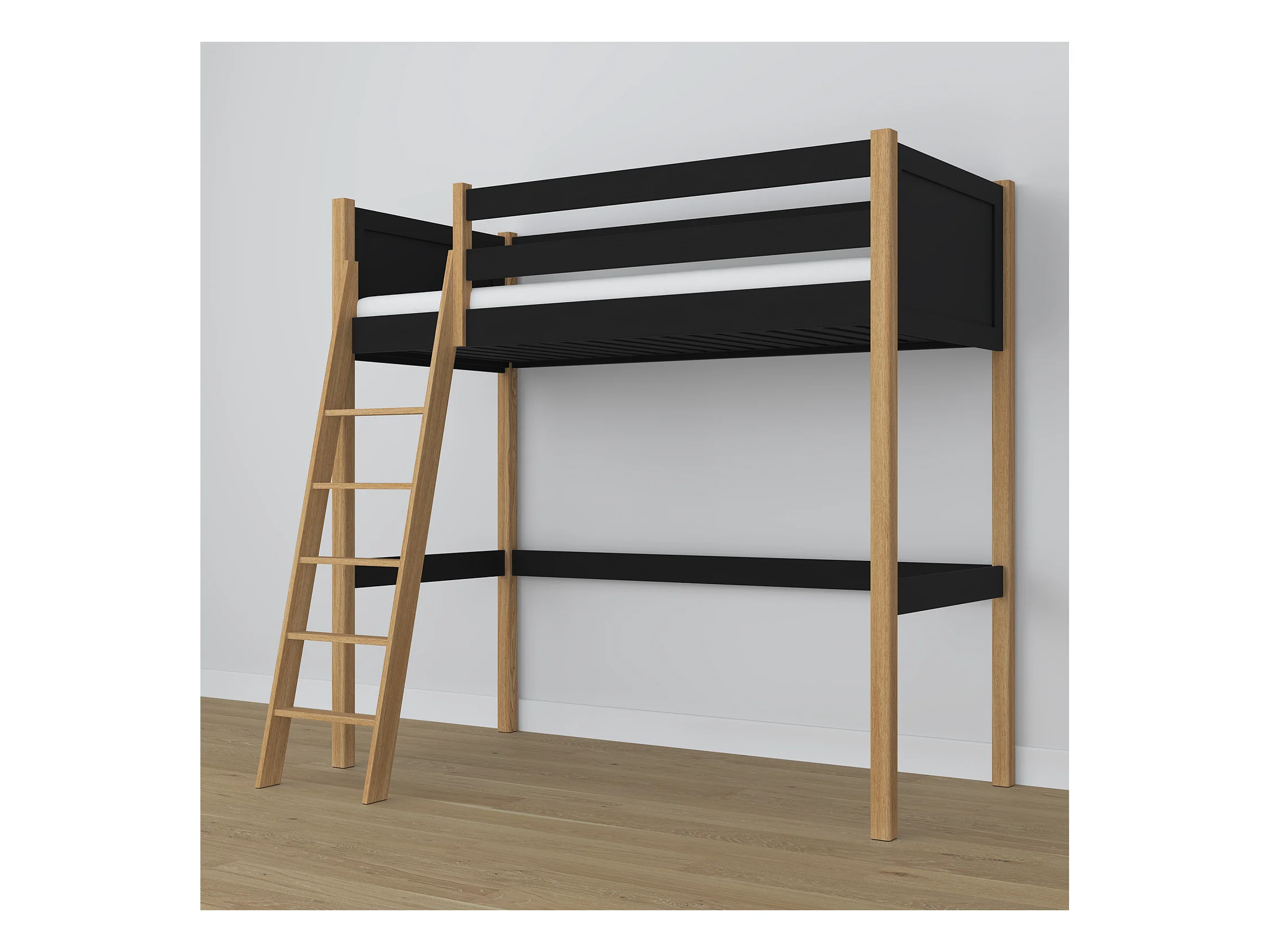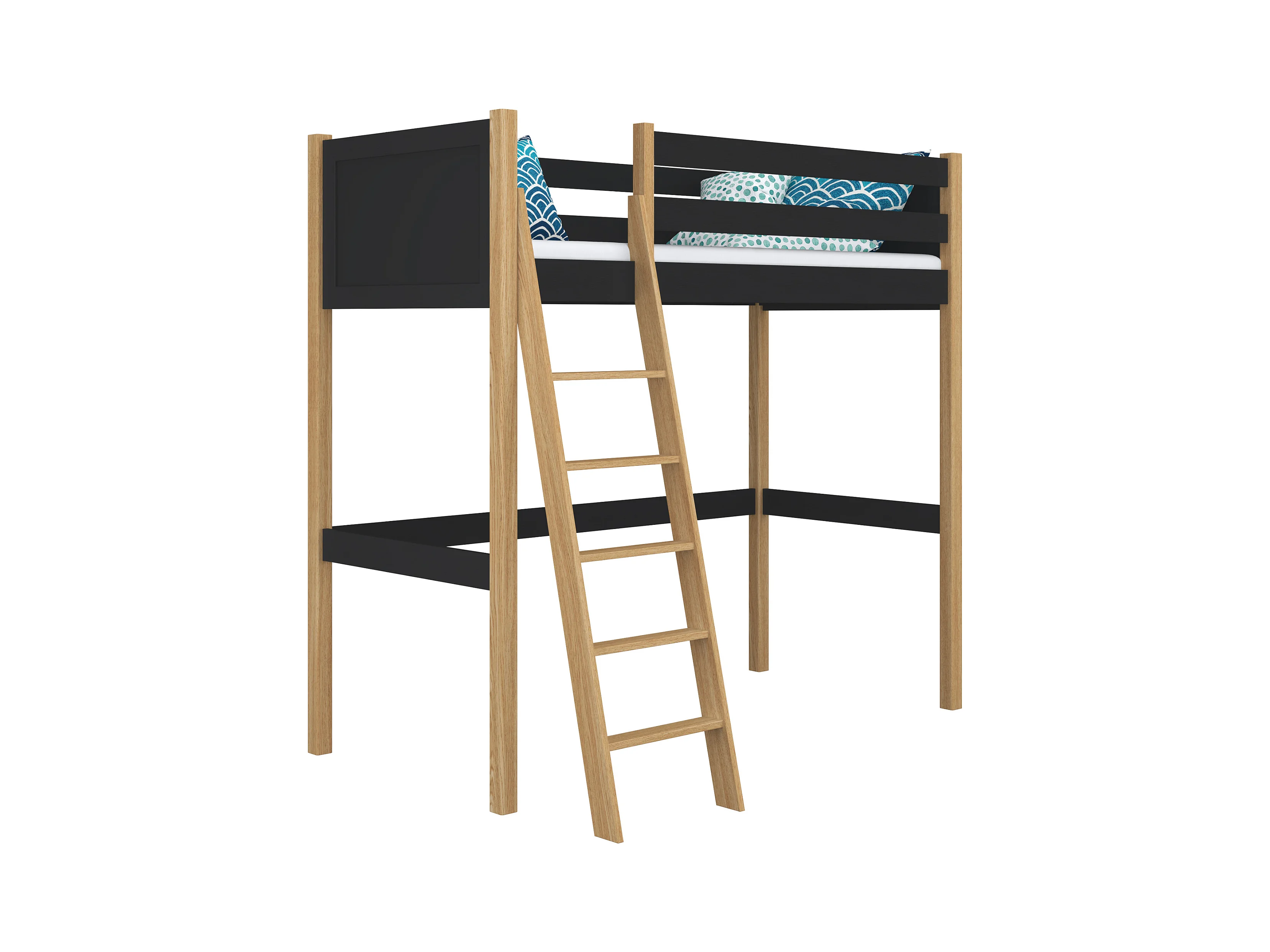 Lit mezzanine en bois N04 Noir / Chêne Naturel 90x200