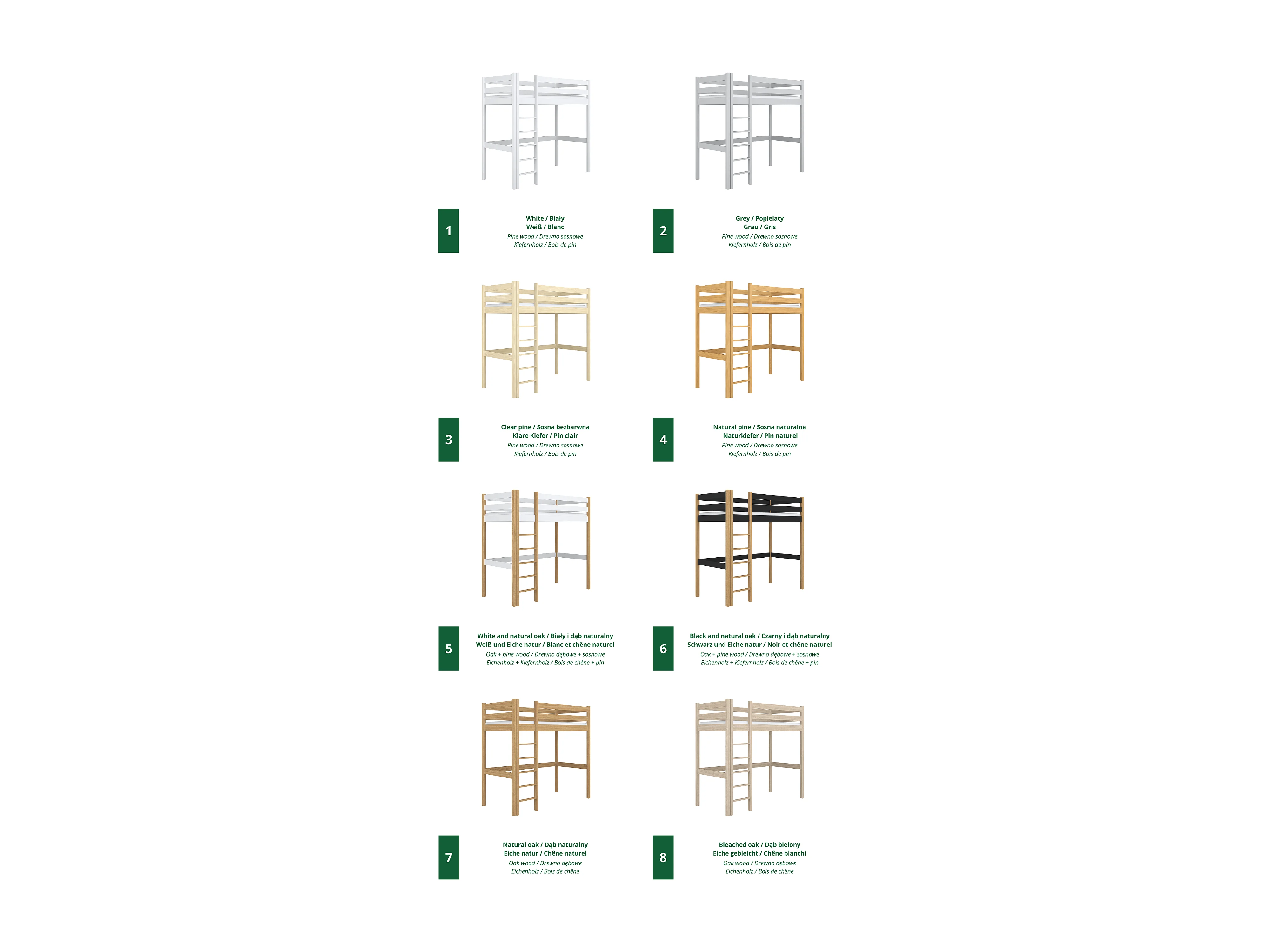Lit mezzanine en bois N05 Blanc 120x180