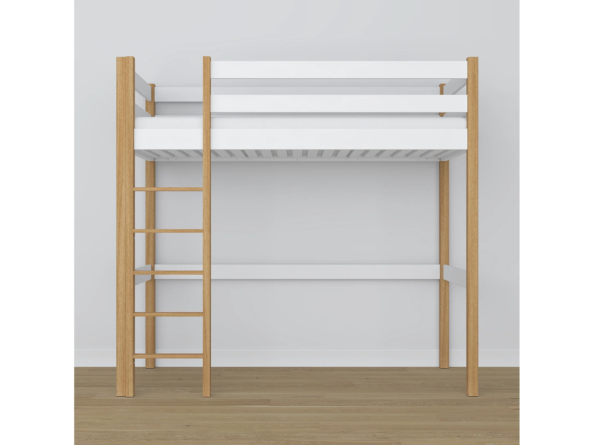 Lit mezzanine en bois N05 Blanc / Chêne Naturel 100x200