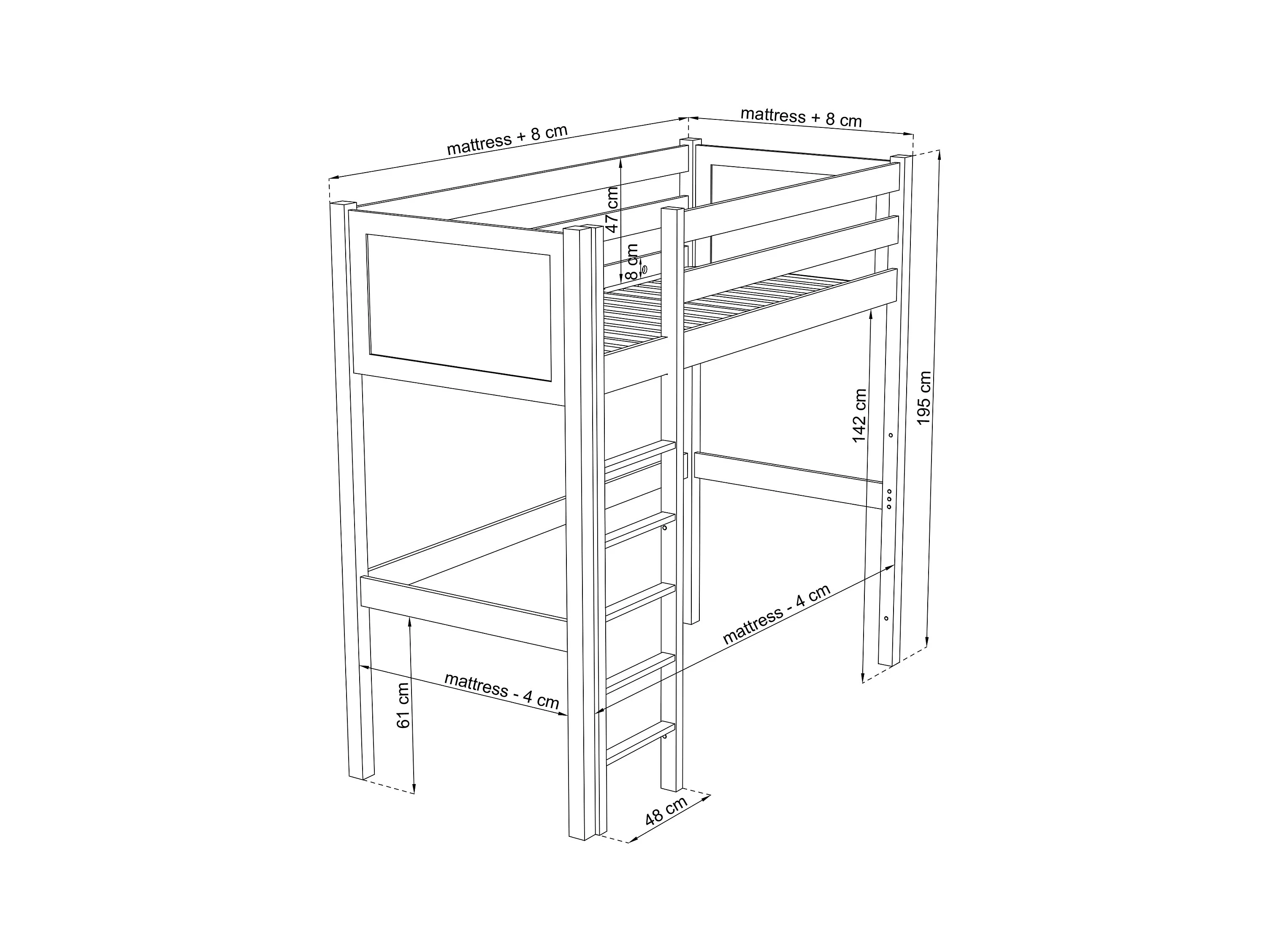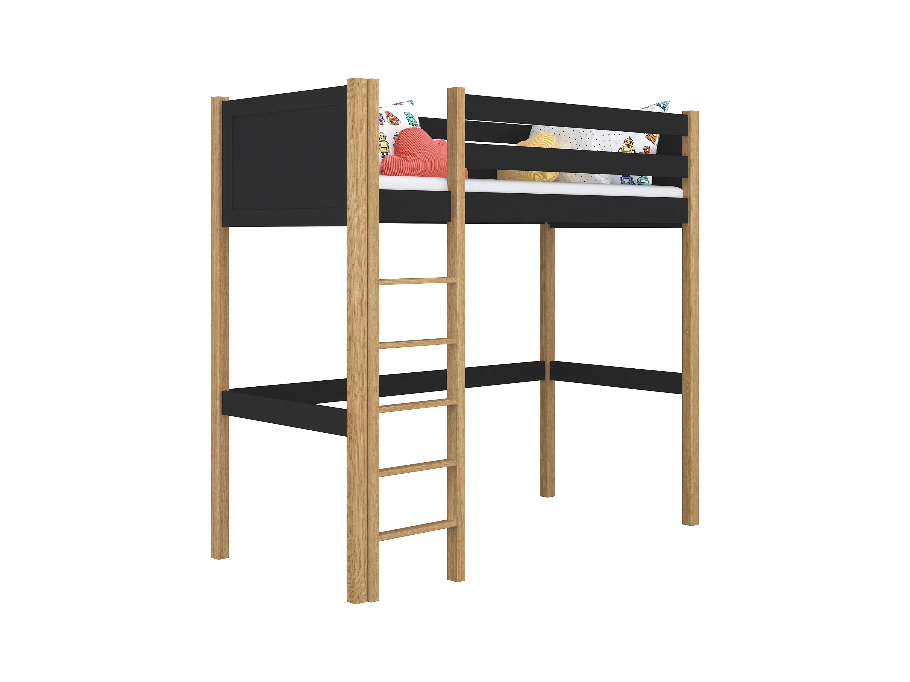 Lit mezzanine en bois N06 Noir / Chêne Naturel 90x200