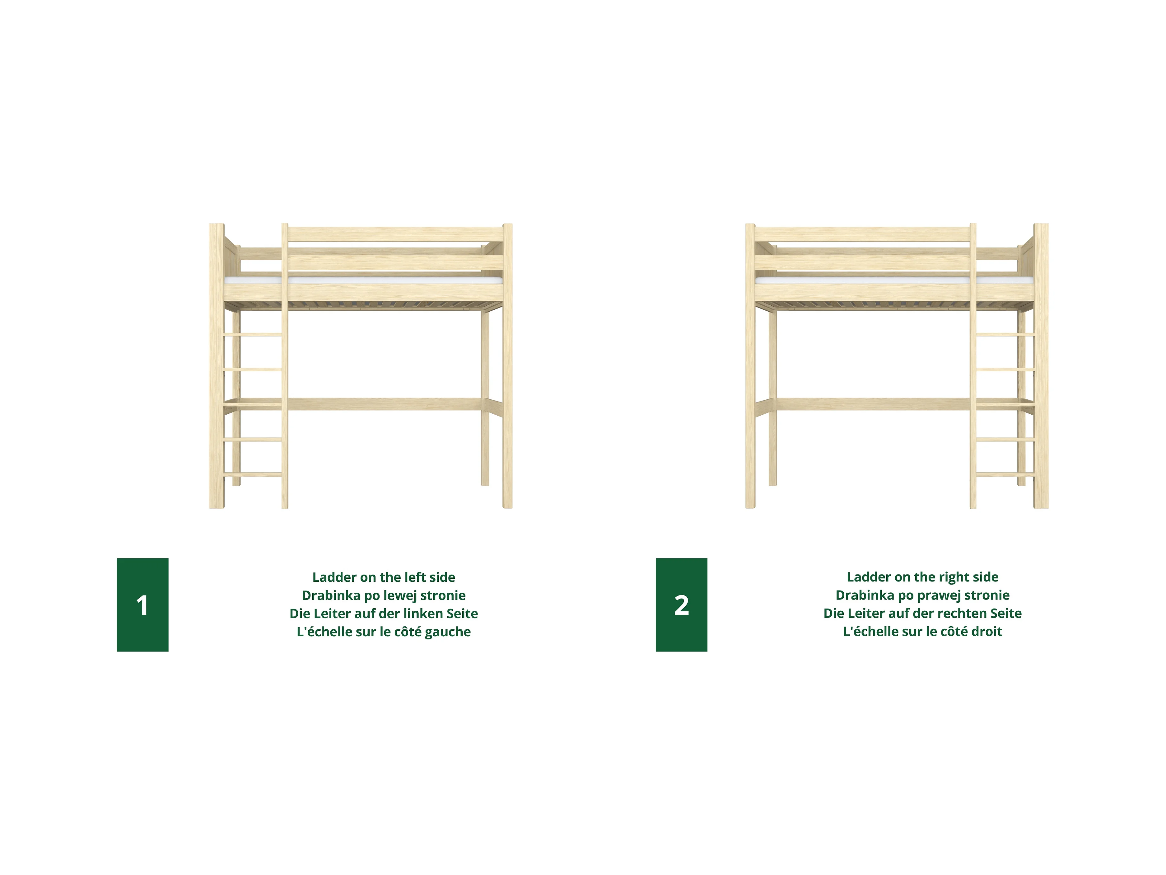 Lit mezzanine en bois N06 Pin Clair 90x200