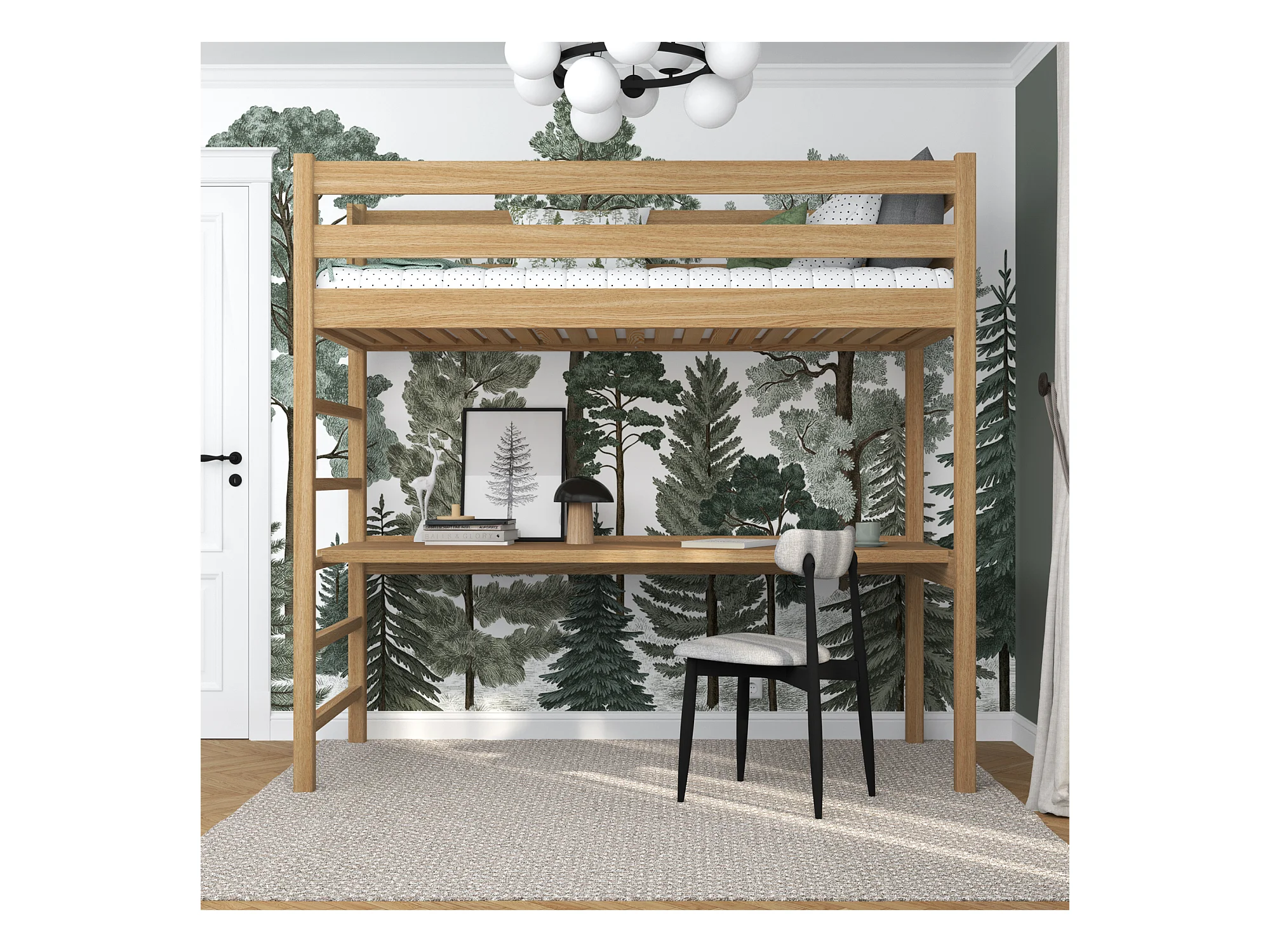 Lit mezzanine en chêne - avec bureau N01 Chêne Naturel 100x180