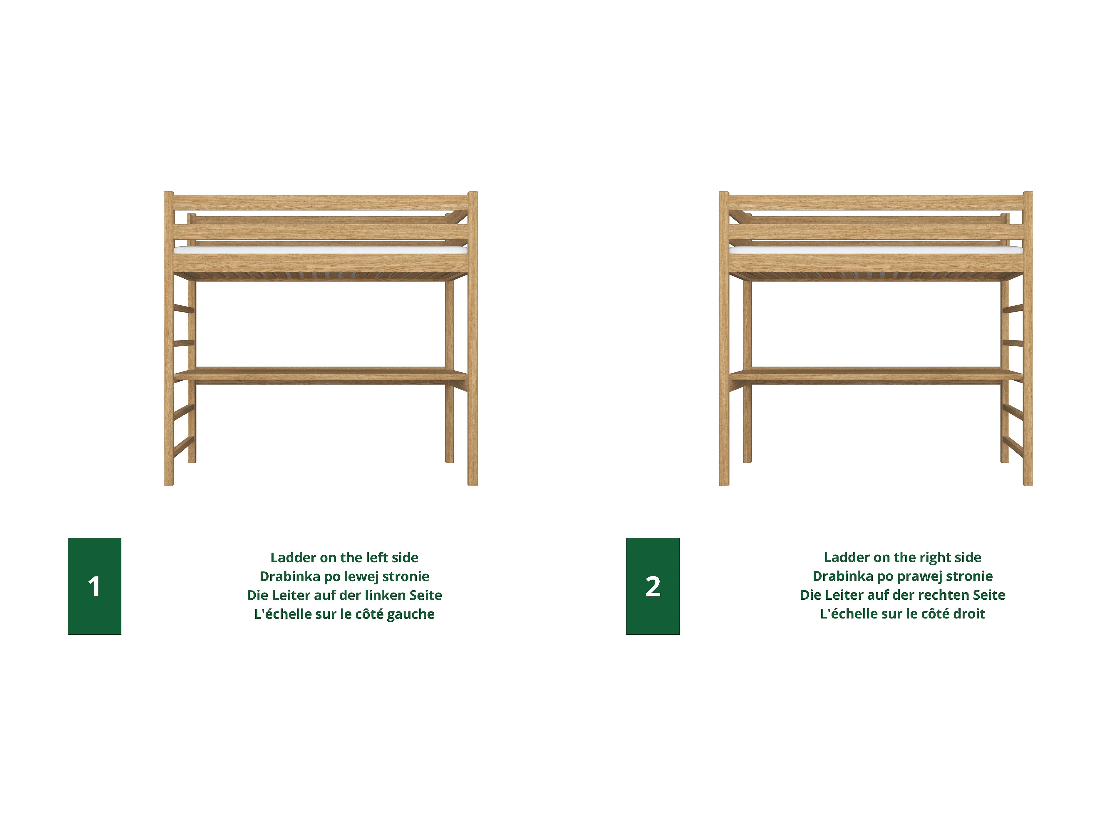 Lit mezzanine en chêne - avec bureau N01 Chêne Naturel 100x190