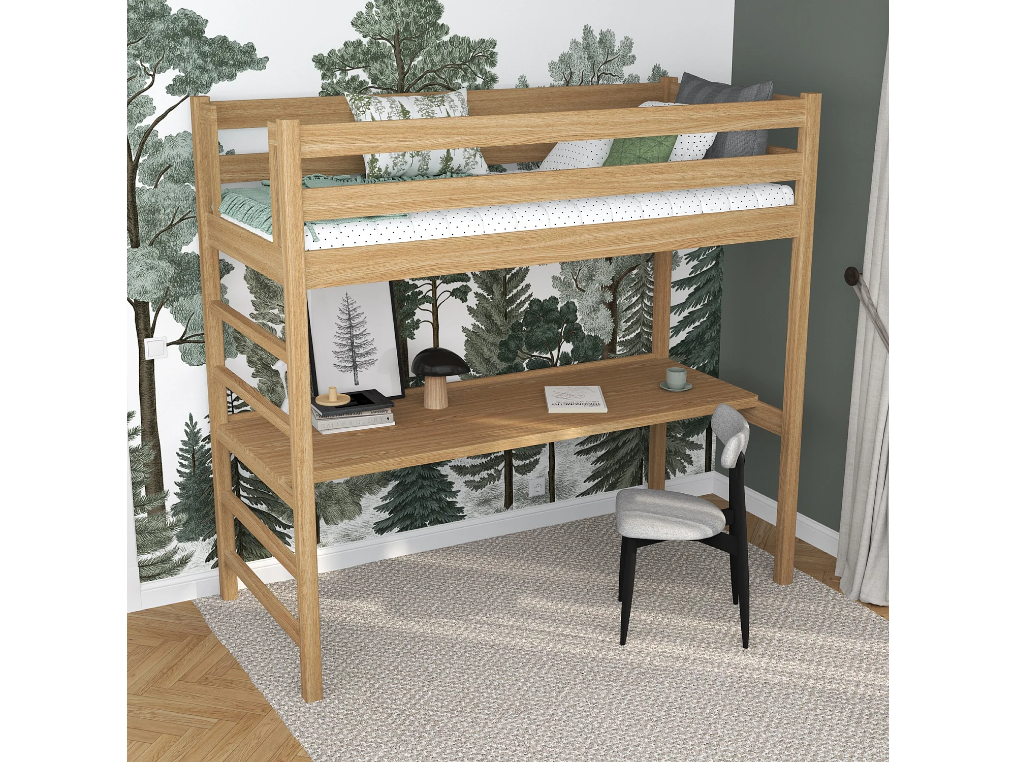 Lit mezzanine en chêne - avec bureau N01 Chêne Naturel 100x200