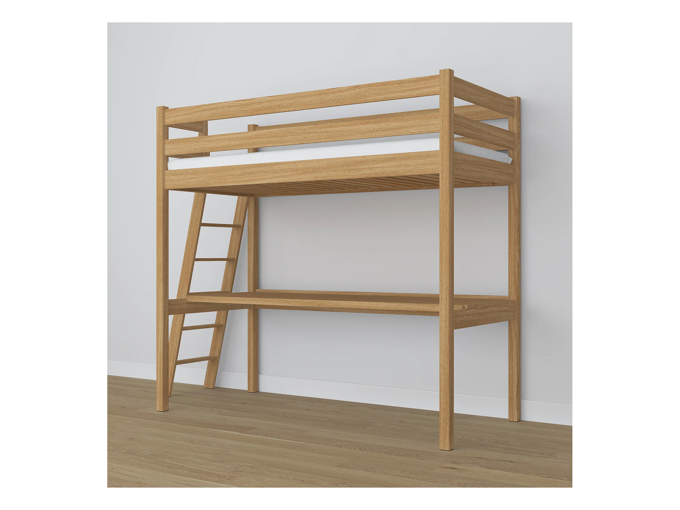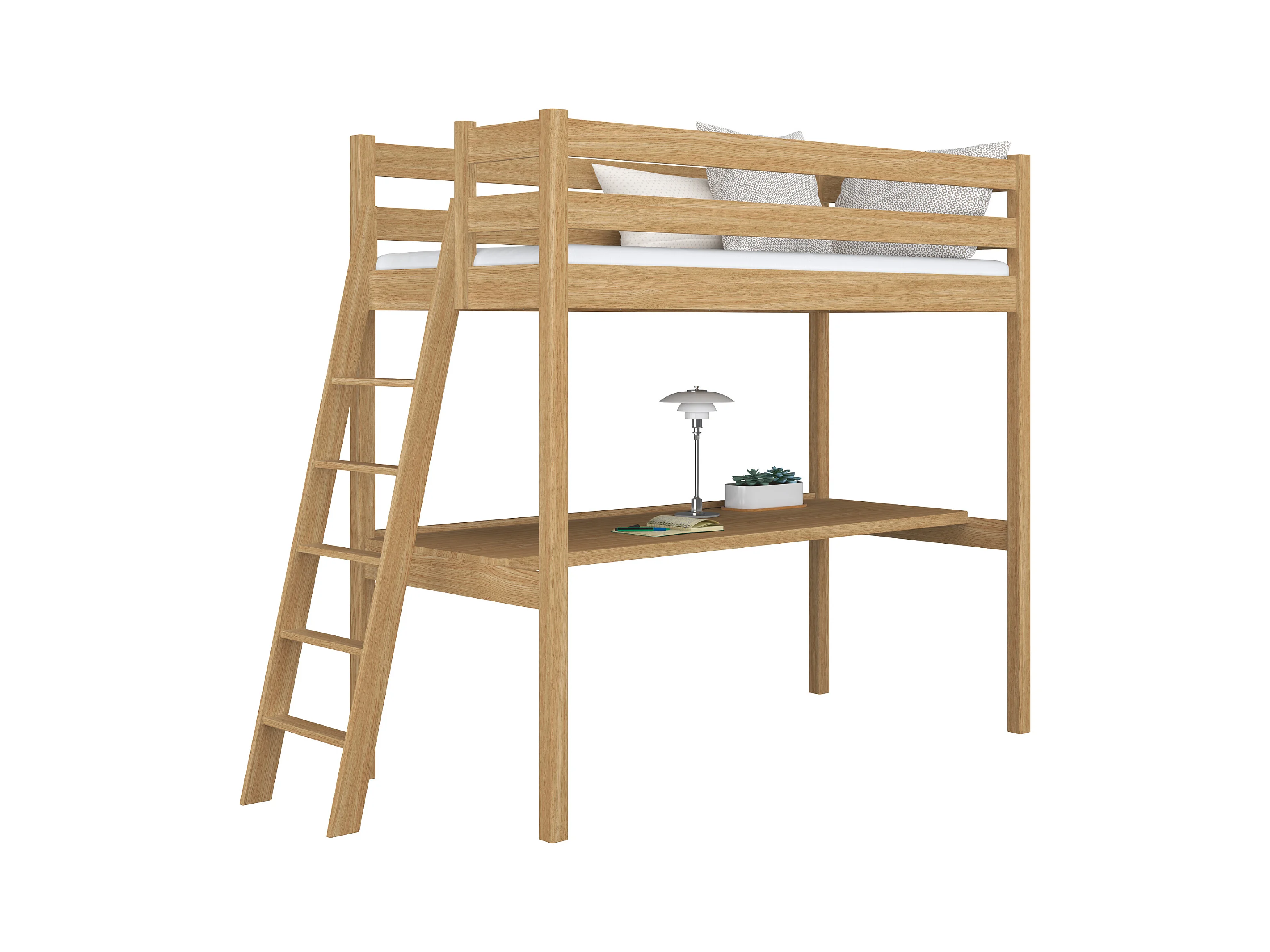 Lit mezzanine en chêne - avec bureau N02 Chêne Naturel 90x180