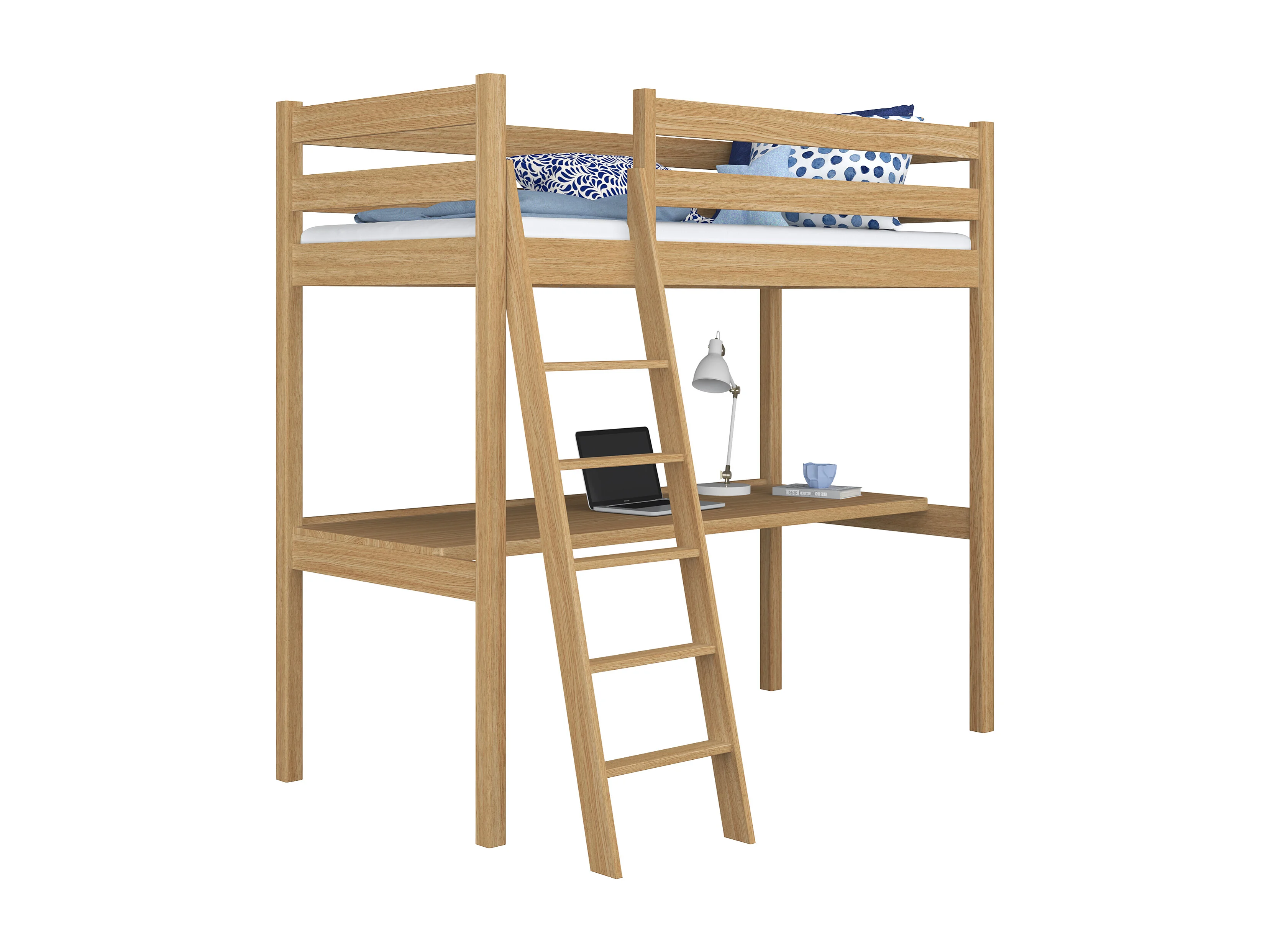 Lit mezzanine en chêne - avec bureau N03 Chêne Naturel 120x190