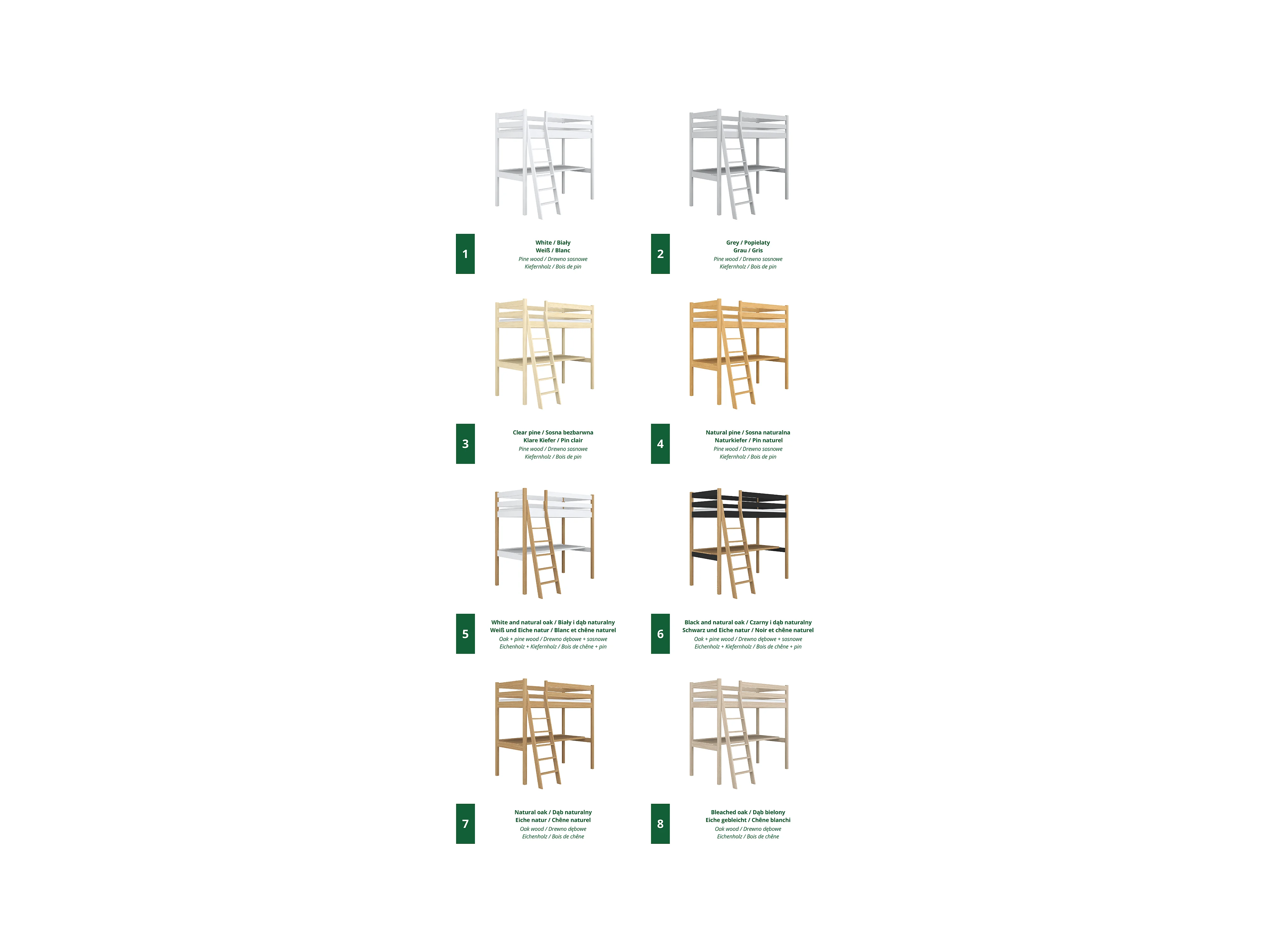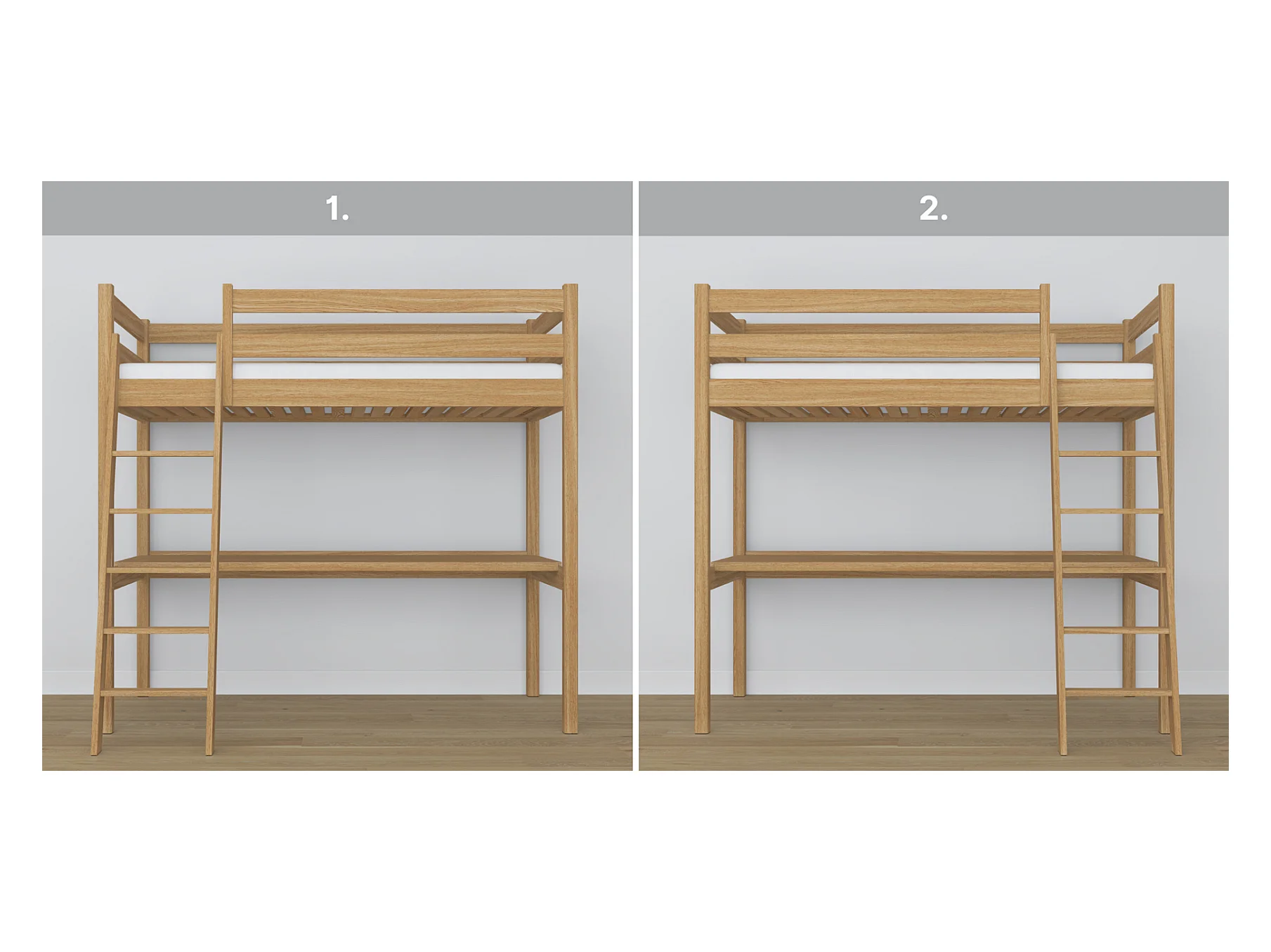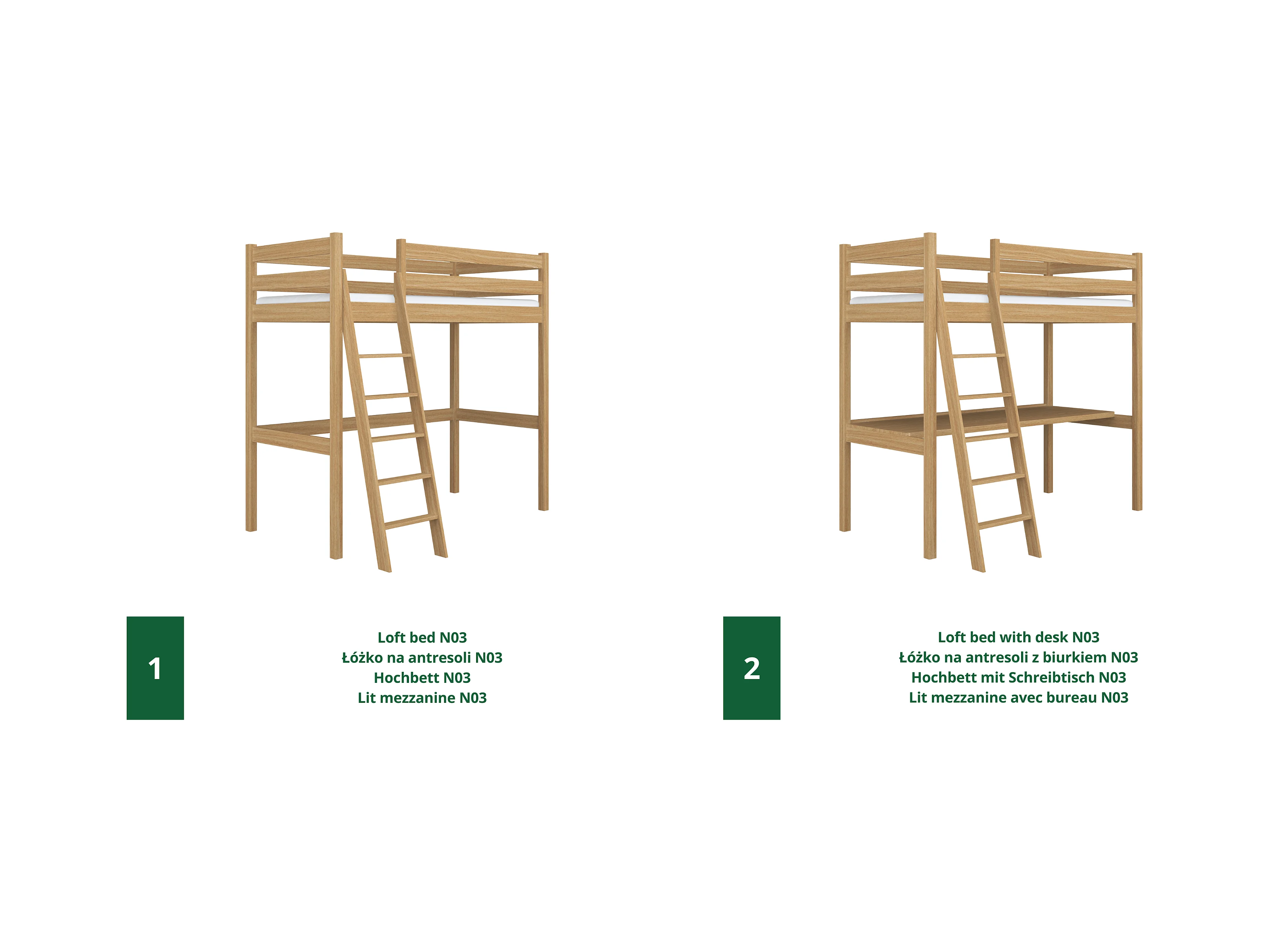 Lit mezzanine en chêne - avec bureau N03 Chêne Naturel 90x180
