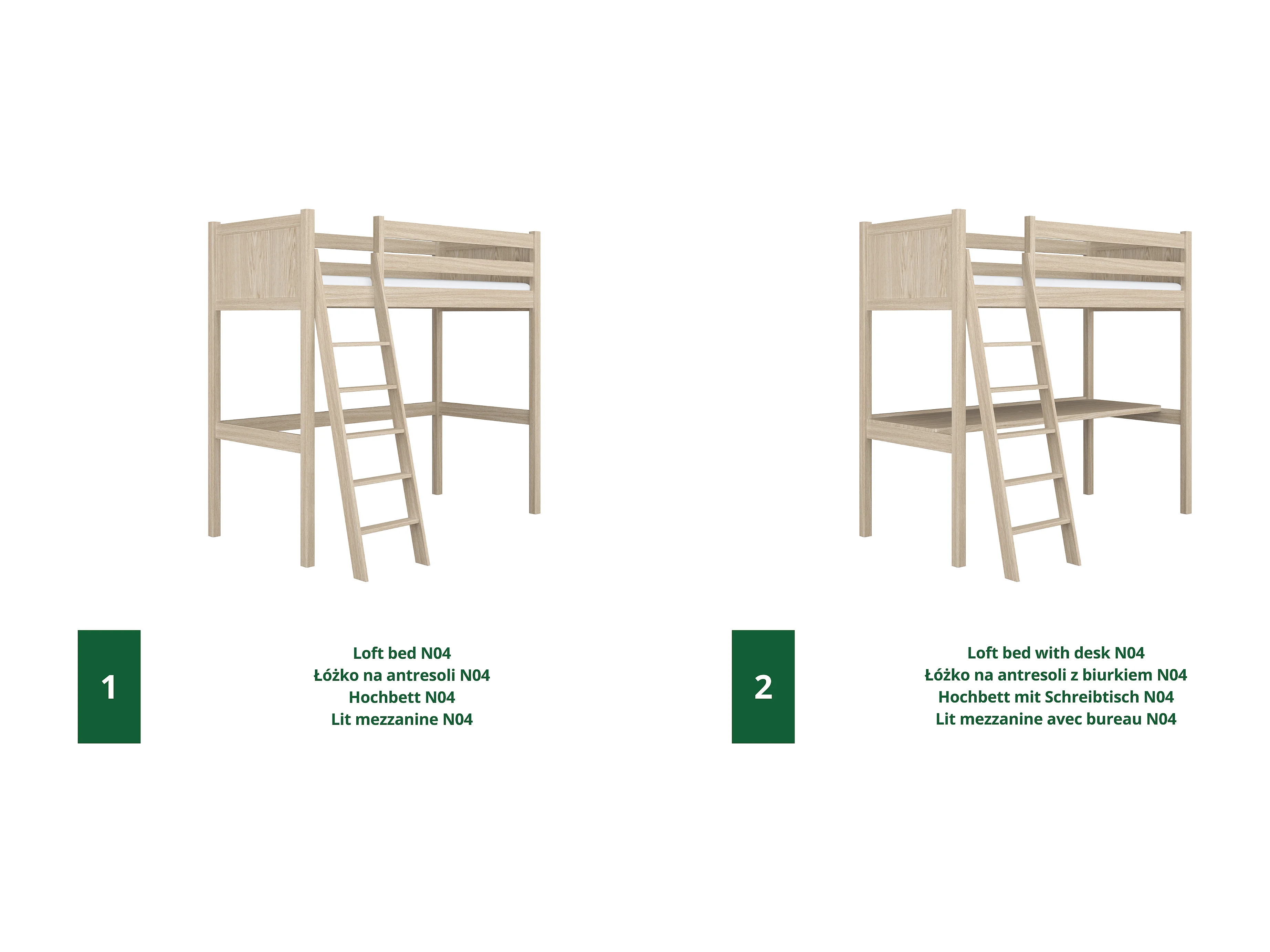 Lit mezzanine en chêne - avec bureau N04 Chêne Blanchi 120x180