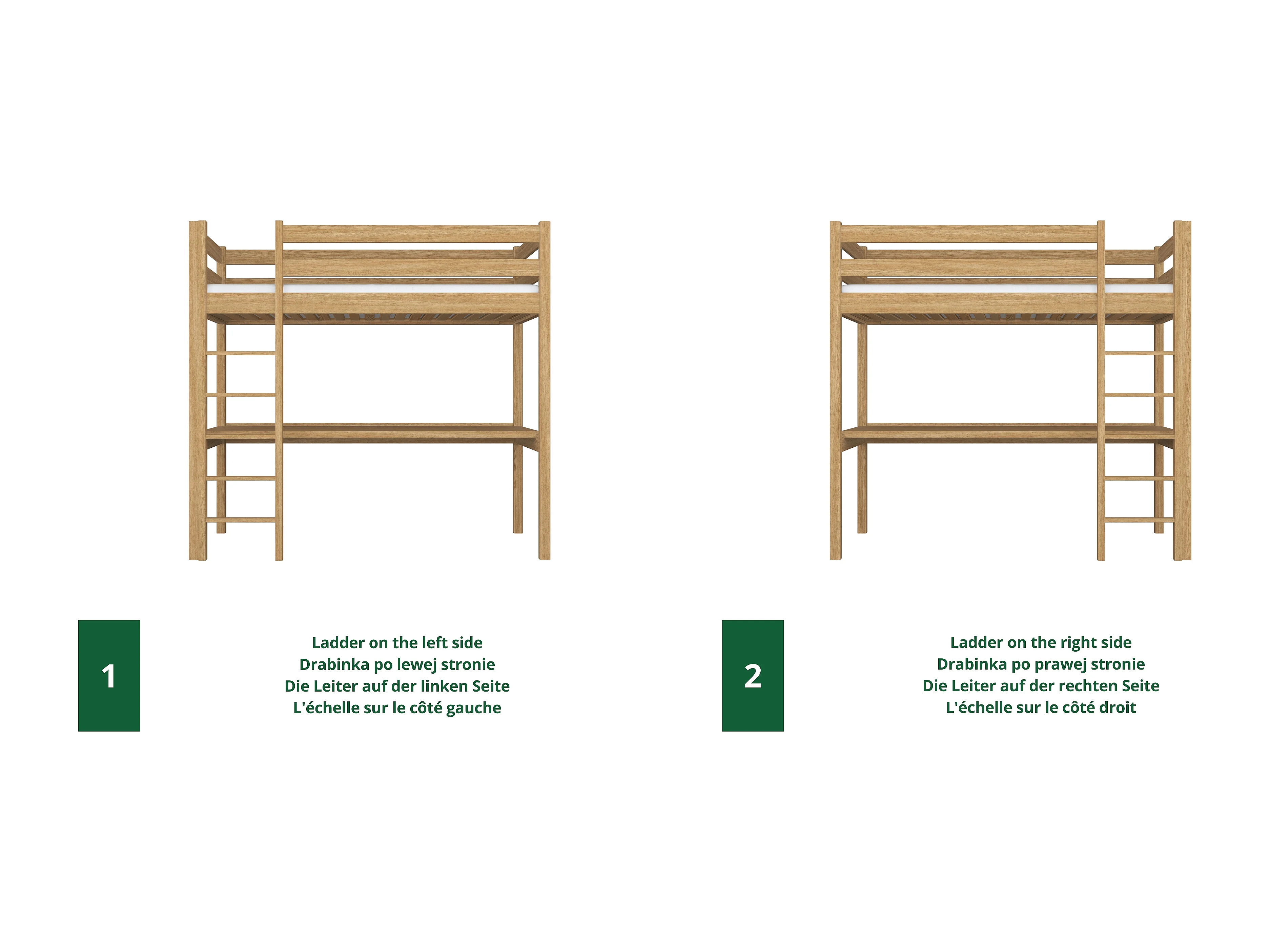 Lit mezzanine en chêne - avec bureau N05 Chêne Naturel 90x180